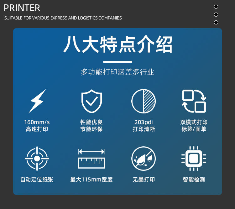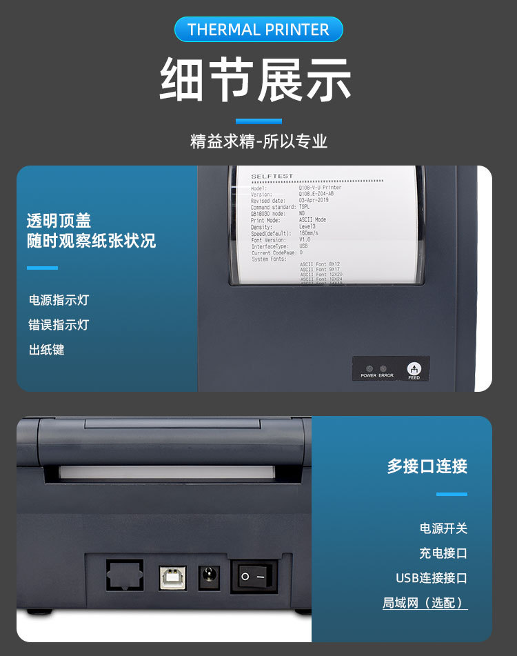 - 支持蓝牙功能,支持Android,iOS和Windows,方便您无线打印设备中的数据