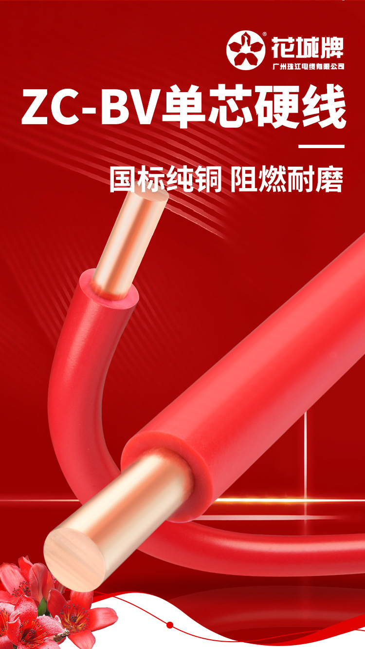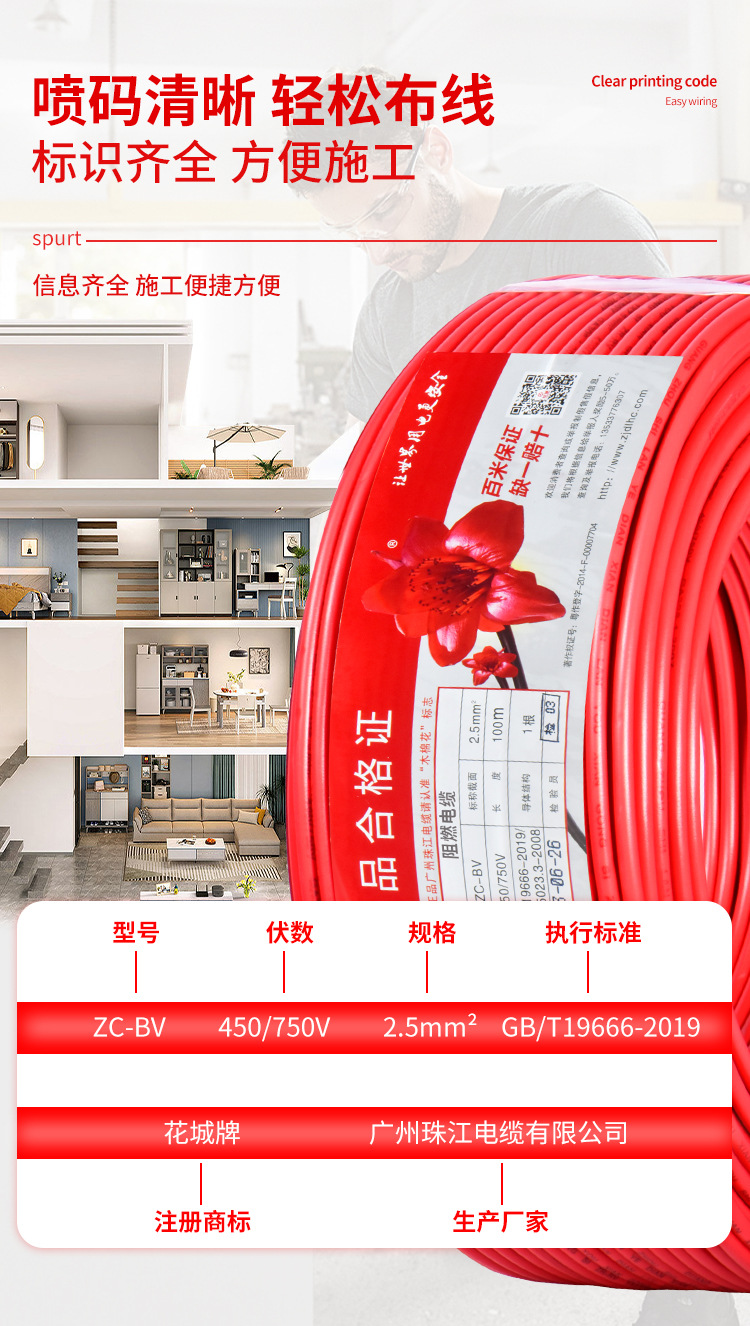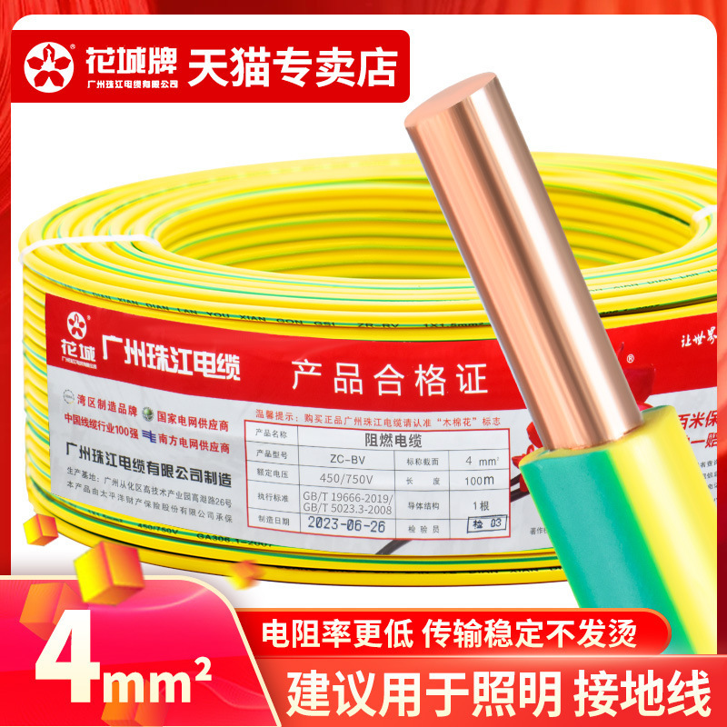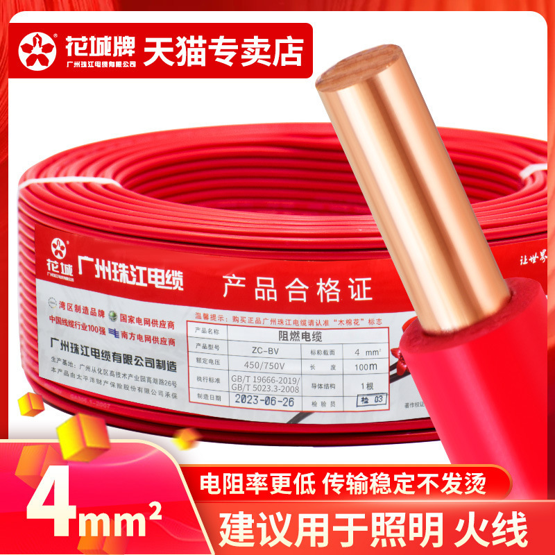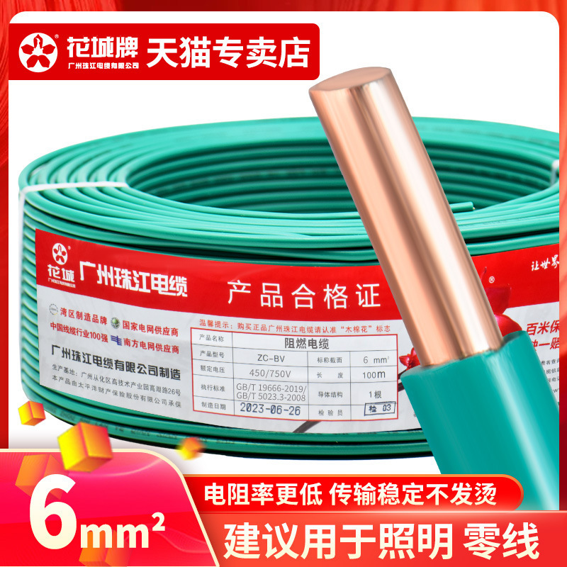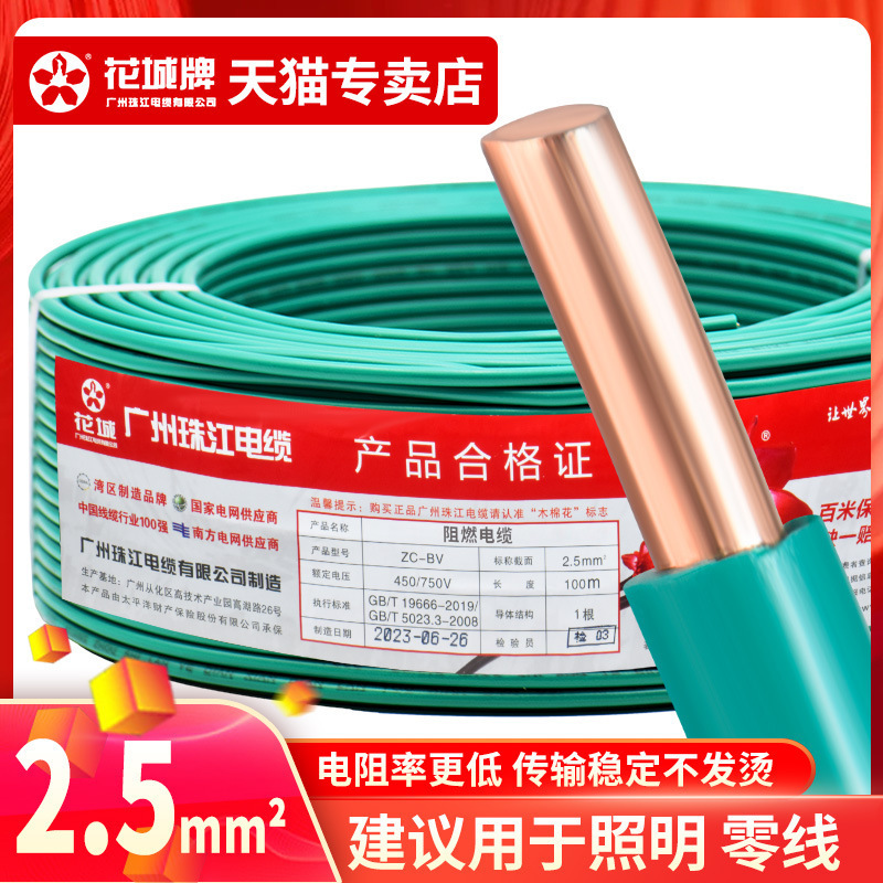 광저우 Zhujiang 전기 와이어 가정용 GB BV1.5 2.5 4 6 사각형 단일 코어 단일 가닥 홈 장식 순수 구리 코어 하드 와이어