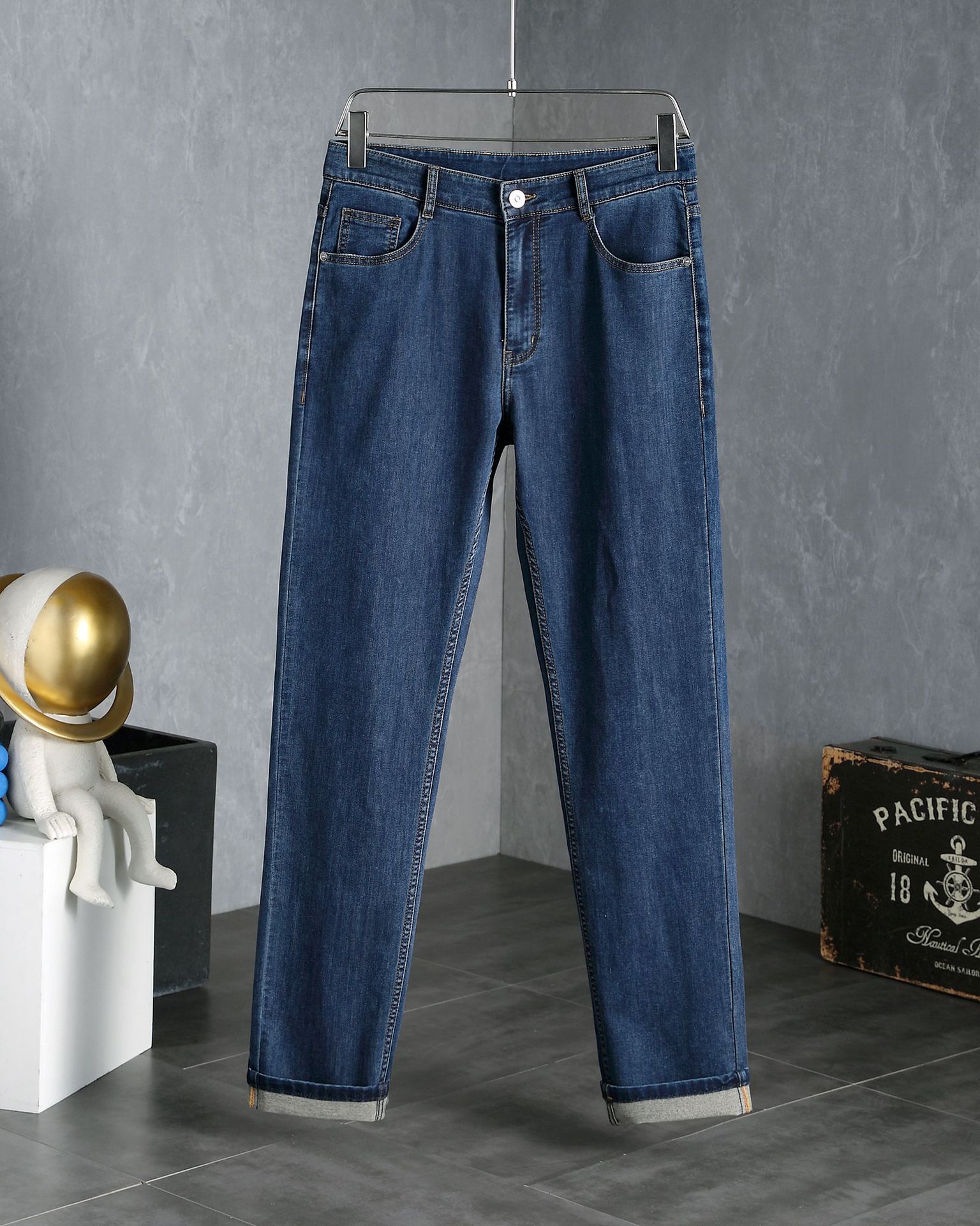 유럽 스타일 봄 여름 신상 남성 청바지, 스트레이트 핏, 신축성, 고급스럽고 다용도, 고탄력, 편안한 남성용 긴바지스토어 가기