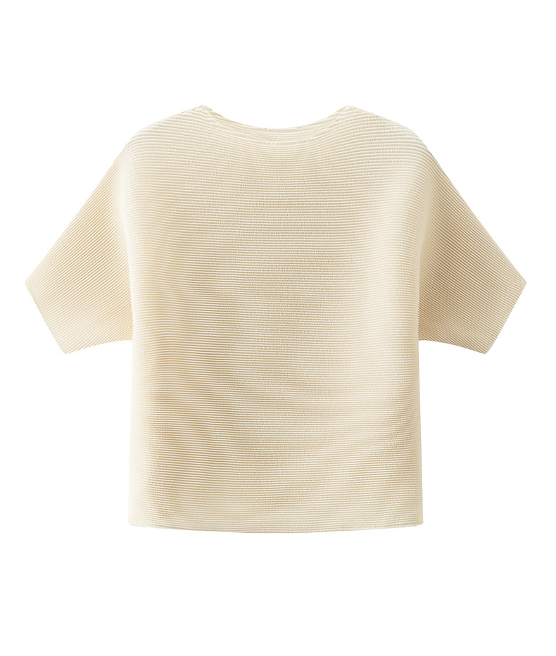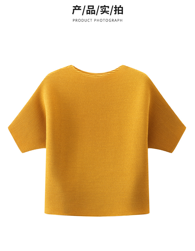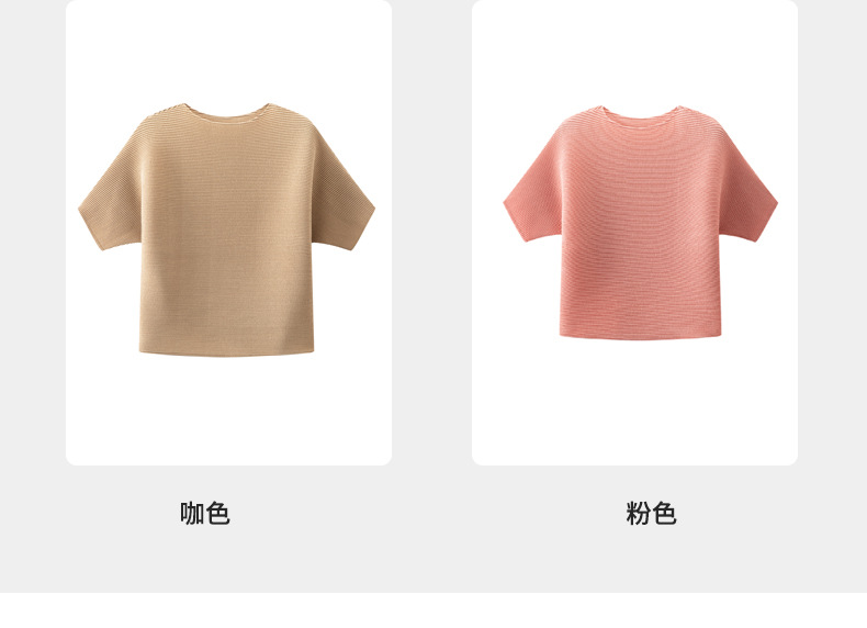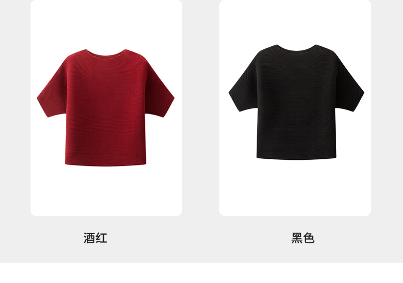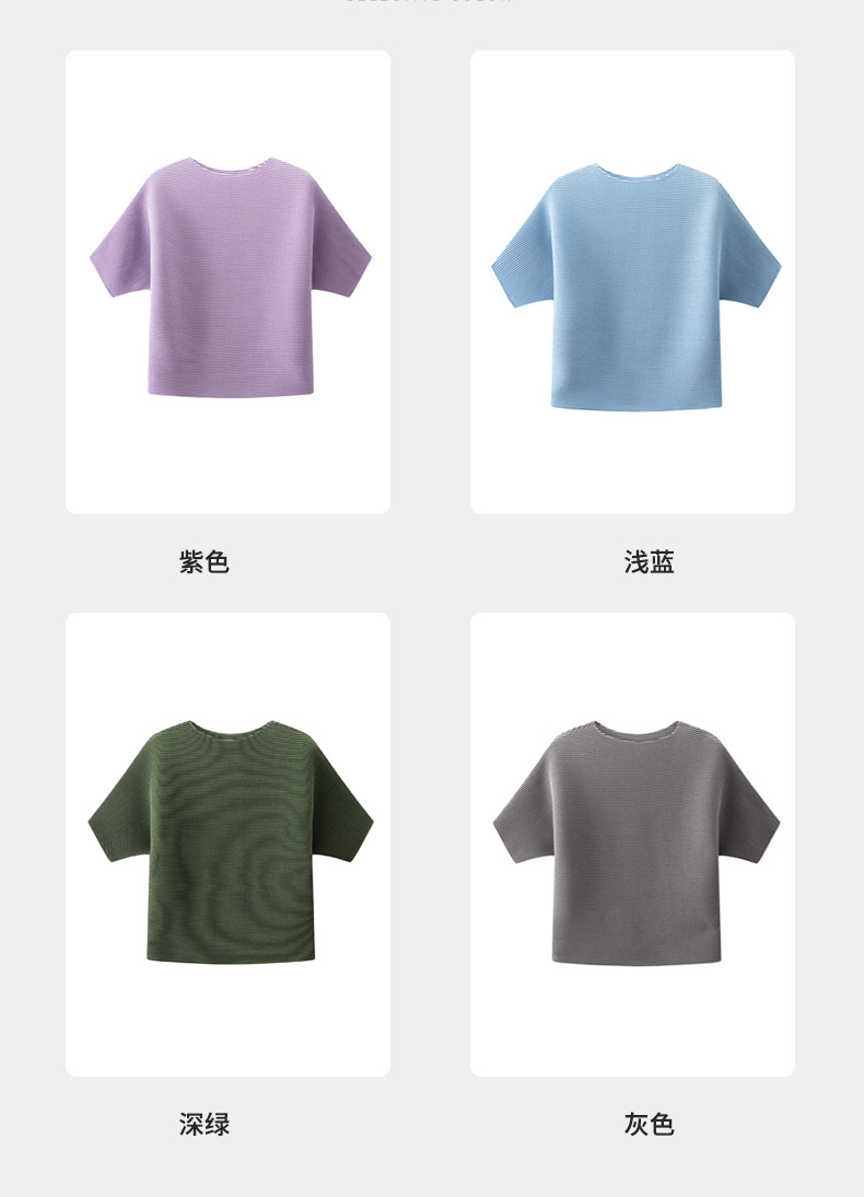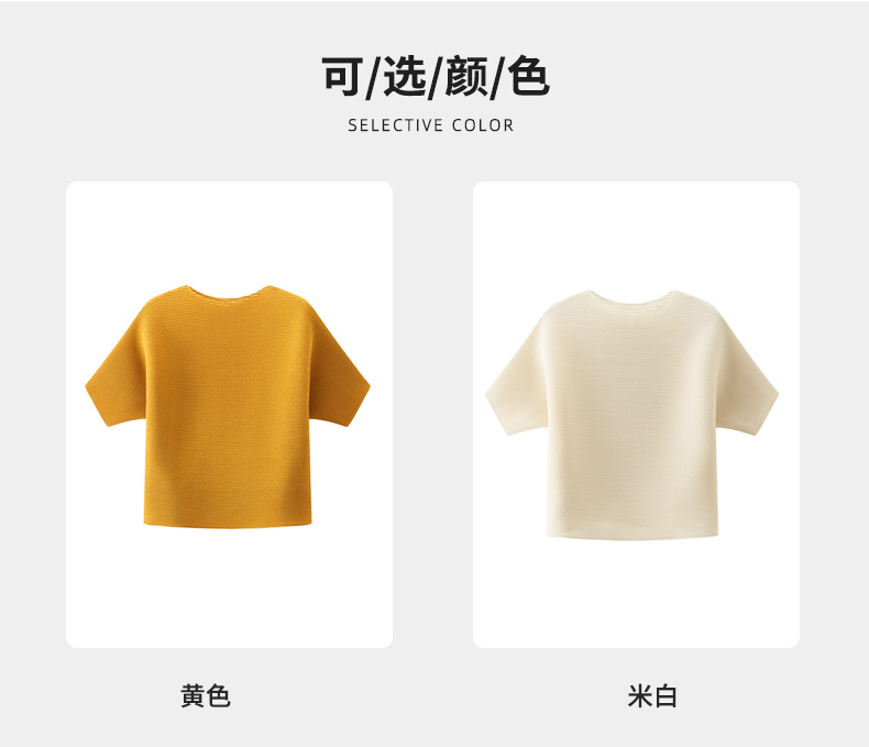 하이 엔드 미야케 크루 넥 솔리드 컬러 루즈 최고 패션 통근 올 매치 반팔 티셔츠 여성용 여름 뉴스토어 가기