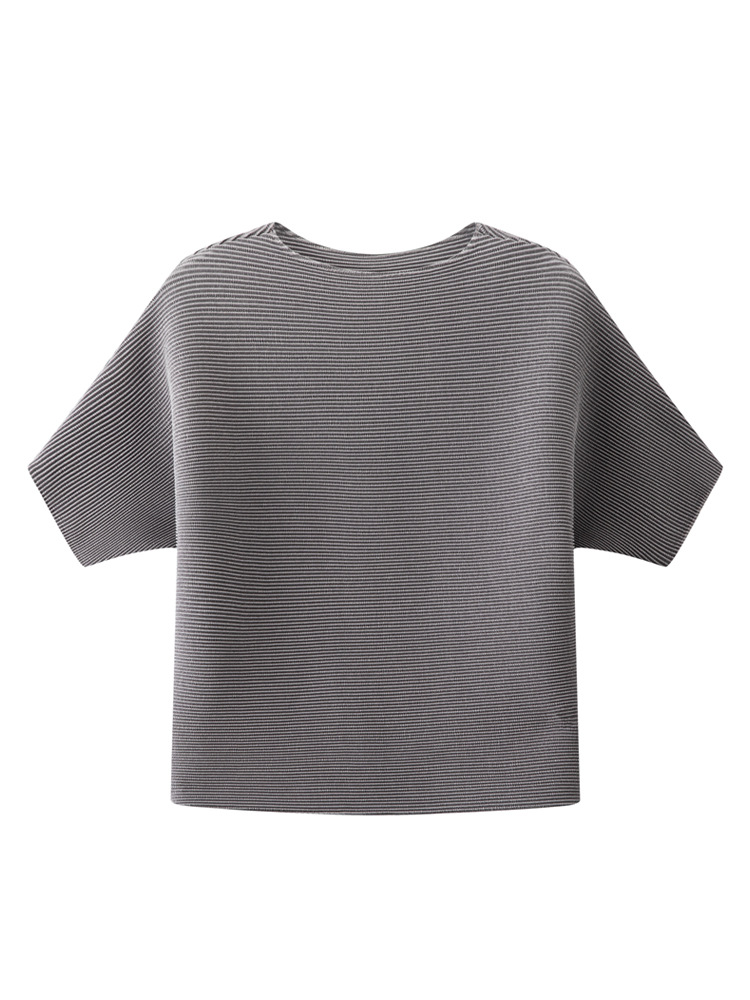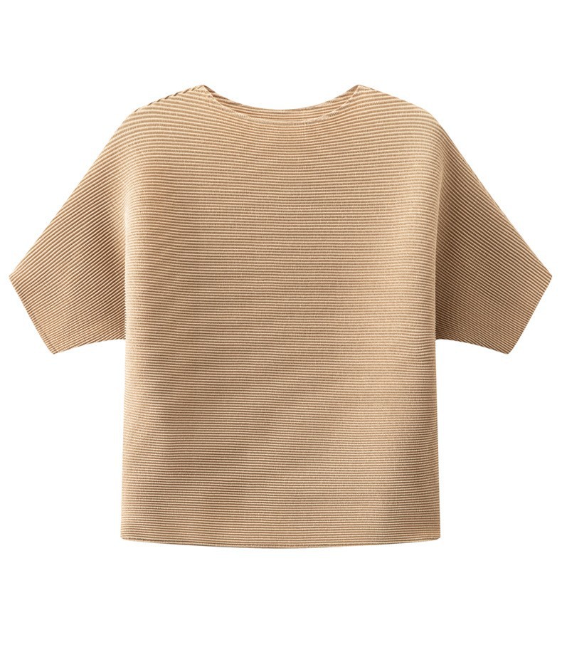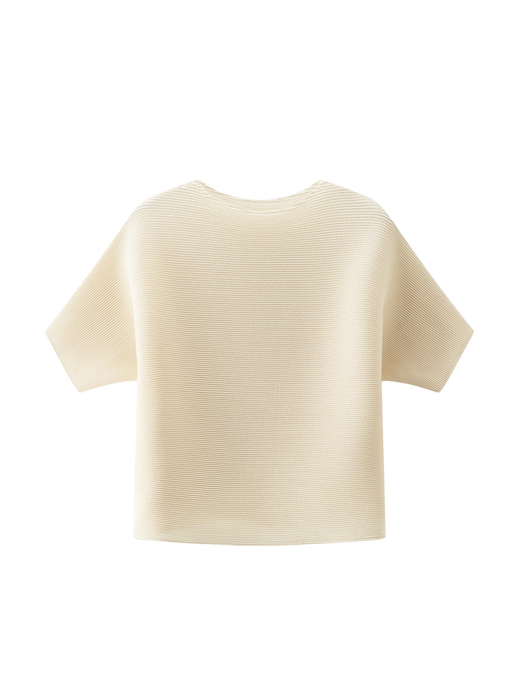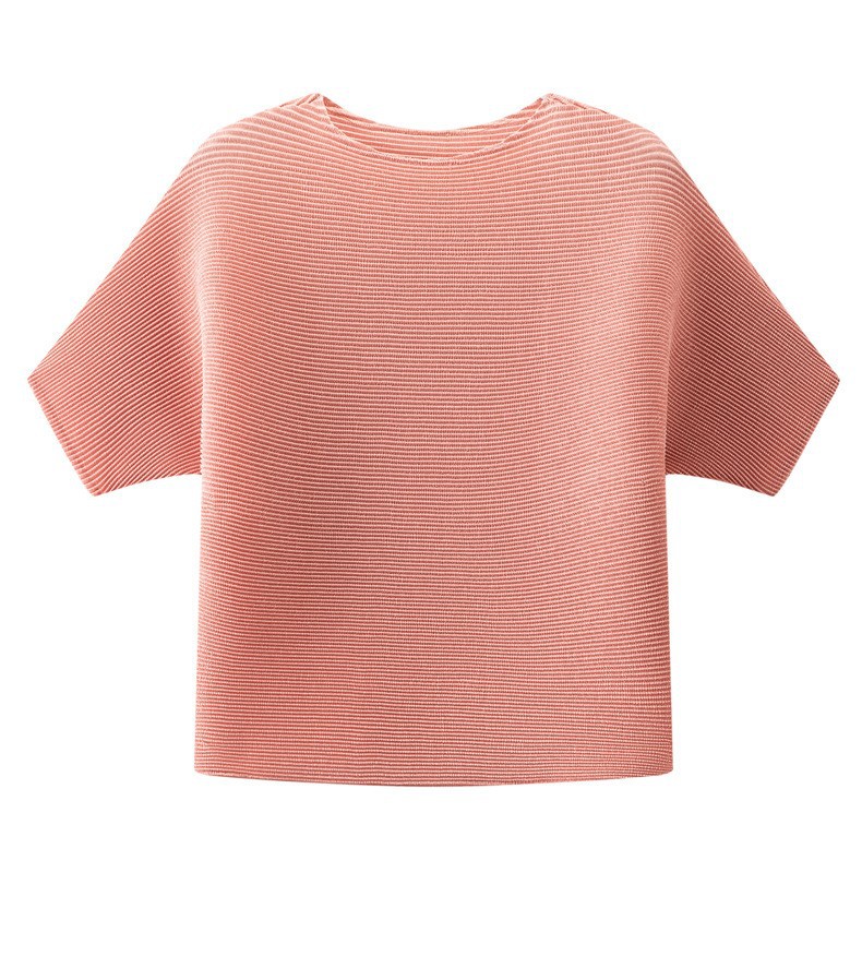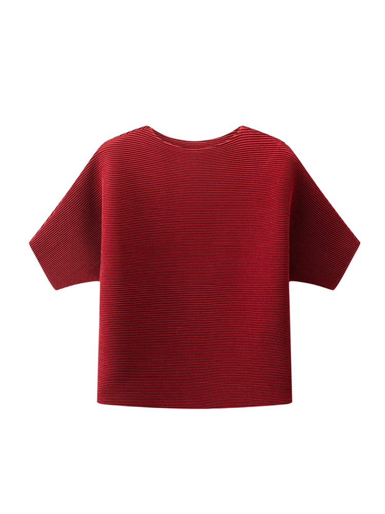 하이 엔드 미야케 크루 넥 솔리드 컬러 루즈 최고 패션 통근 올 매치 반팔 티셔츠 여성용 여름 뉴스토어 가기