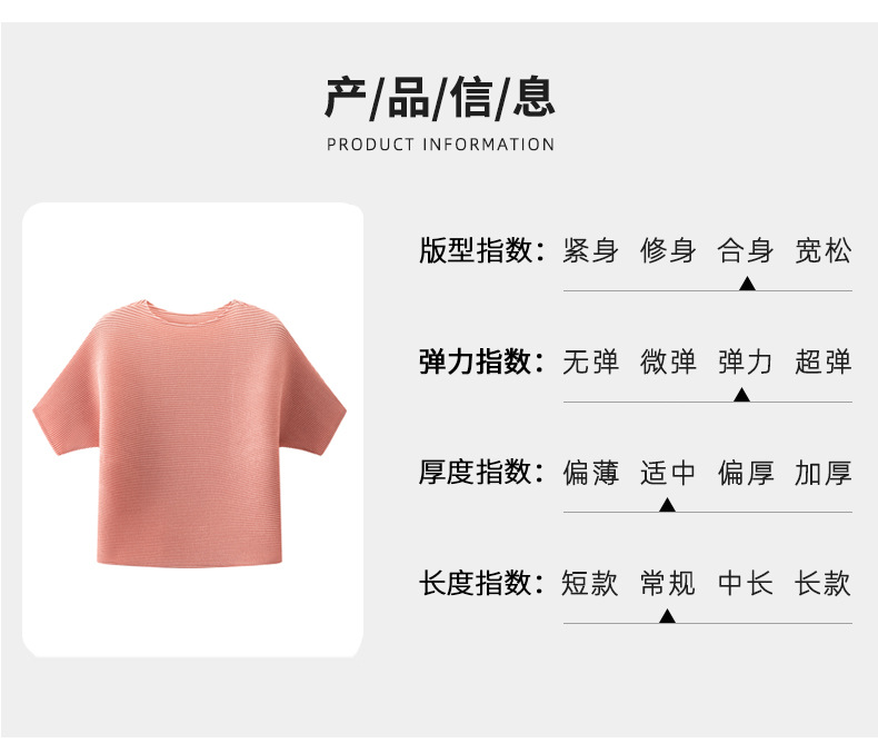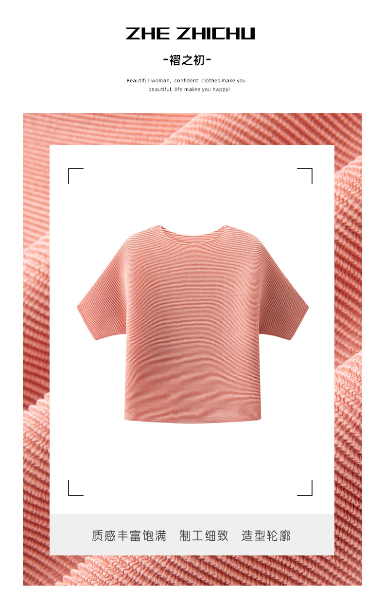 高端三宅圆领纯色宽松褶皱上衣时尚通勤百搭短袖T恤女夏季新款