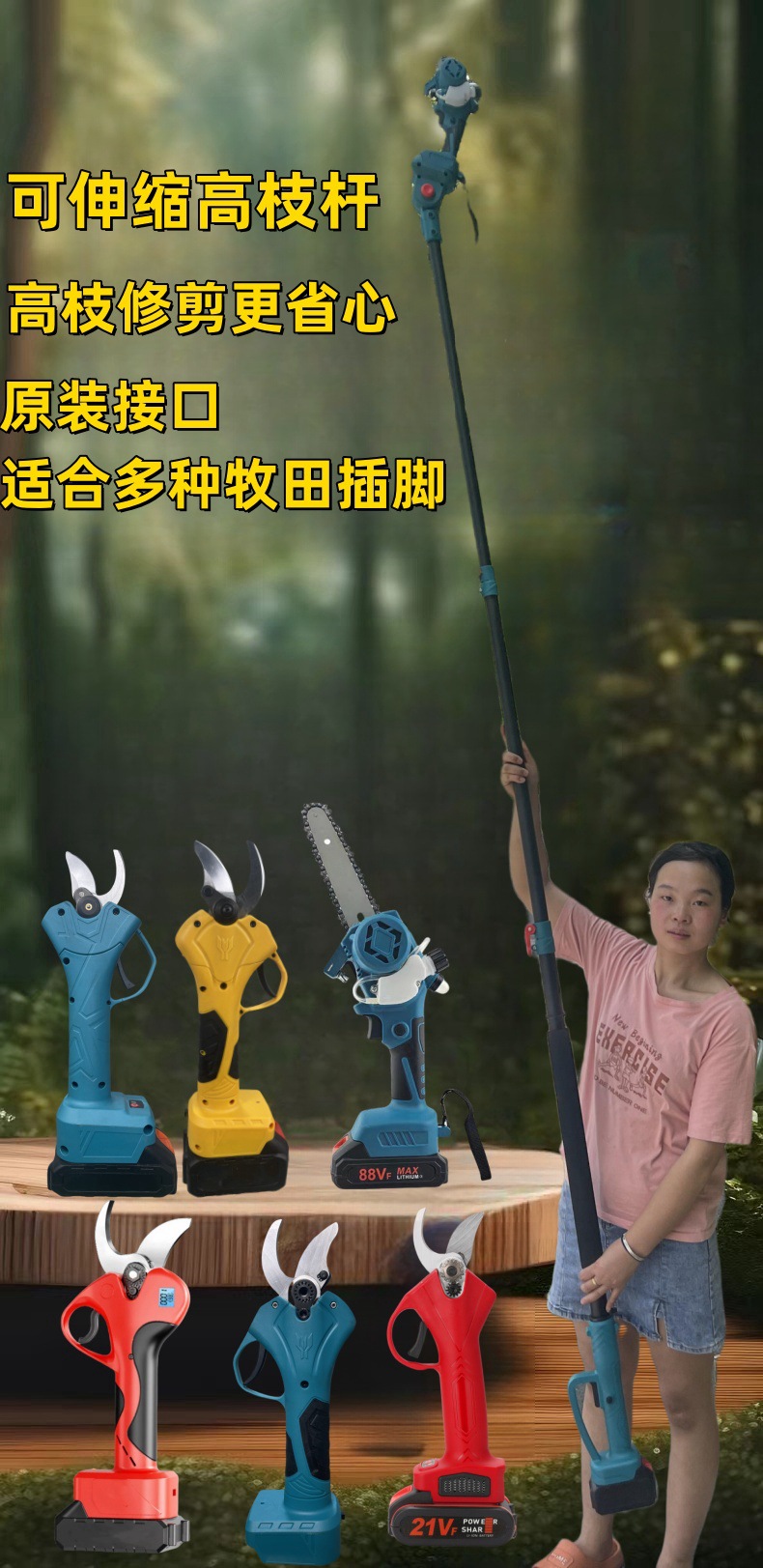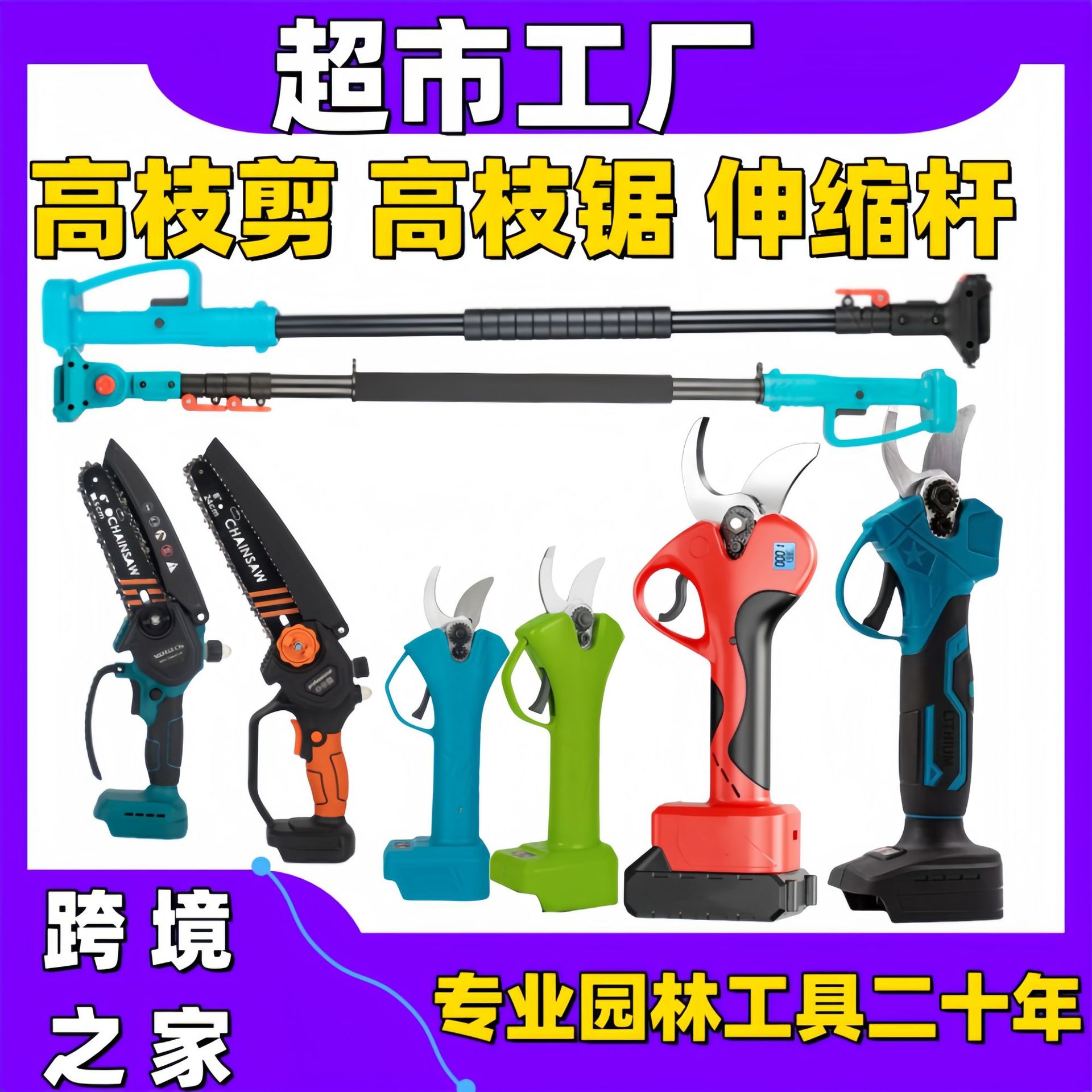 • 전단 + 6inch 톱 + 신축 막대 [10개 섹션, 배터리 2개]