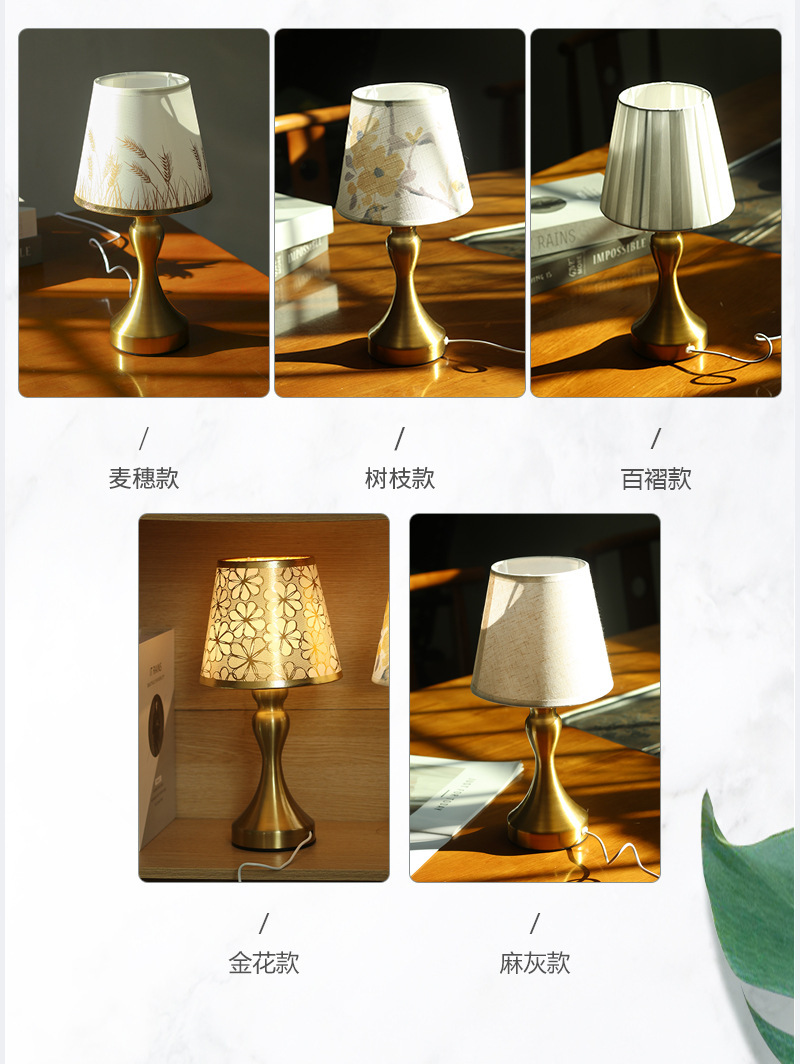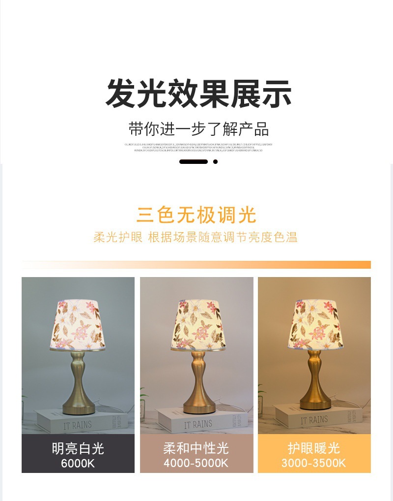 국경 간 폭발 직물 테이블 램프 금속베이스 USB 인터페이스 3 색 조절 침실 거실 분위기 조명 테이블 램프스토어 가기