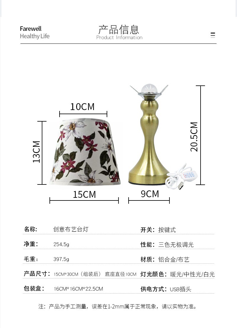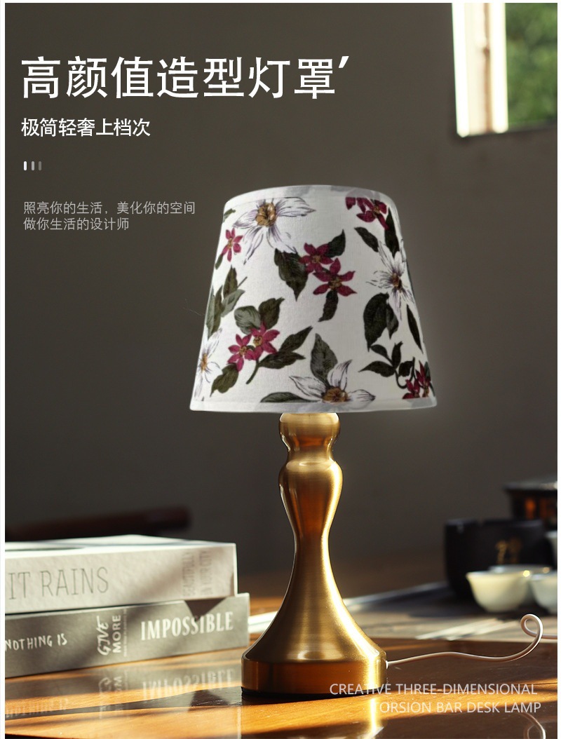 국경 간 폭발 직물 테이블 램프 금속베이스 USB 인터페이스 3 색 조절 침실 거실 분위기 조명 테이블 램프