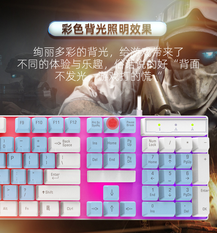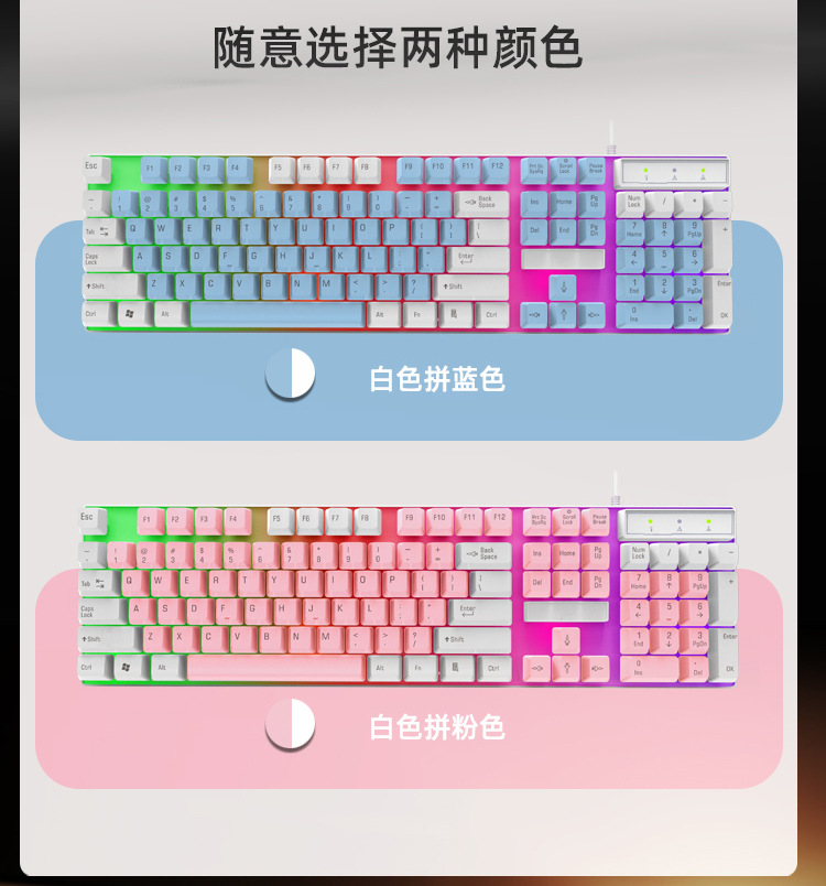 Peng Bai K100 기계식 느낌 게임 유선 키보드 색상 일치 빛나는 데스크탑 컴퓨터 액세서리 도매 맞춤형 국경