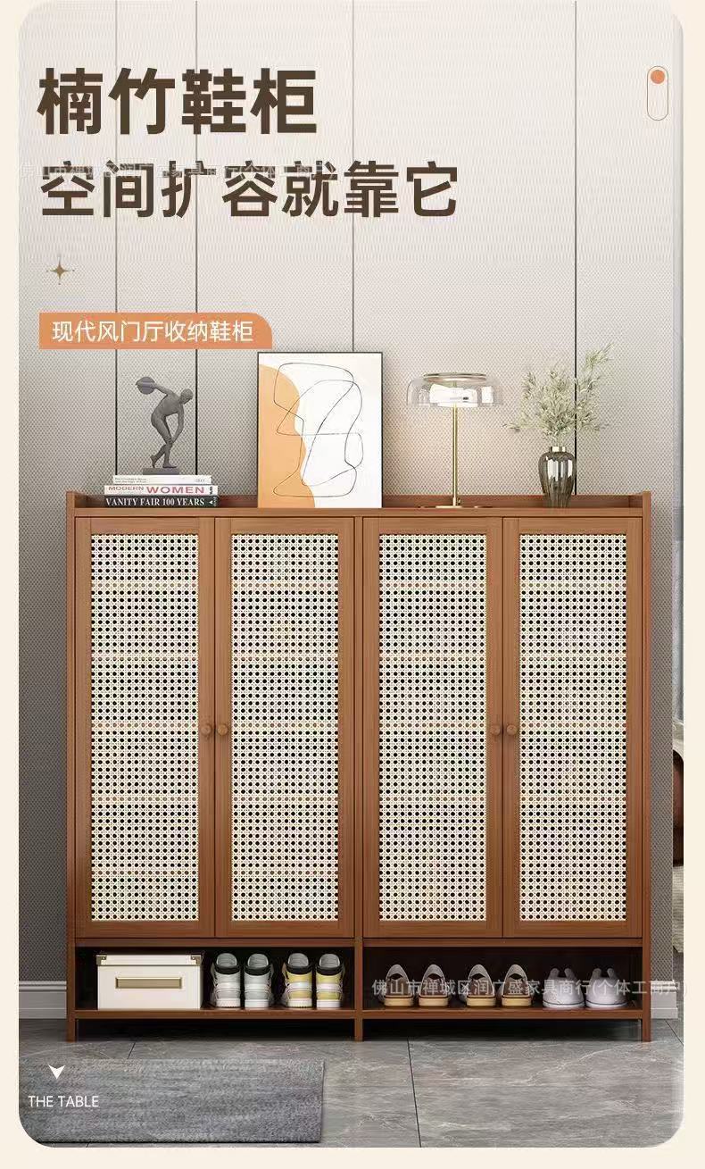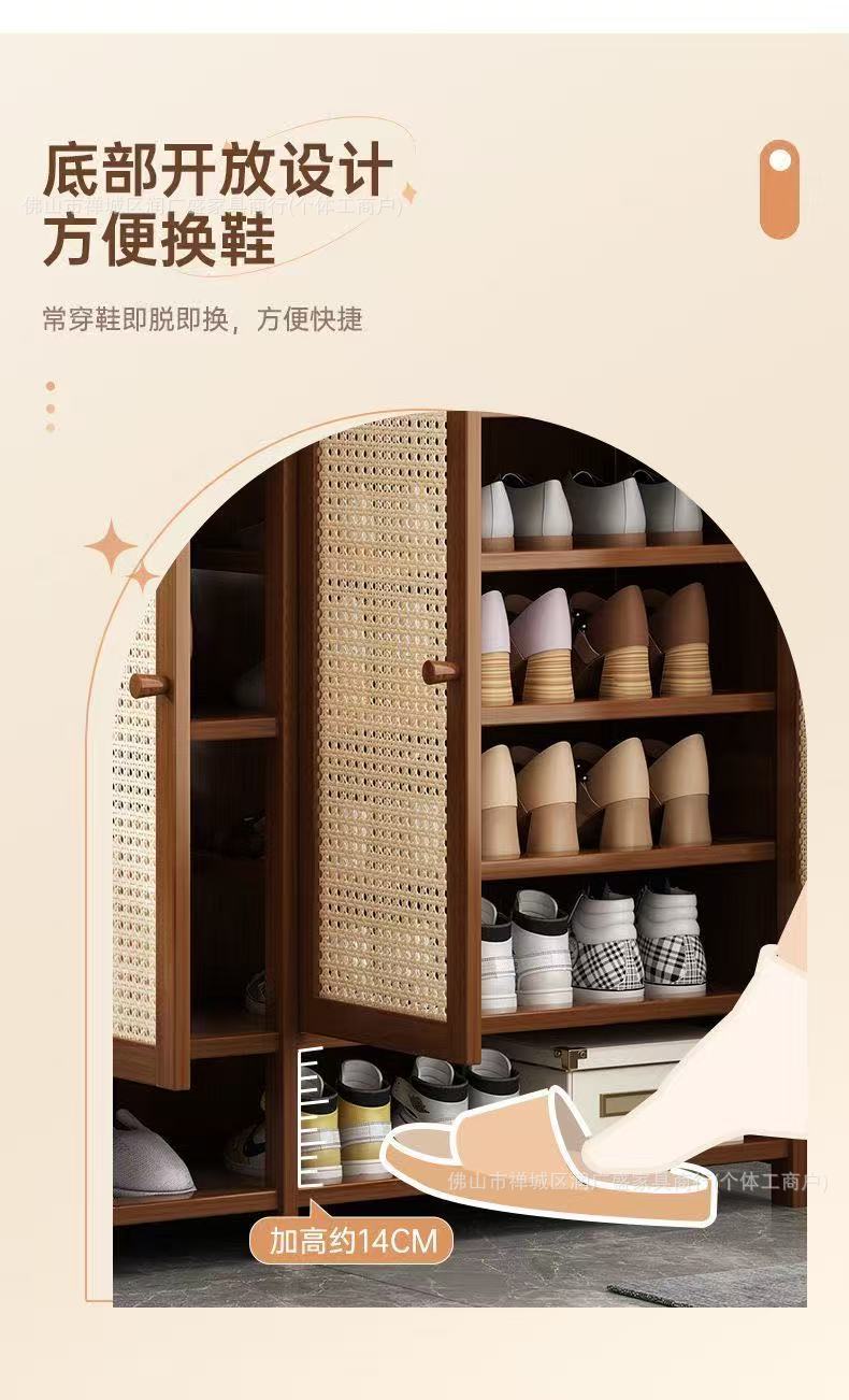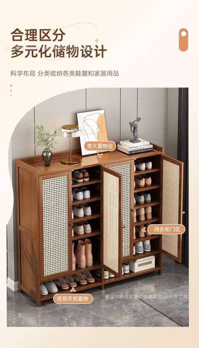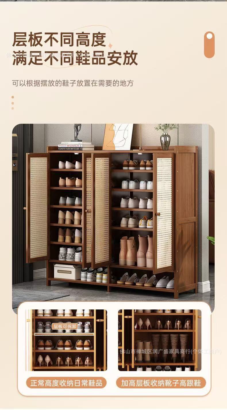 Runguangsheng 등나무 신발 랙 실내 입구 가정용 다층 방진 신발 캐비닛 대용량 저장 솔리드 우드 신발 캐비닛