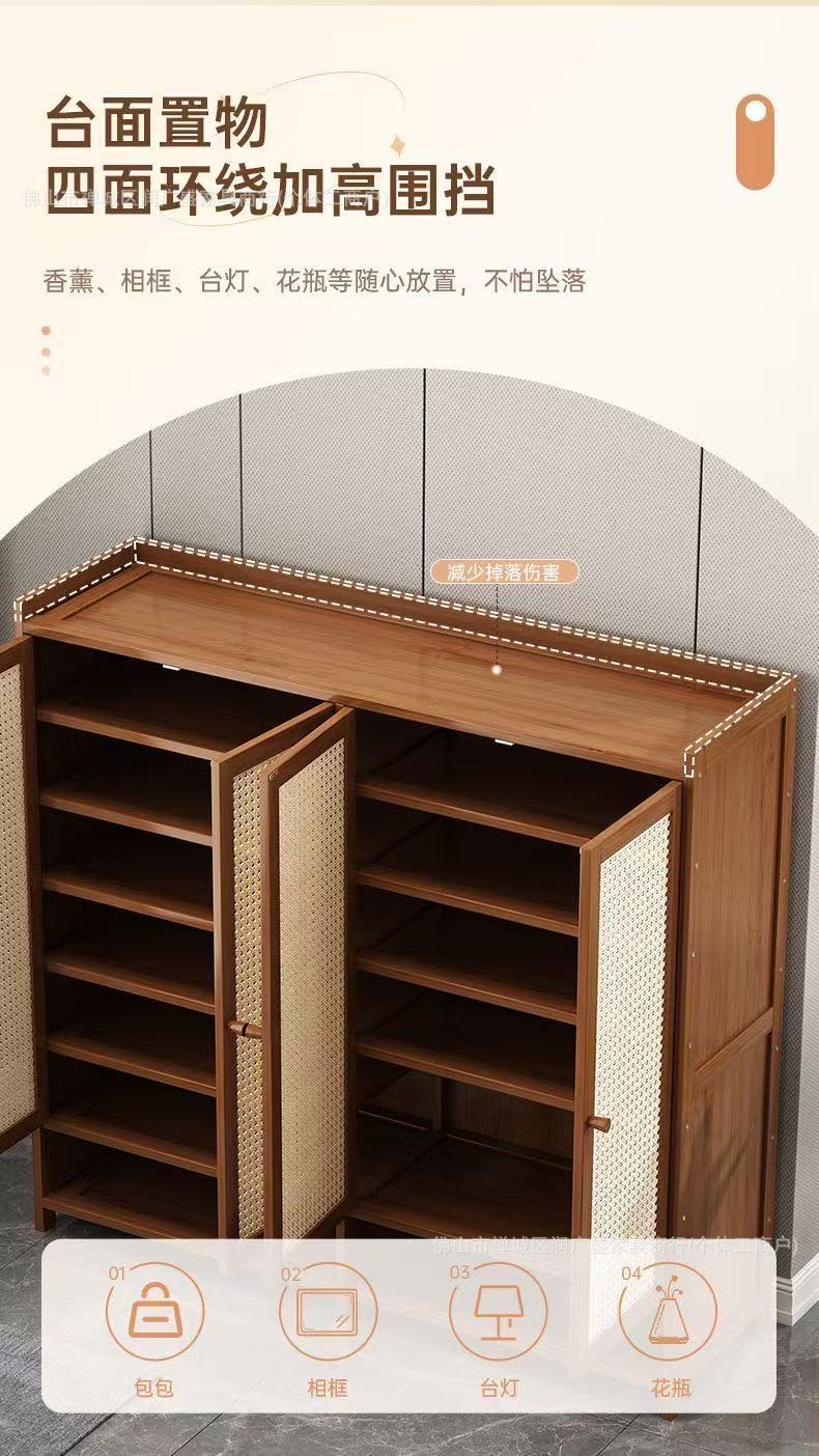 Runguangsheng 등나무 신발 랙 실내 입구 가정용 다층 방진 신발 캐비닛 대용량 저장 솔리드 우드 신발 캐비닛스토어 가기