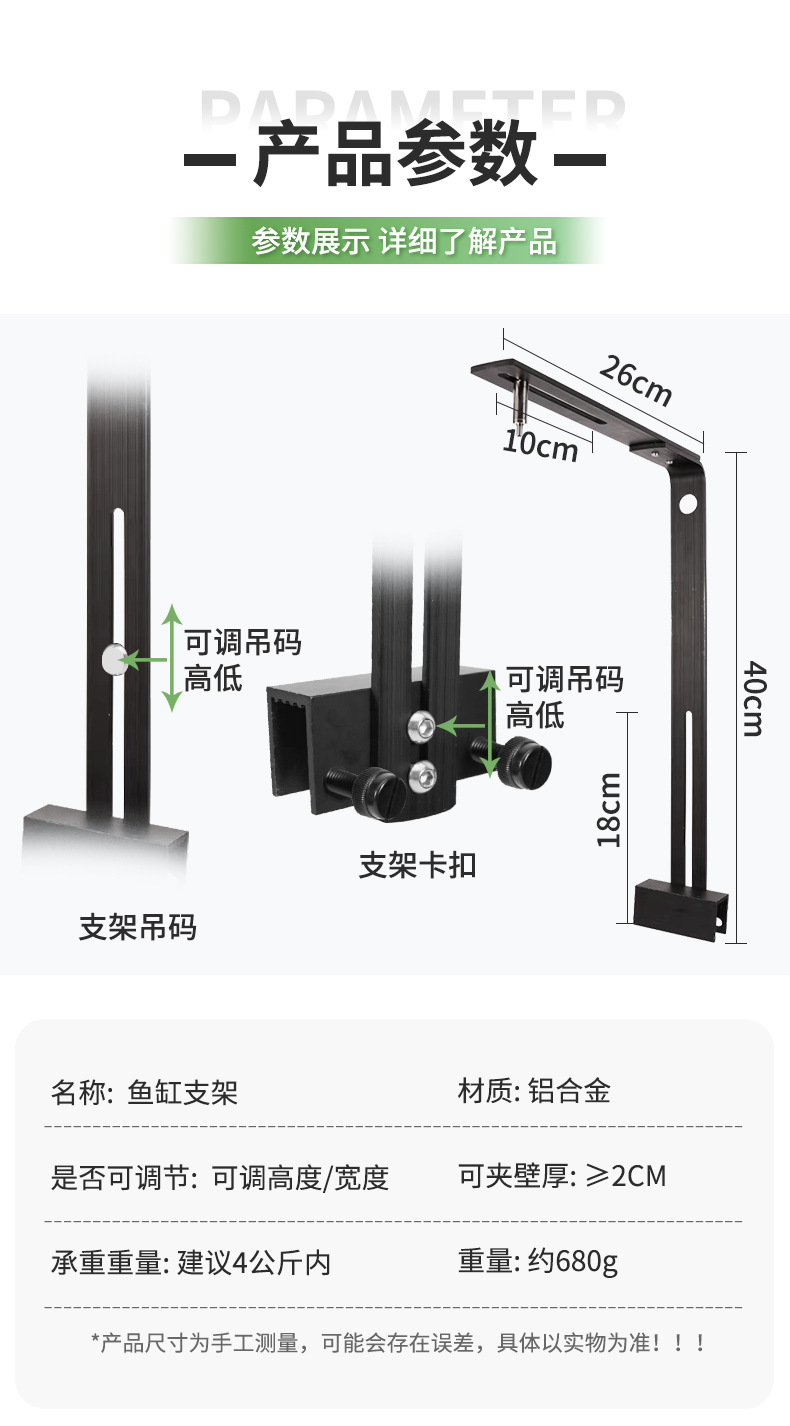 물고기 탱크 램프 브래킷 수족관 물 잔디 램프 옷걸이 브래킷 알루미늄 합금 조정 가능한 거리 물고기 탱크 램프 액세서리 랙