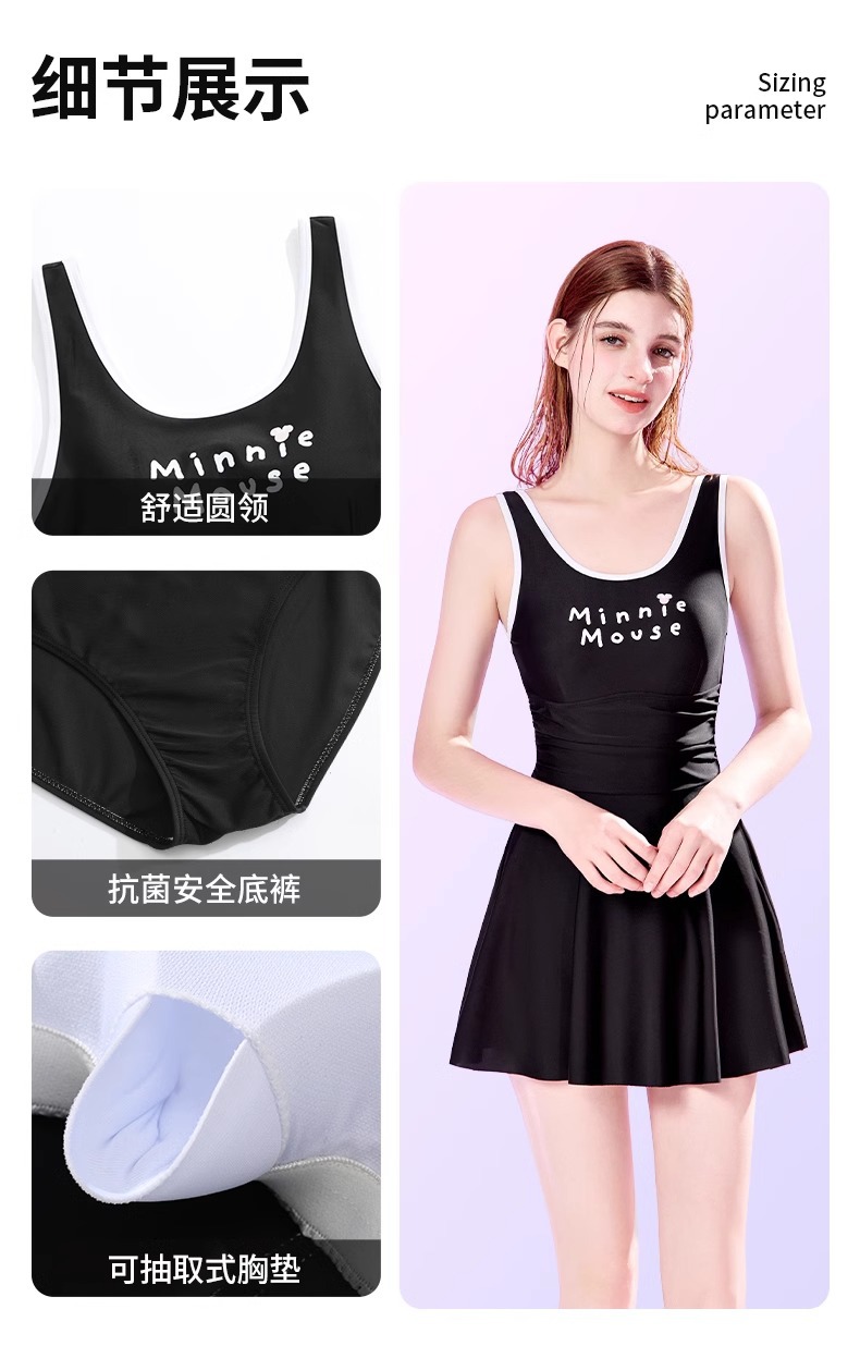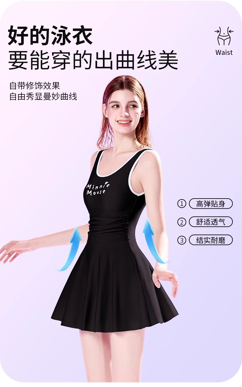 디즈니 수영복 여성 2025 새로운 스타일 벨리 커버 슬림 온천 유행 선스크린 원피스 원피스 편안한 수영복스토어 가기