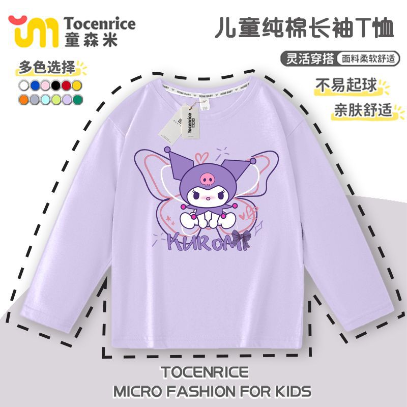 소녀 Kulomi 옷 2025 봄과 가을 새 아기 긴 소매 티셔츠 순수한면 유행 보투 탑 중 큰 어린이 T스토어 가기