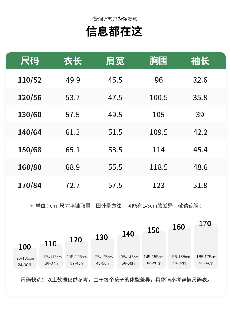 • 사이즈 120의 권장 신장은 115-125cm입니다.