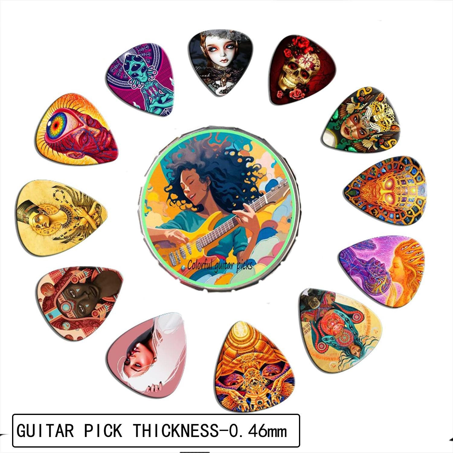 비 반복적 인 철 상자 컬러 기타 12 조각 우쿨렐레 파편 악기를 그린 액세서리 선택스토어 가기