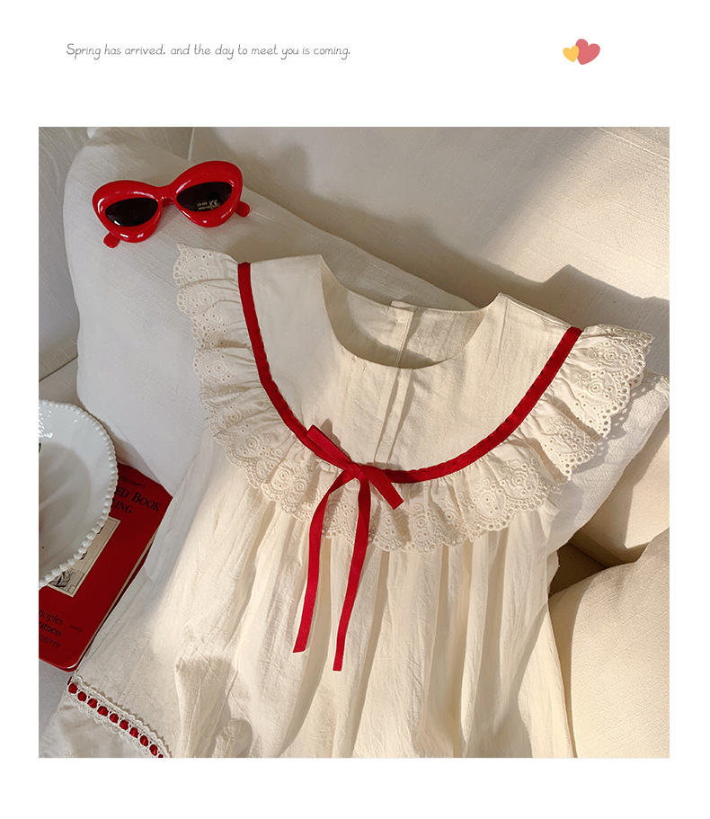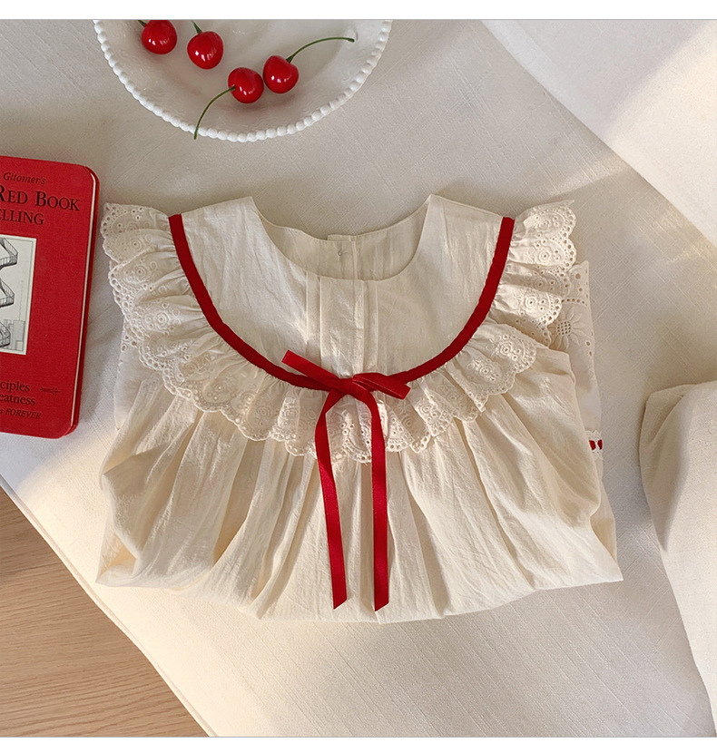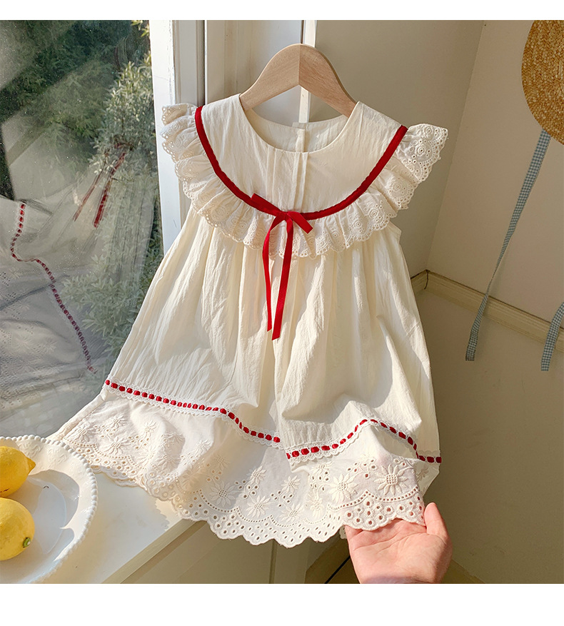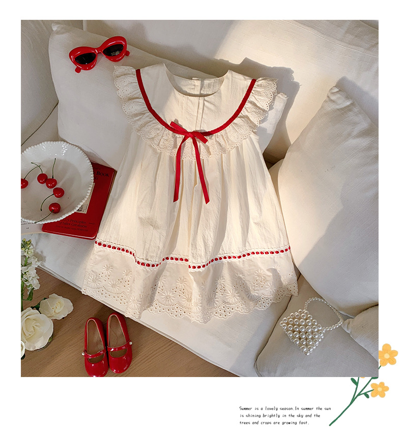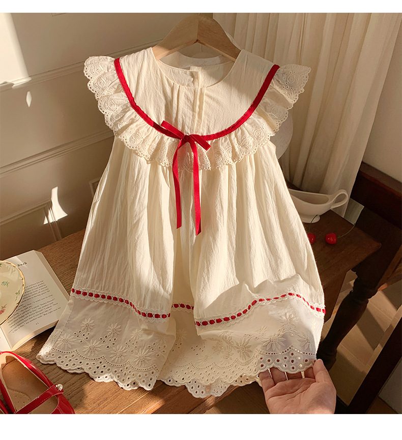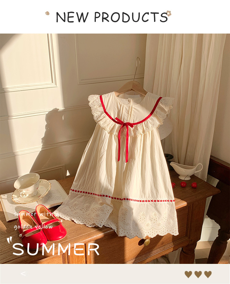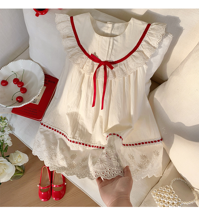 한국식 아동복 레이스 러플 칼라 걸스 원피스 2025 여름 라운드 넥 레이스 어린이 공주 원피스 모리 스타일스토어 가기