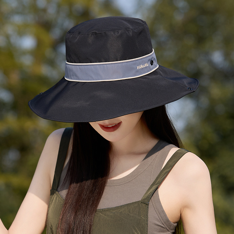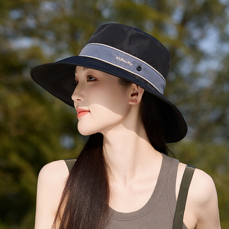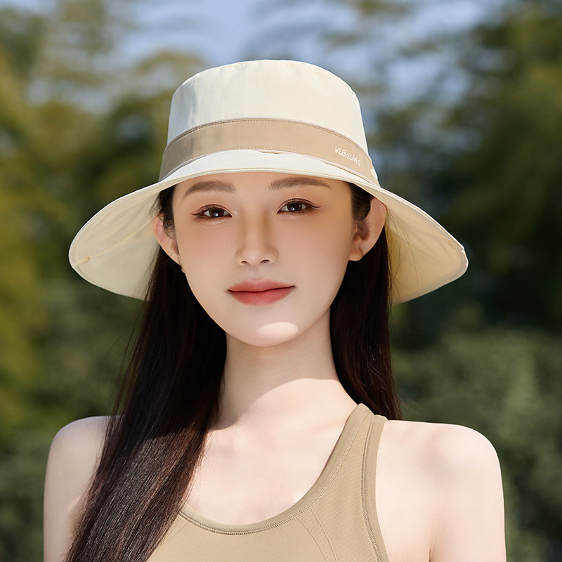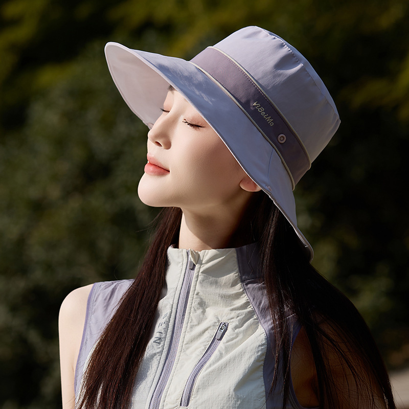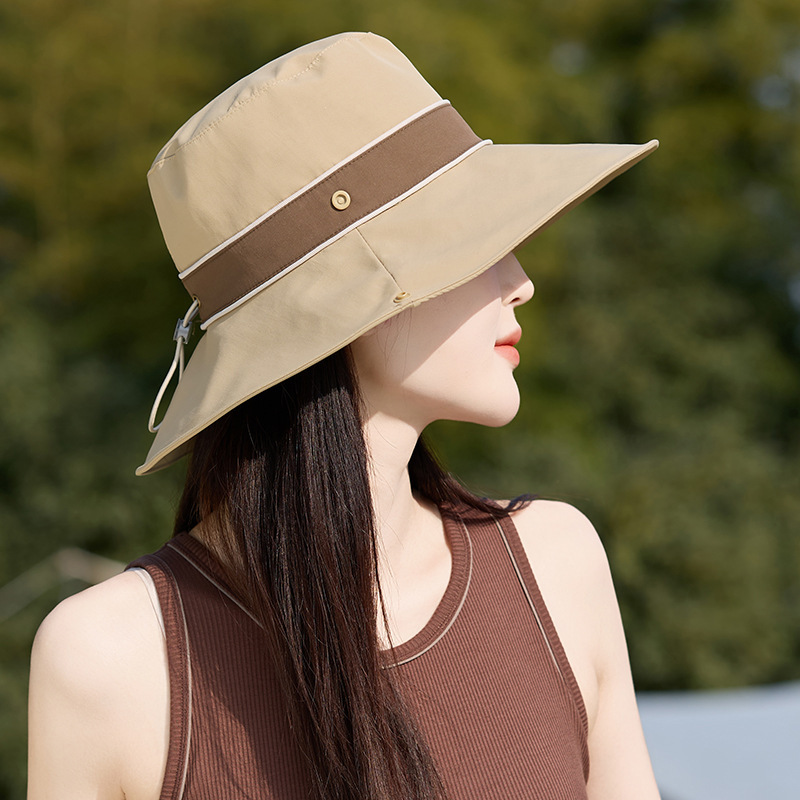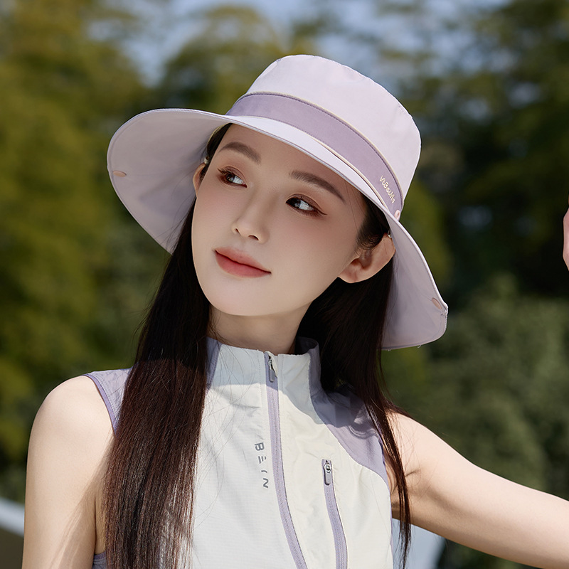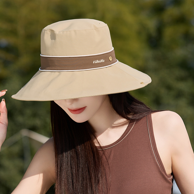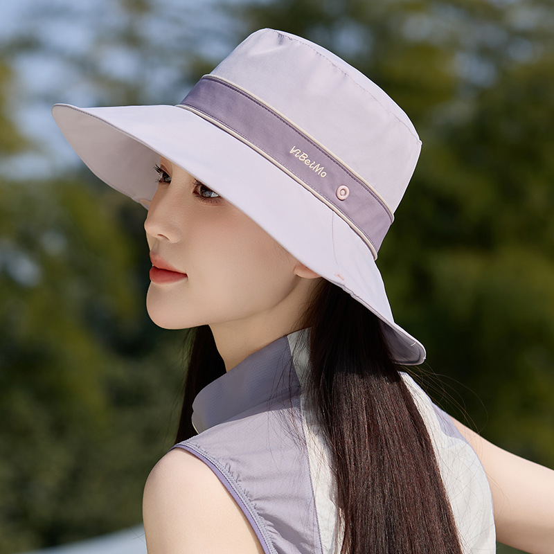 투웨어 컬러 블록 어부 모자 한국 스타일 간단한 큰 머리 UV 보호 등산 모자 여성을위한 야외 선 스크린 모자