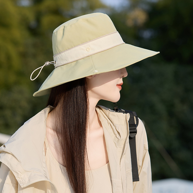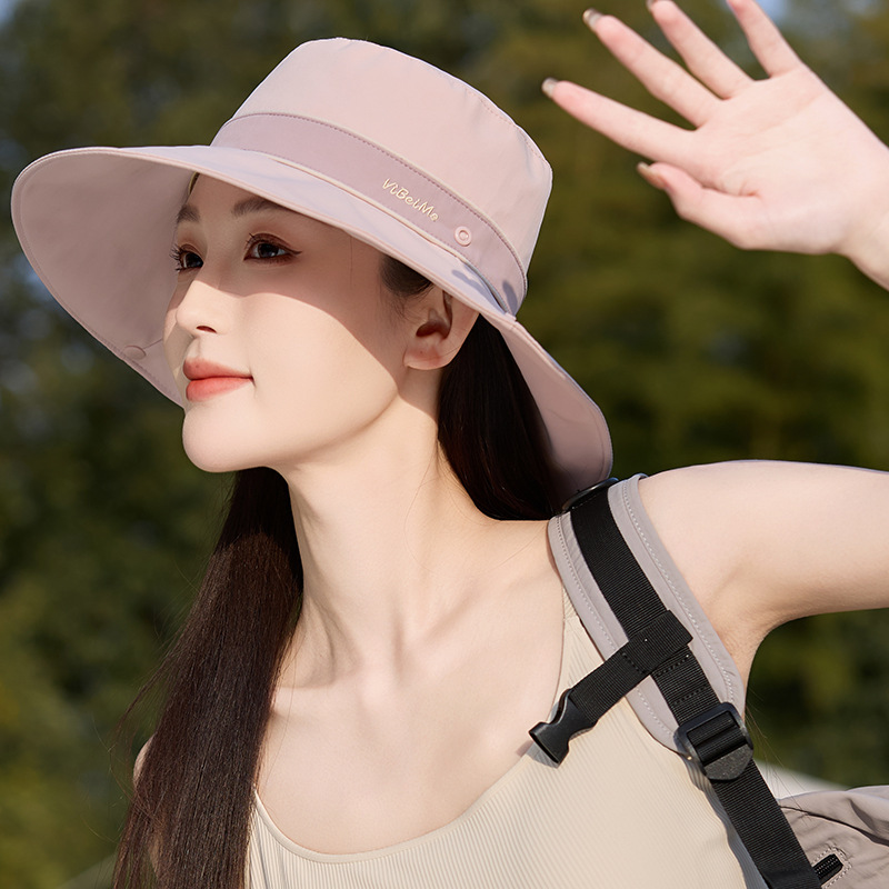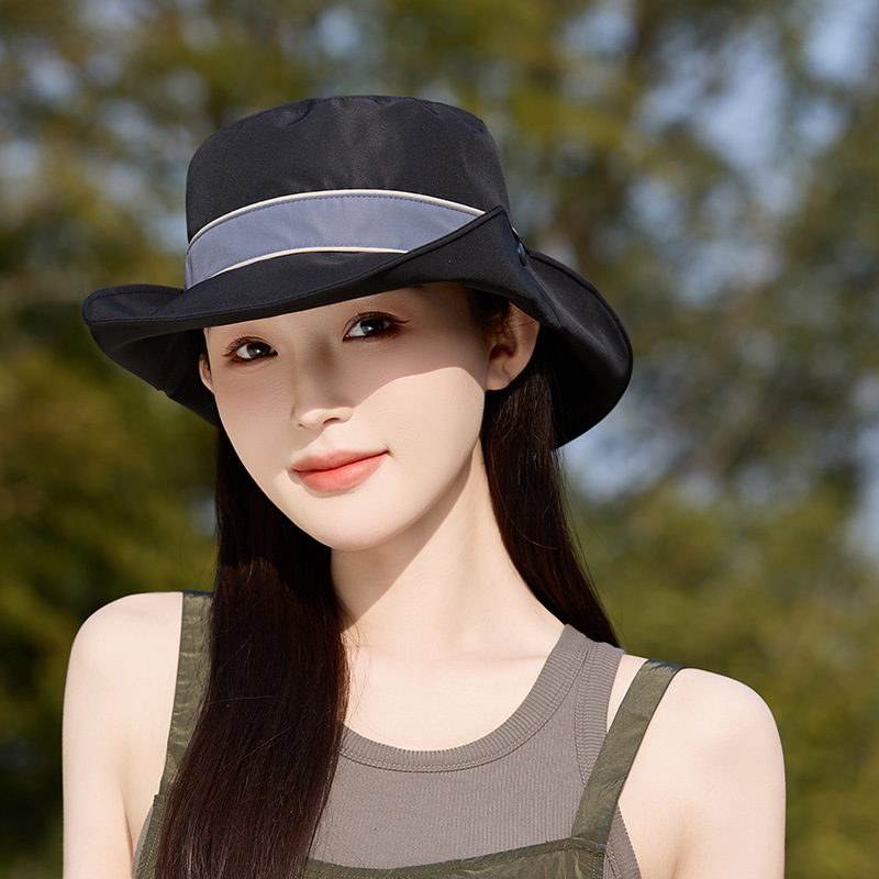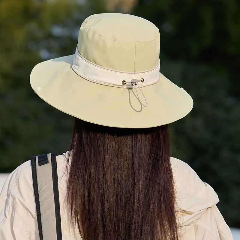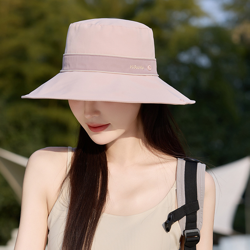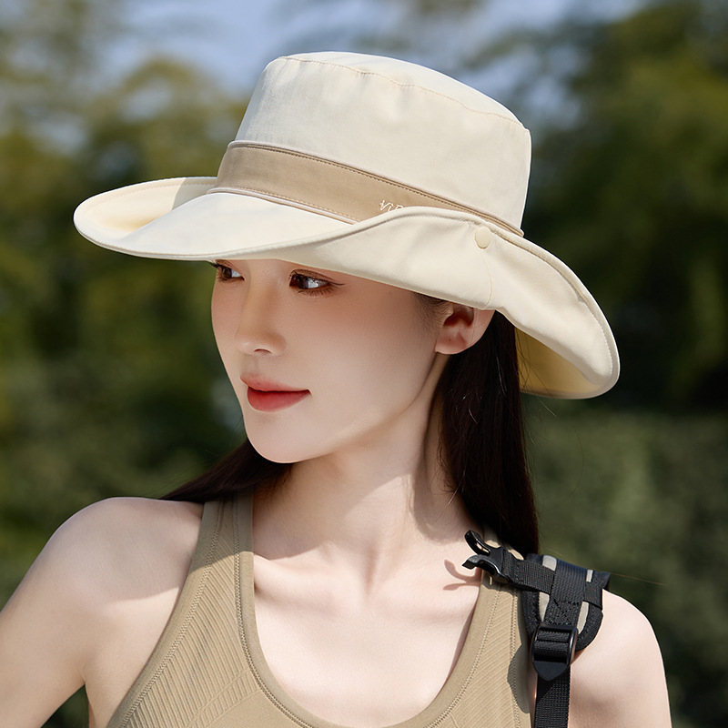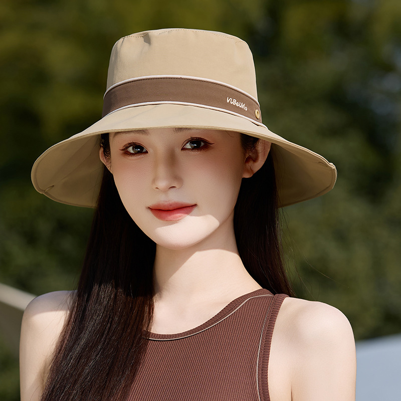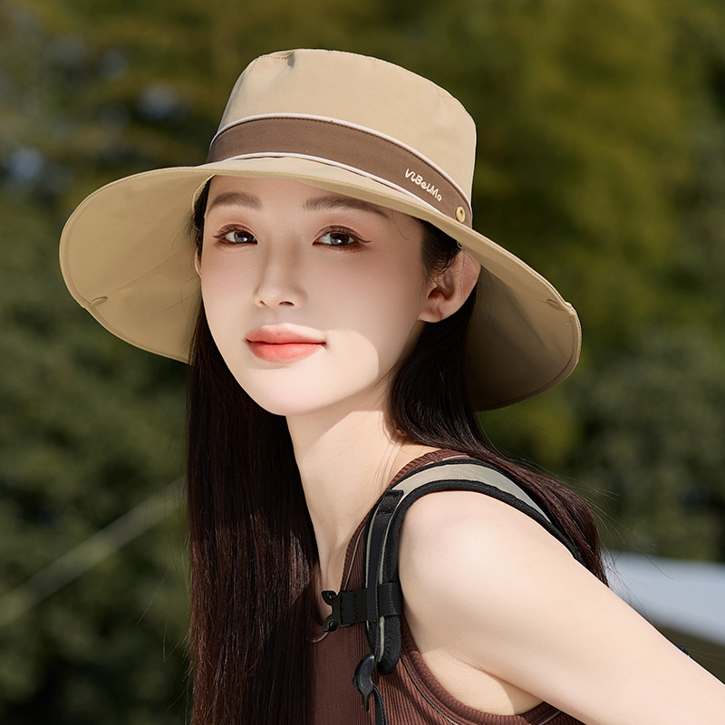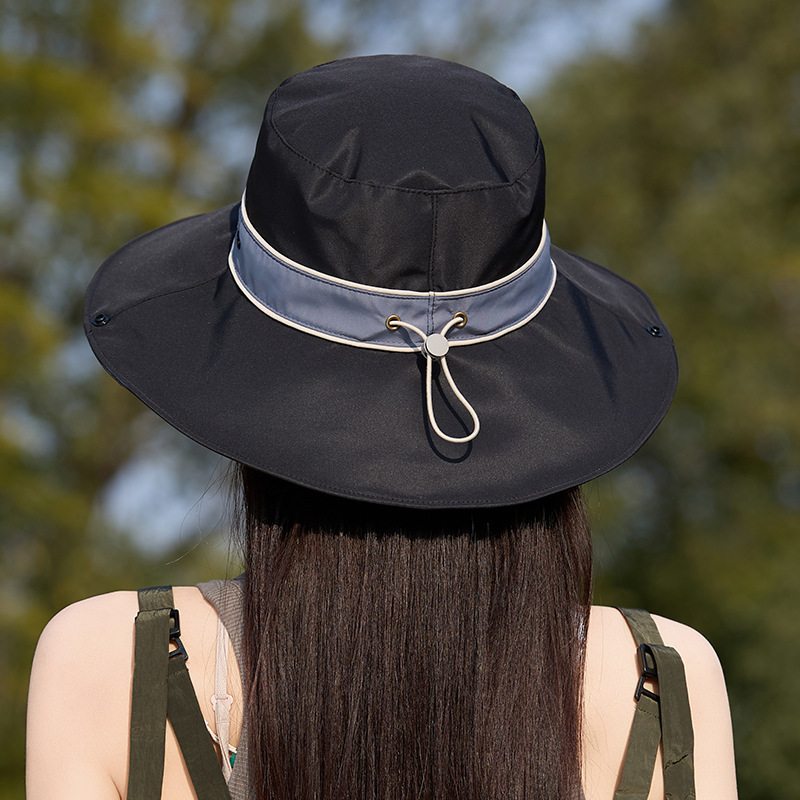투웨어 컬러 블록 어부 모자 한국 스타일 간단한 큰 머리 UV 보호 등산 모자 여성을위한 야외 선 스크린 모자