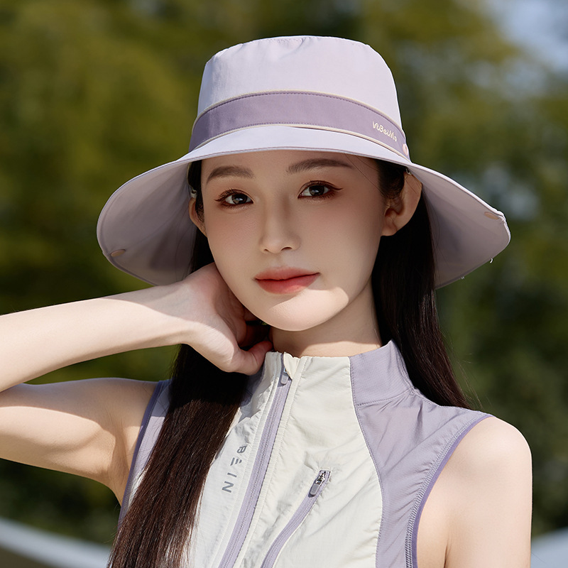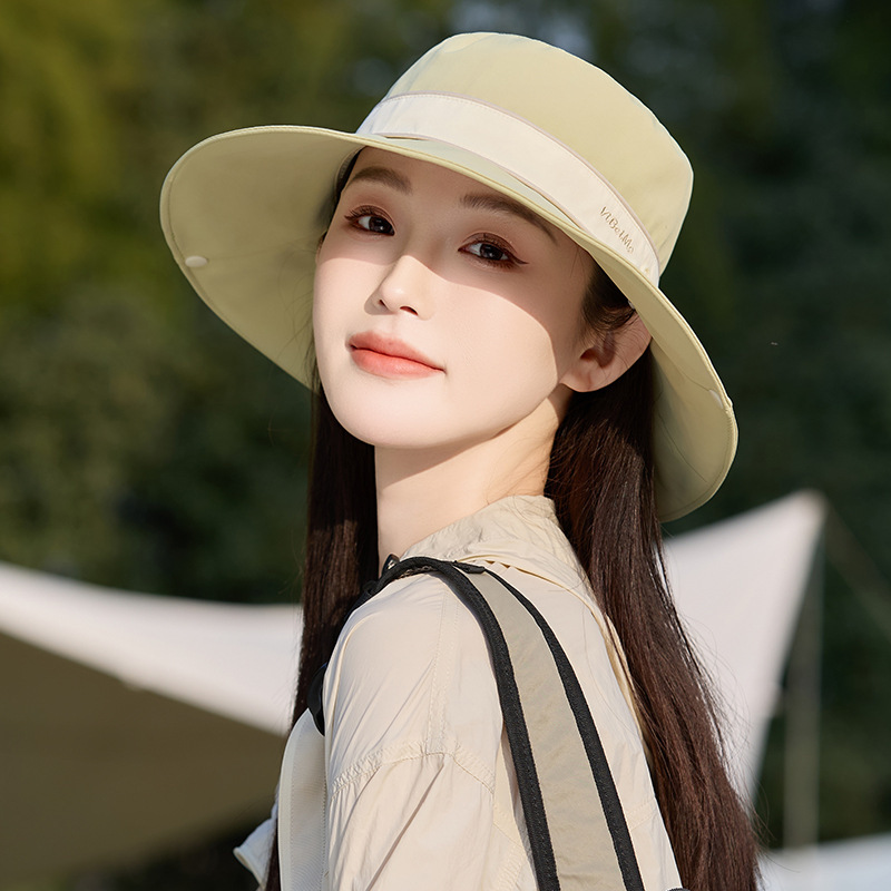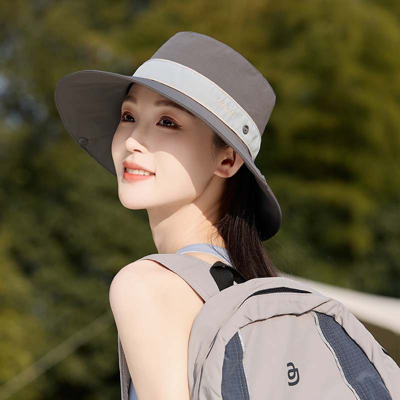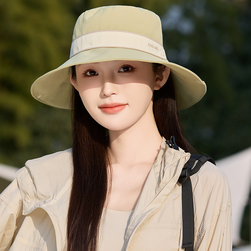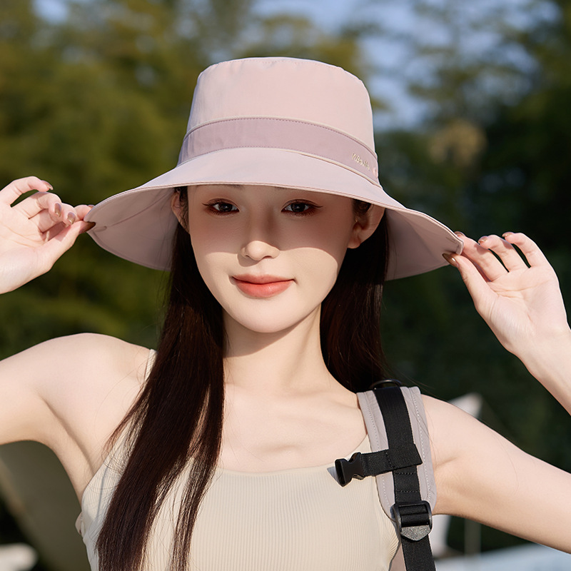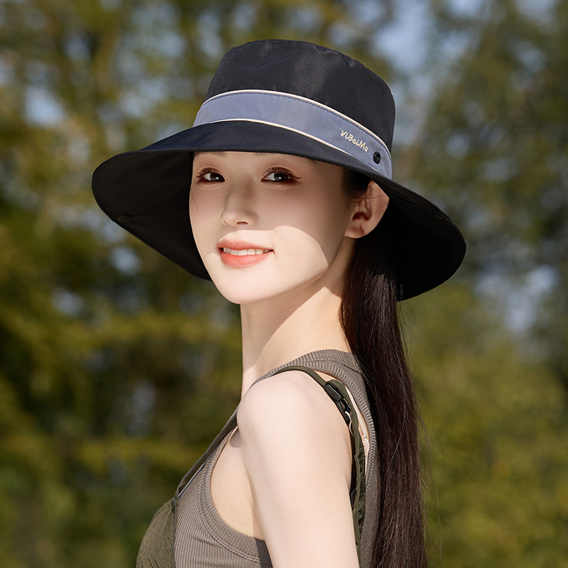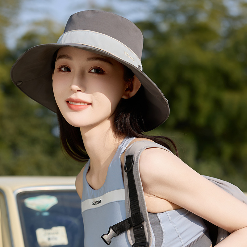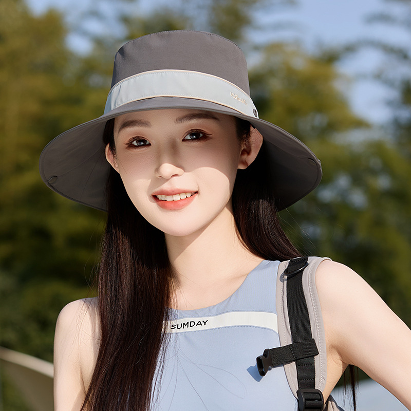 투웨어 컬러 블록 어부 모자 한국 스타일 간단한 큰 머리 UV 보호 등산 모자 여성을위한 야외 선 스크린 모자