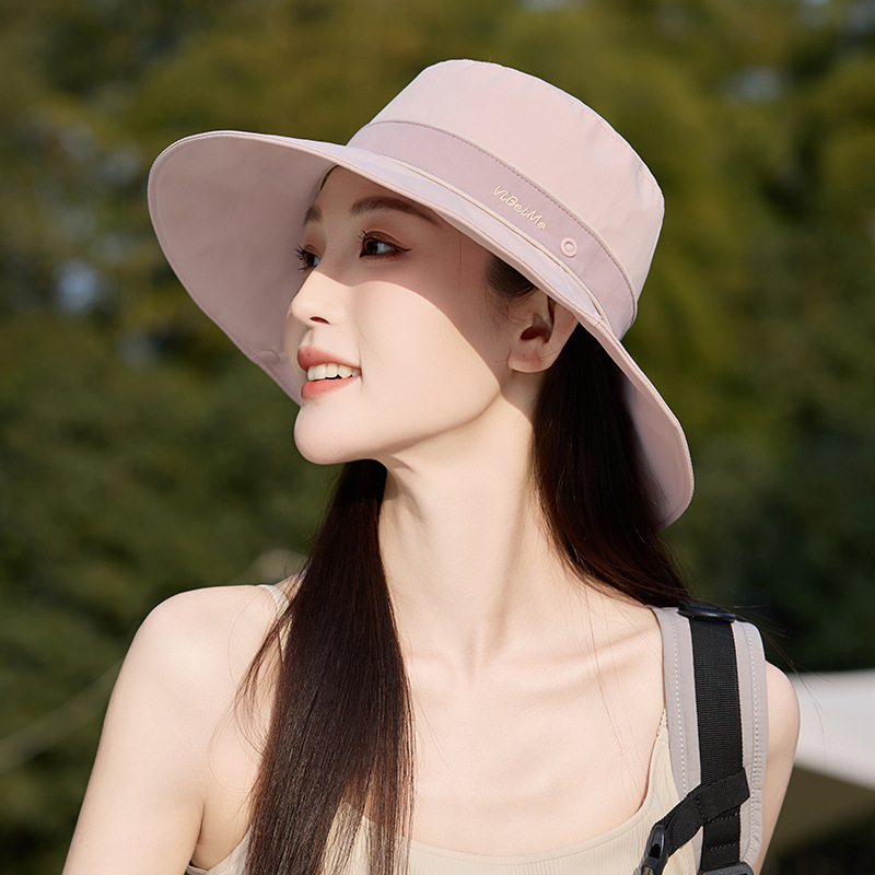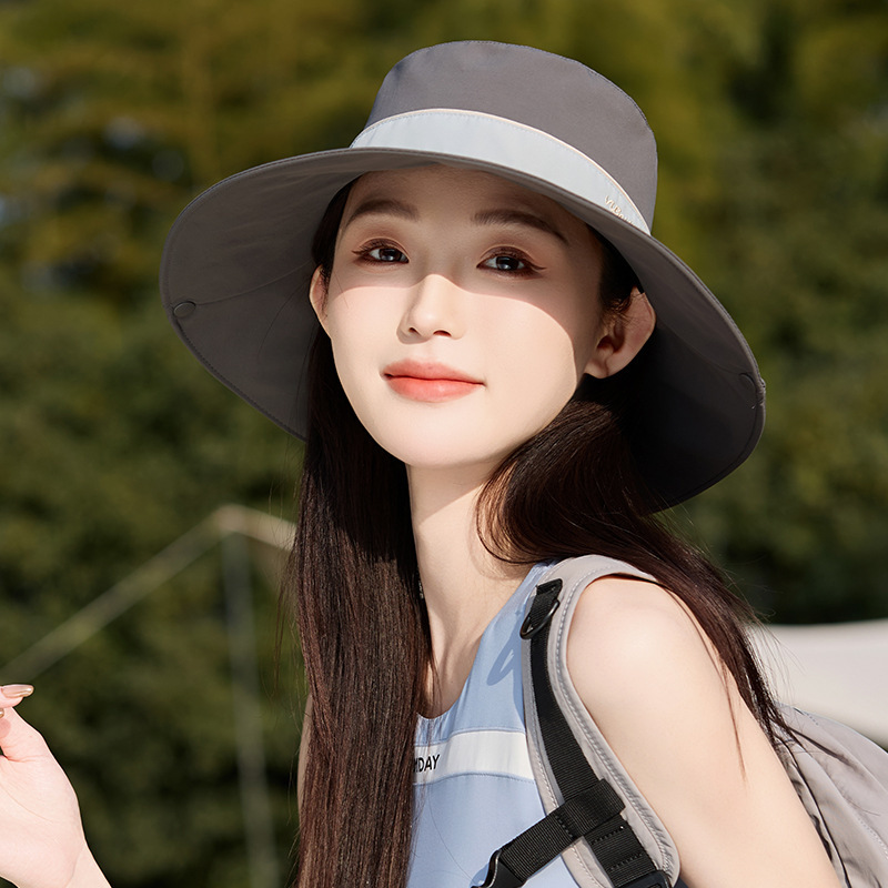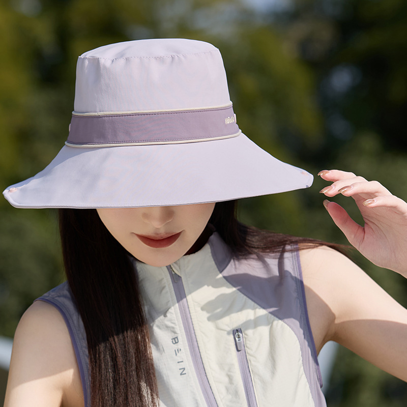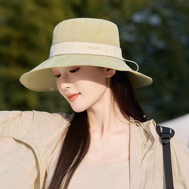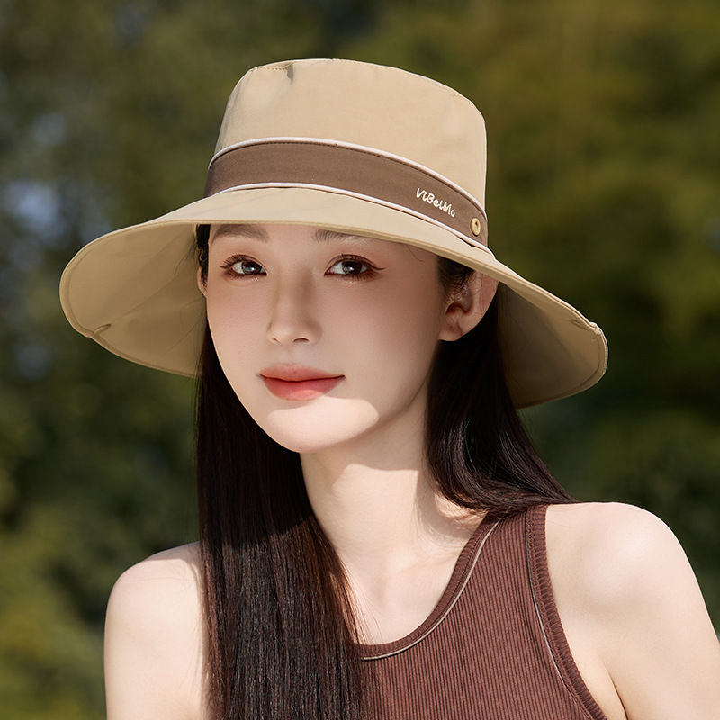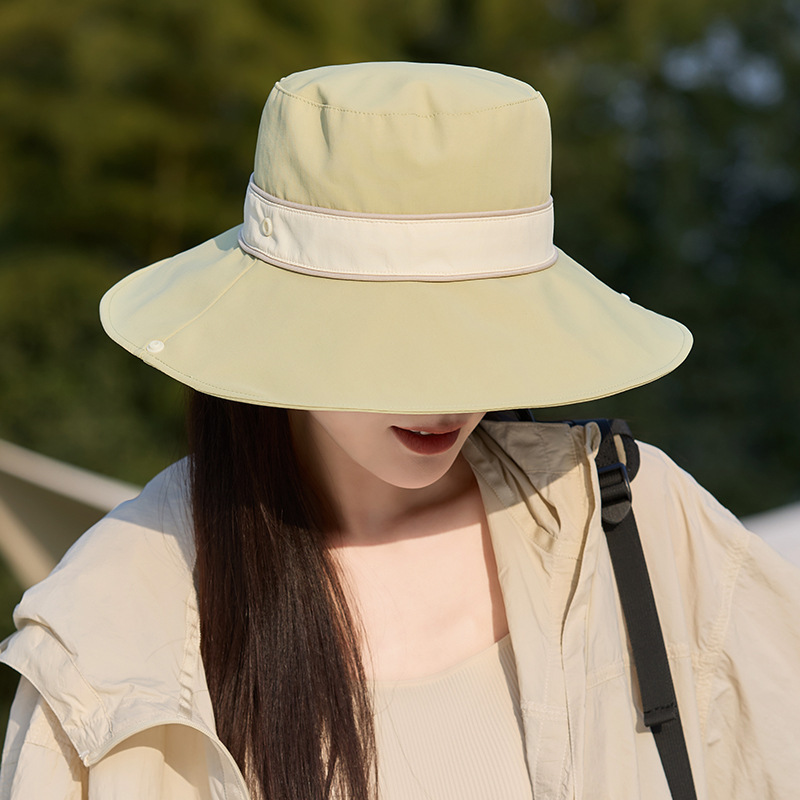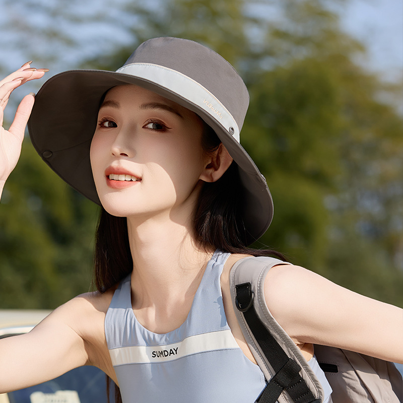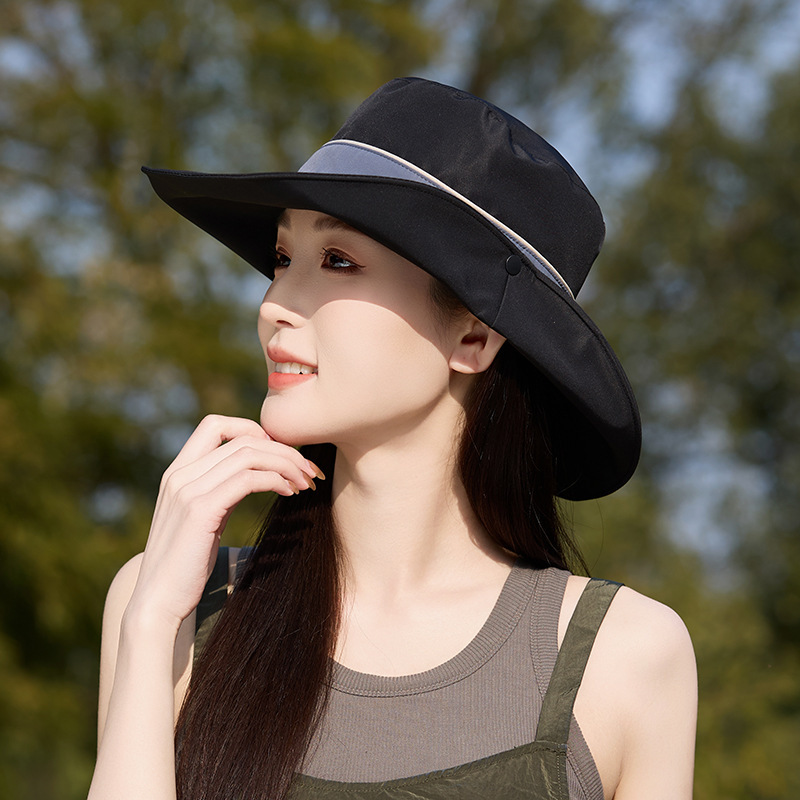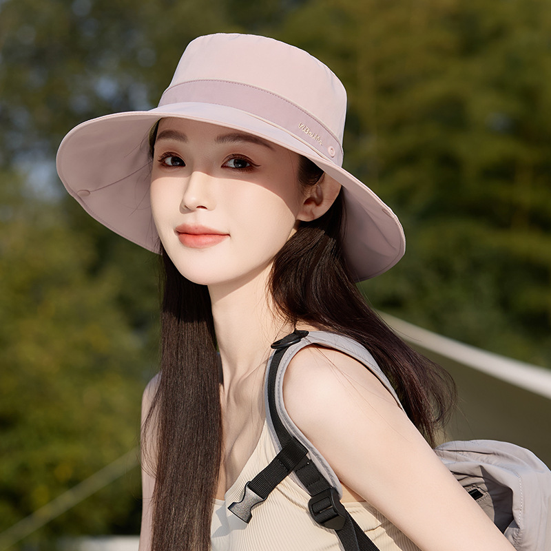 투웨어 컬러 블록 어부 모자 한국 스타일 간단한 큰 머리 UV 보호 등산 모자 여성을위한 야외 선 스크린 모자
