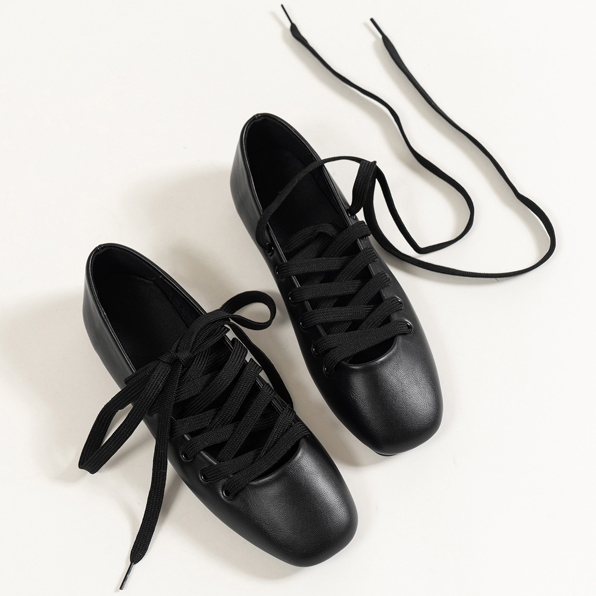 대외 무역 봄과 여름 새로운 레트로 크로스 스트랩 메리 제인 신발 여성 캐주얼 스퀘어 발가락 발레 플랫 신발 여성스토어 가기