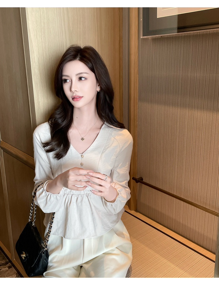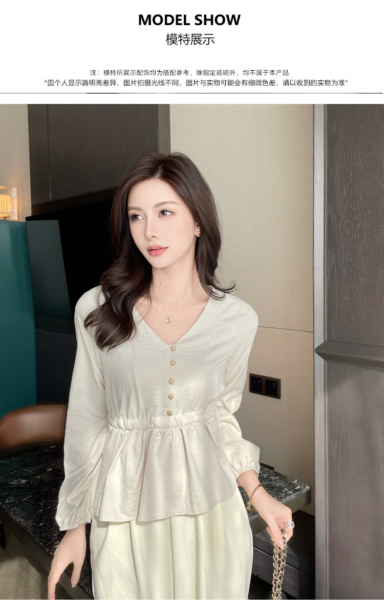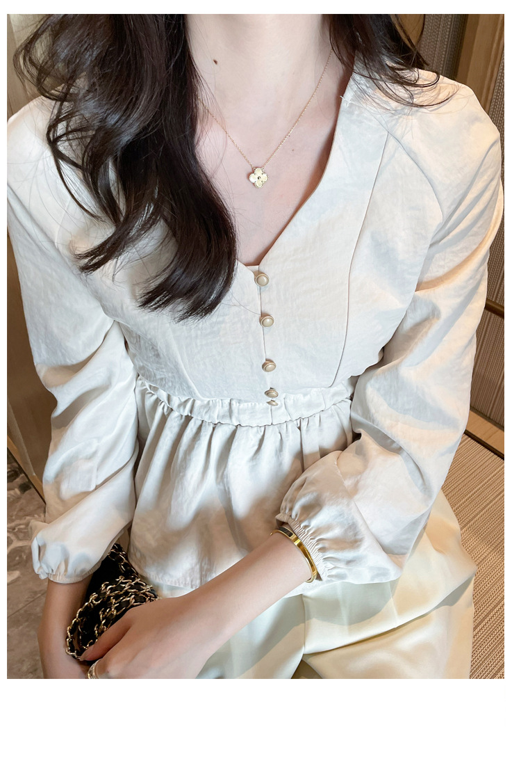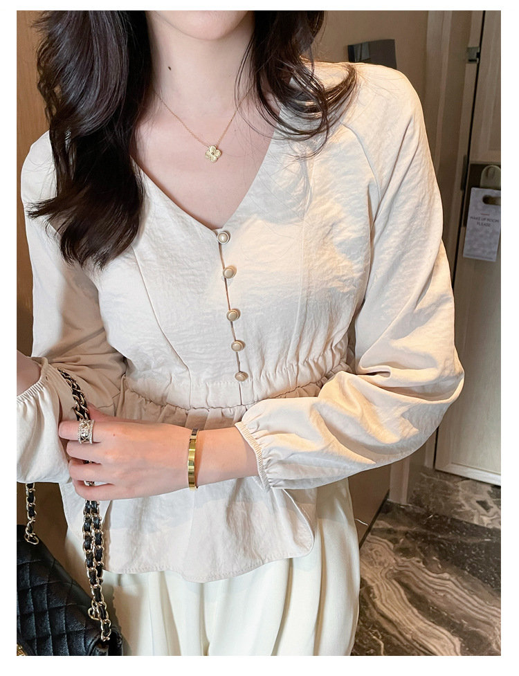 사교계 우아한 여성 최고의 서양 스타일 달콤한 2025 이른 봄 새로운 V-목 타이트 허리 틈새 인기있는 쉬폰 셔츠스토어 가기