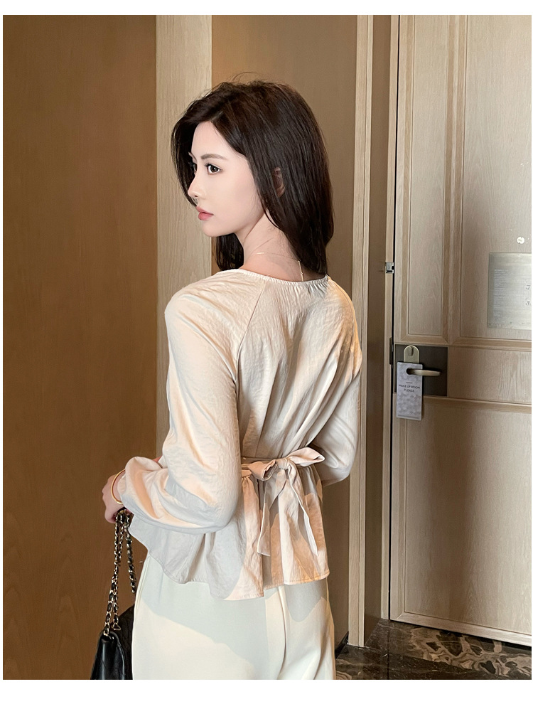 사교계 우아한 여성 최고의 서양 스타일 달콤한 2025 이른 봄 새로운 V-목 타이트 허리 틈새 인기있는 쉬폰 셔츠