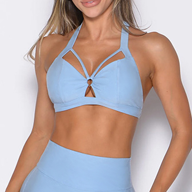 여성을 위한 새로운 크로스보더 홀터넥 아름다운 등 요가 스포츠 브라, 속이 빈 속건성 가슴 패드, 단색 피트니스 스페셜 브라