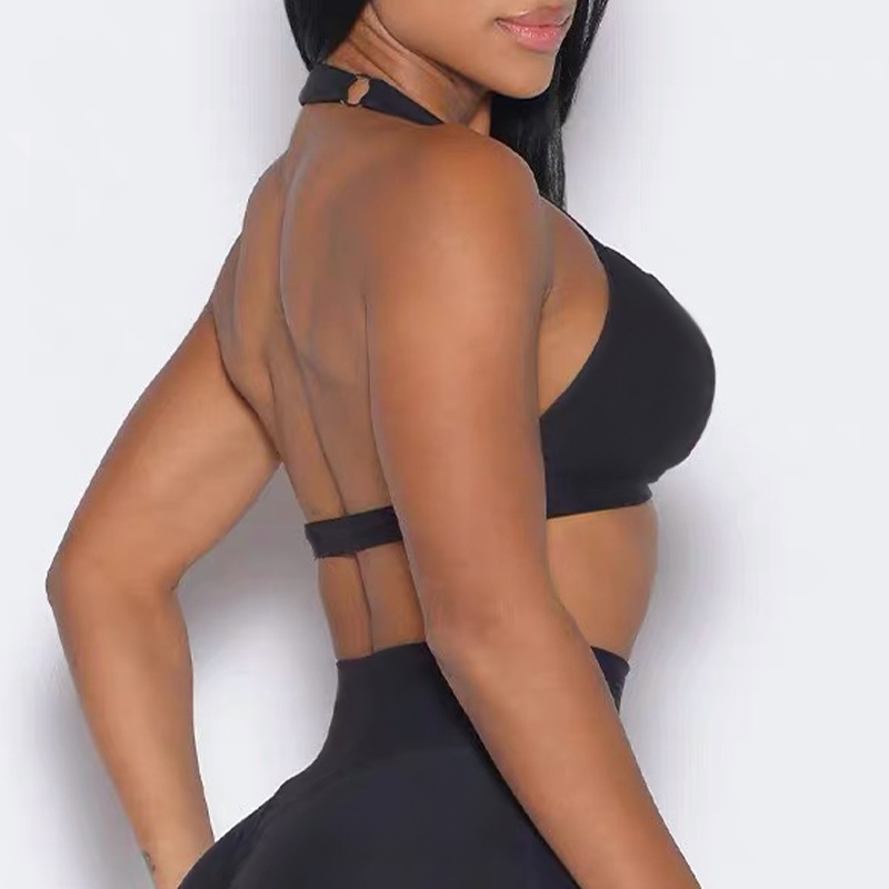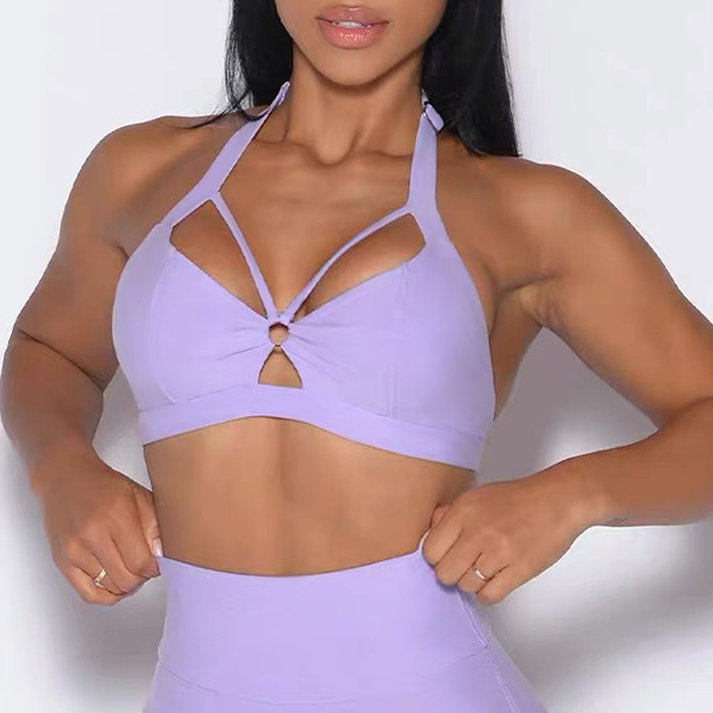 여성을 위한 새로운 크로스보더 홀터넥 아름다운 등 요가 스포츠 브라, 속이 빈 속건성 가슴 패드, 단색 피트니스 스페셜 브라스토어 가기