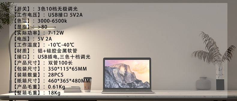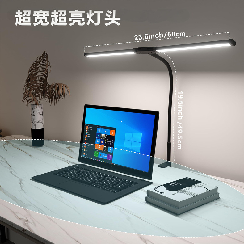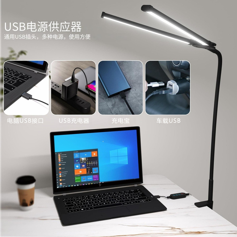 국경을 넘는 LED 눈 보호 책상 램프, 이중 헤드 구즈넥 접이식 클립 램프, 다기능 USB 데스크탑 독서 컴퓨터 눈 보호 램프