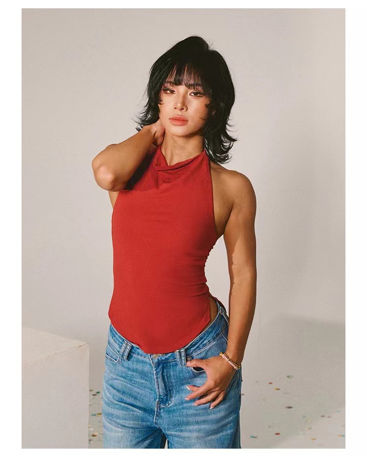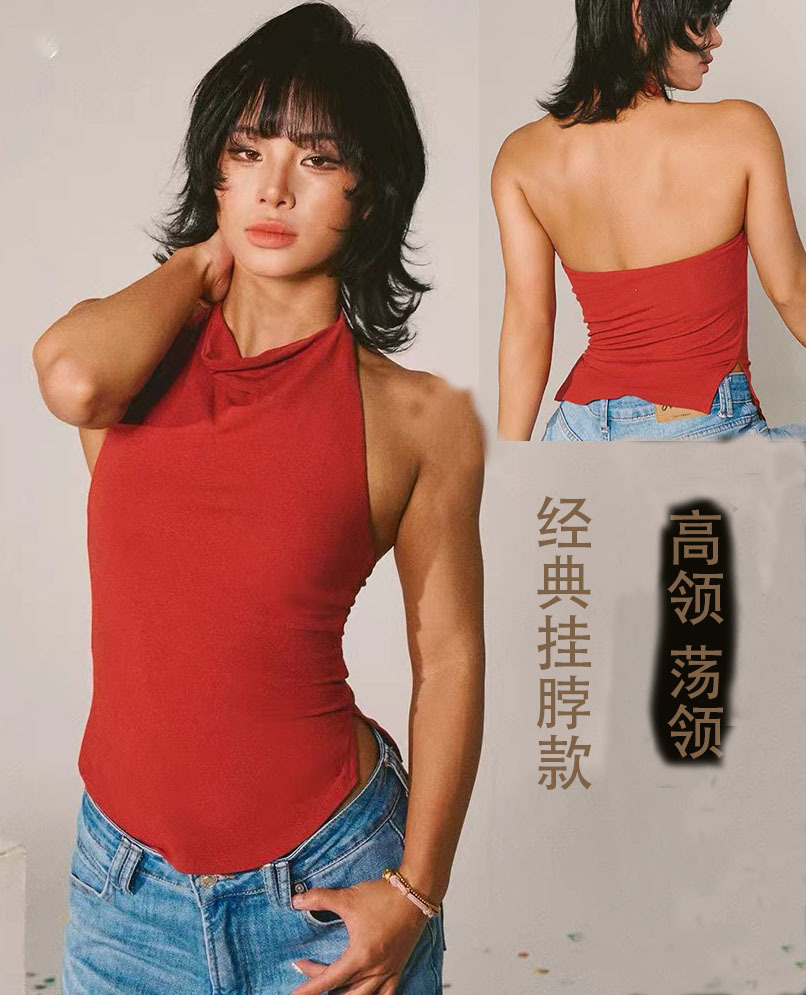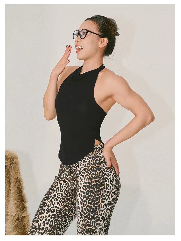 아마존 국경 간 요가 조끼 솔리드 컬러 스탠드 업 칼라 넥 조끼 섹시한 백리스 러닝 피트니스 착용 여성용 탑