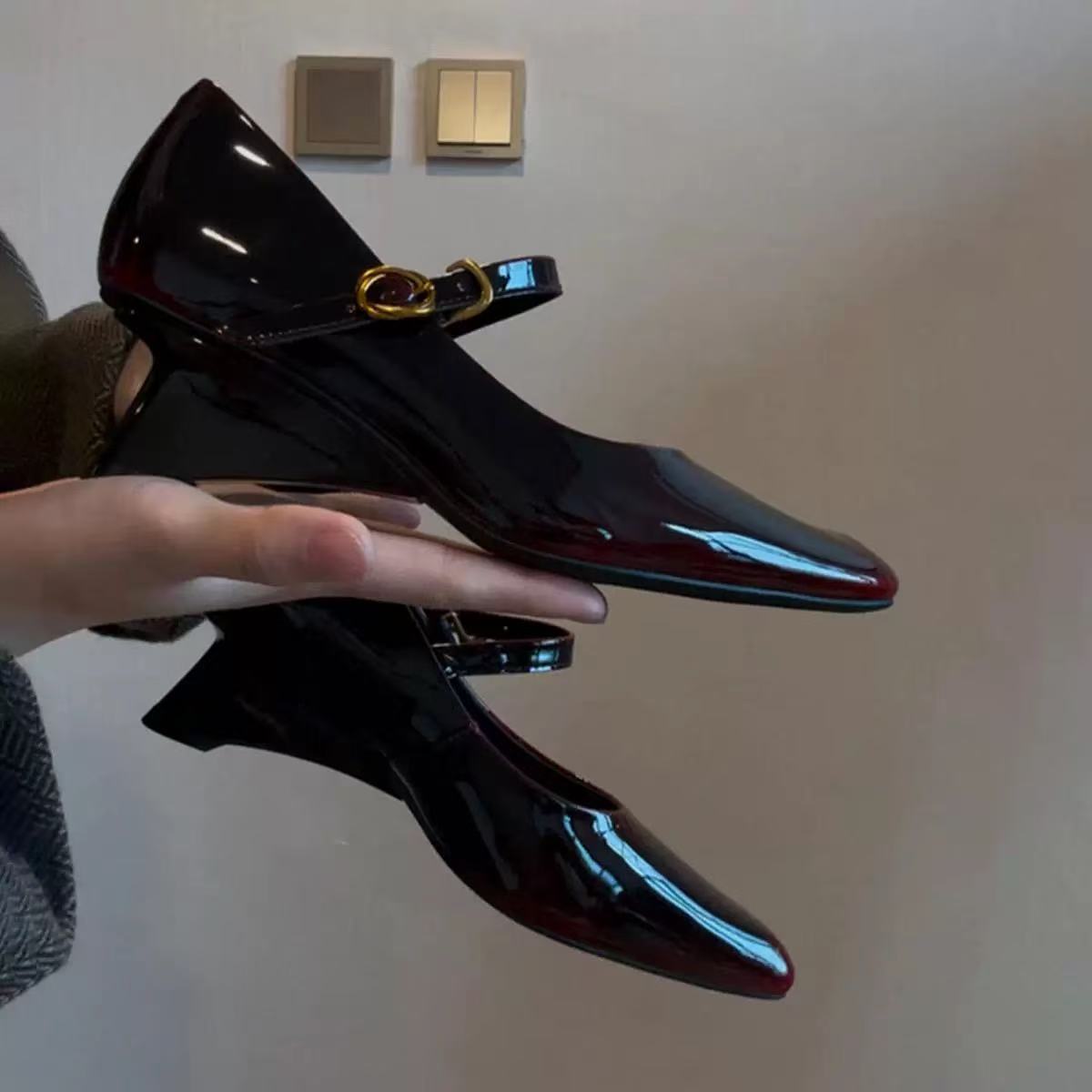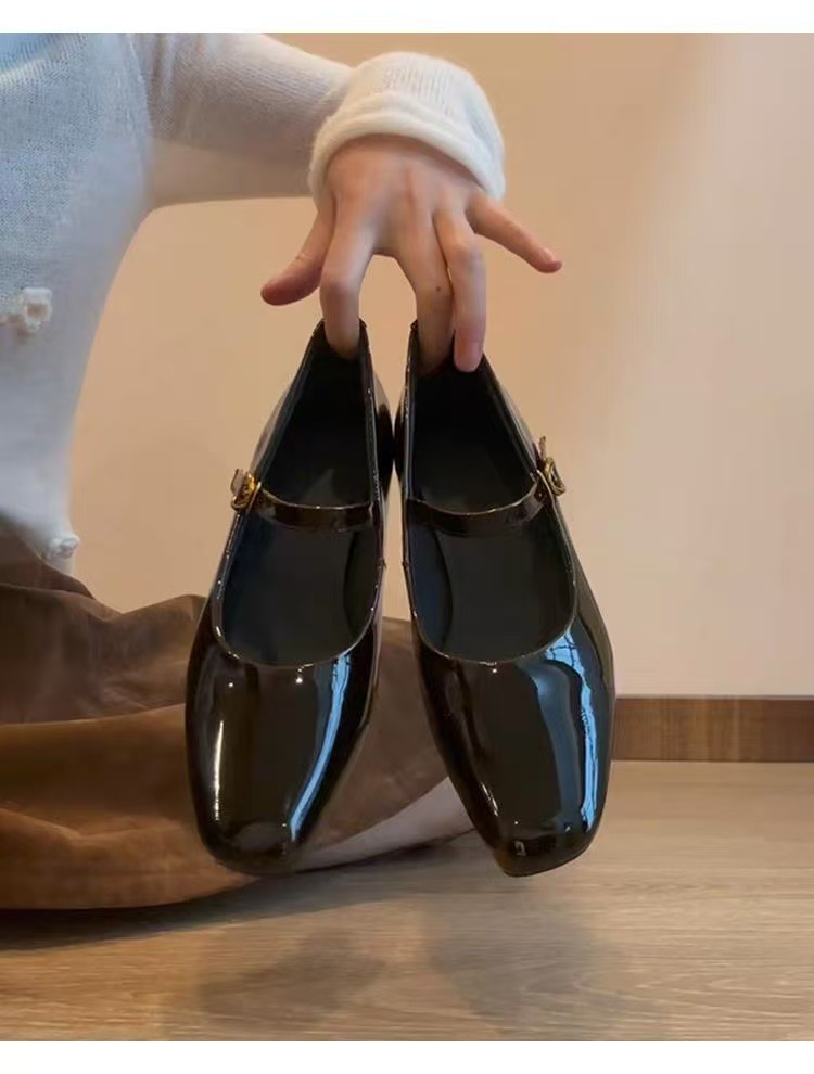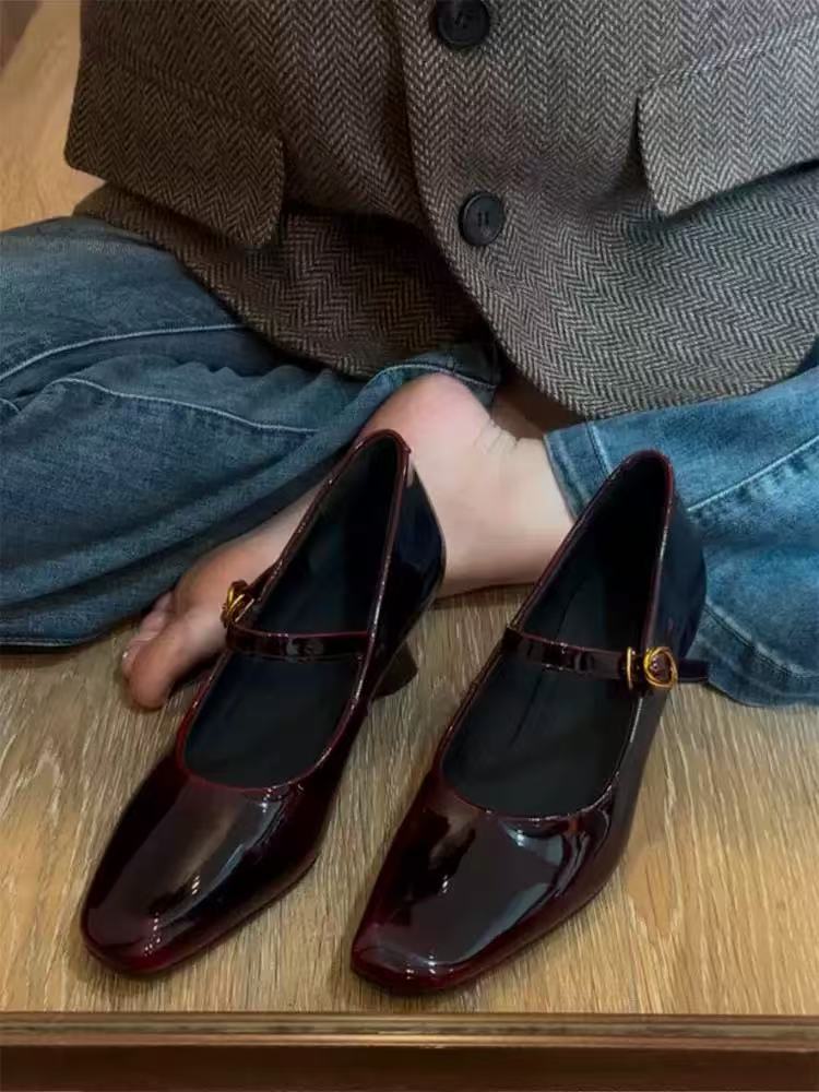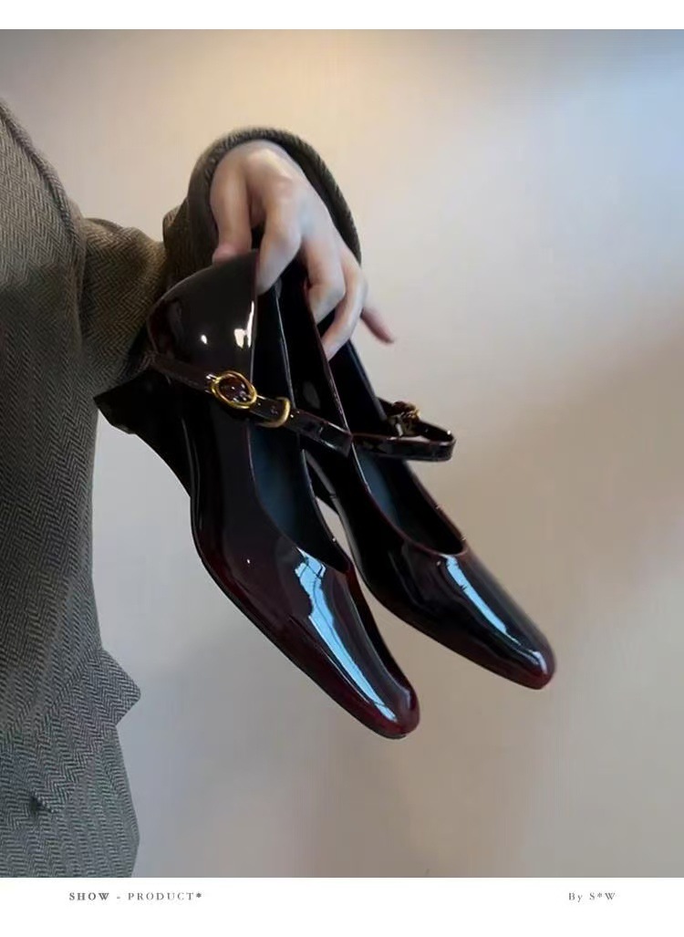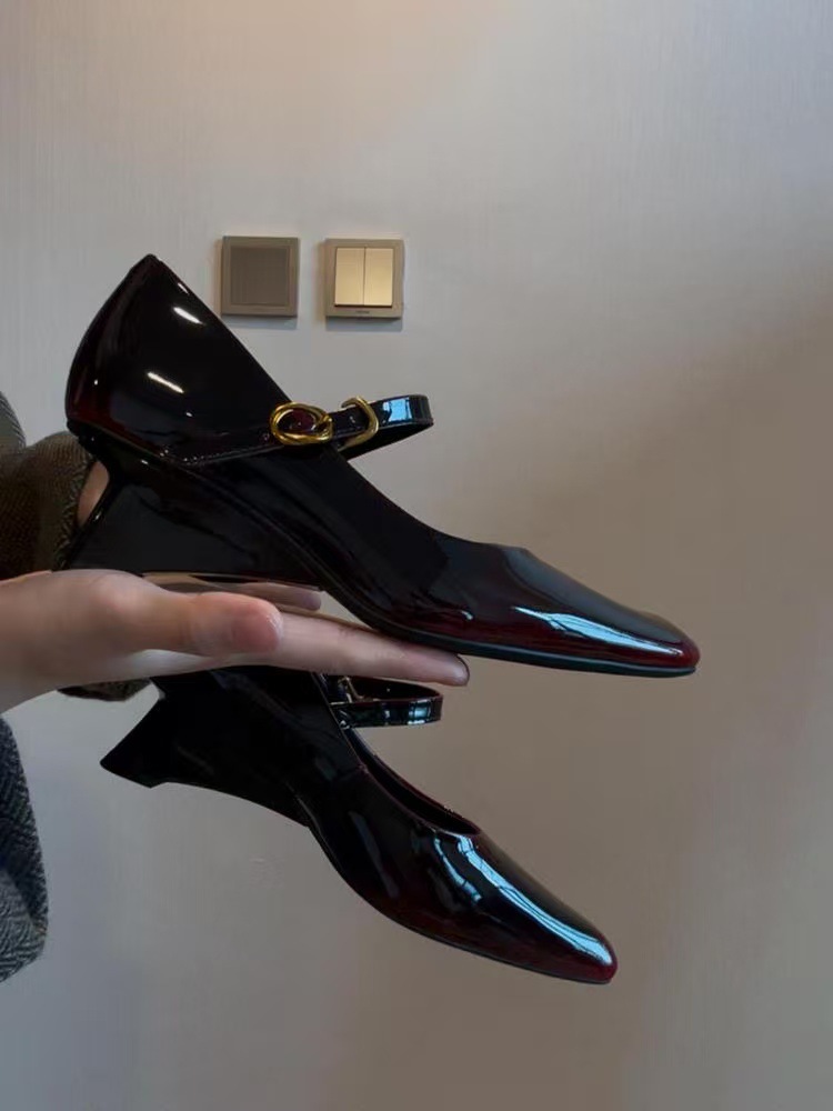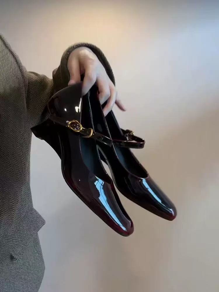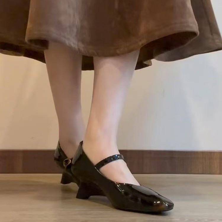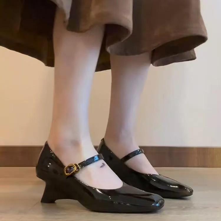 양가죽 버전 ~ 여성용 신형 앰버 메리제인 슈즈, 원라인 버클 웨지힐, 스퀘어토 펌프스, 천연가죽 작은 싱글슈즈스토어 가기