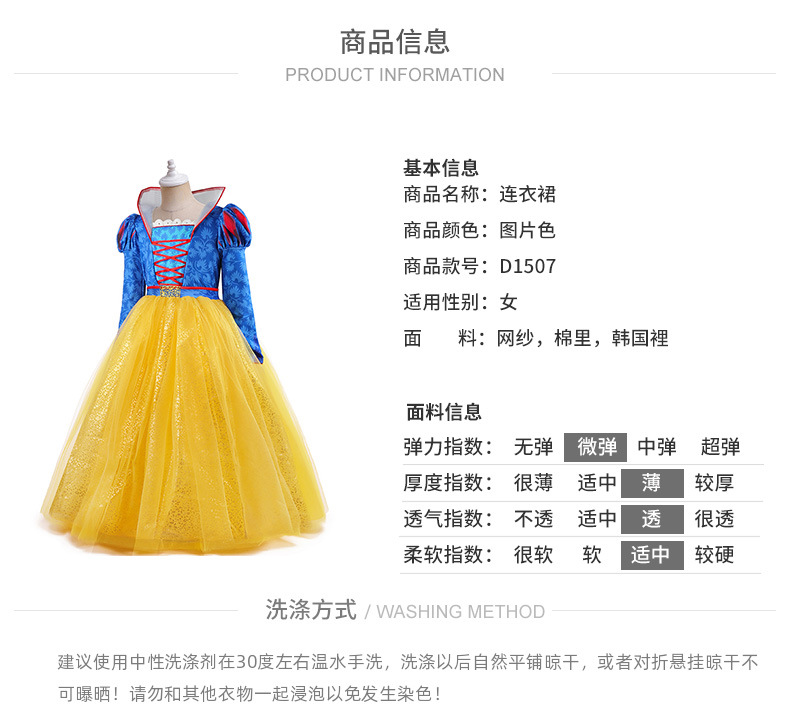 아마존 새로운 할로윈 코스프레 백설 공주 긴 원피스 어린이 원피스 무대 공연 원피스 원피스
