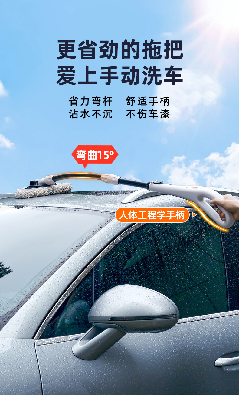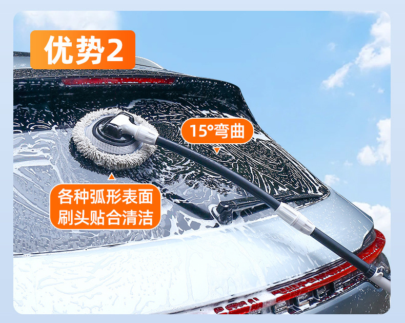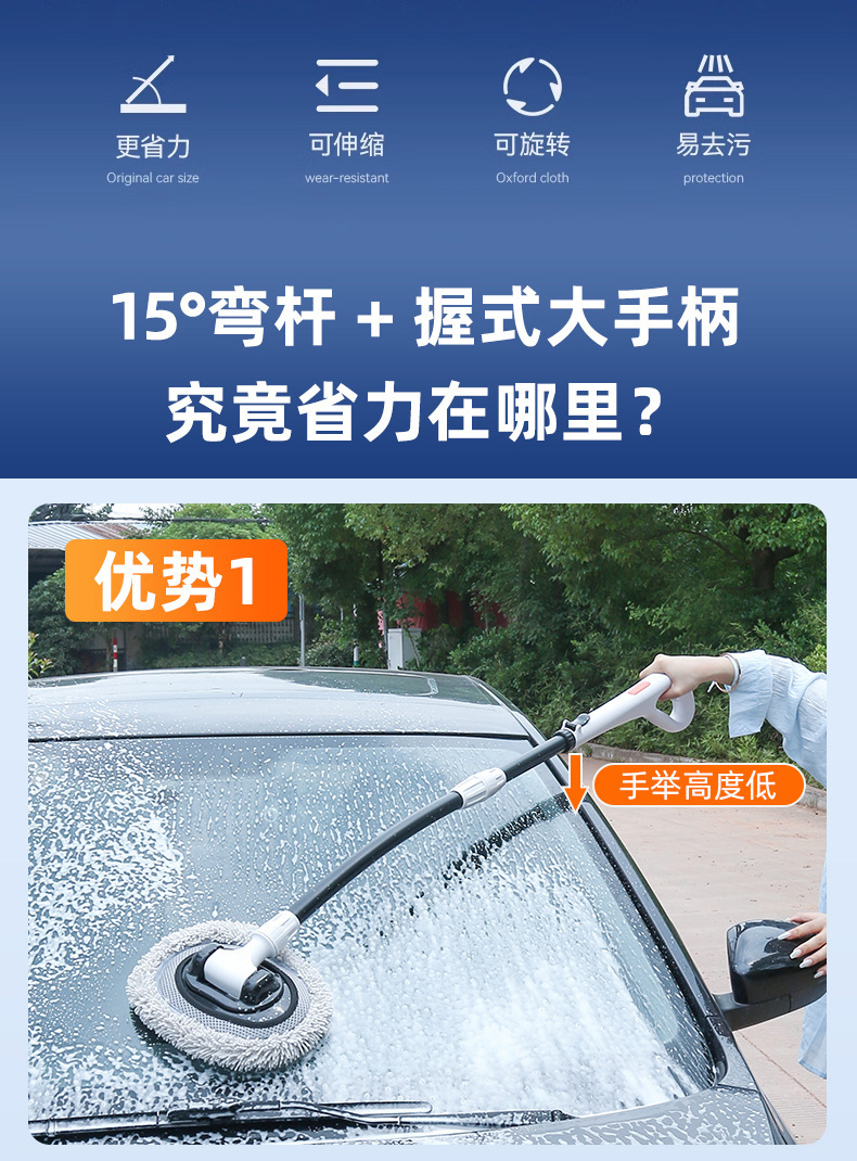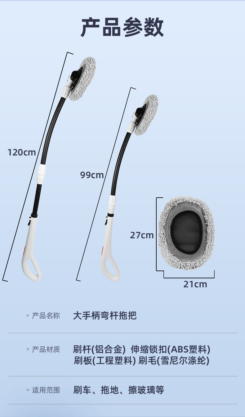 【产品名称】:大手柄弯管雪尼尔洗车刷拖