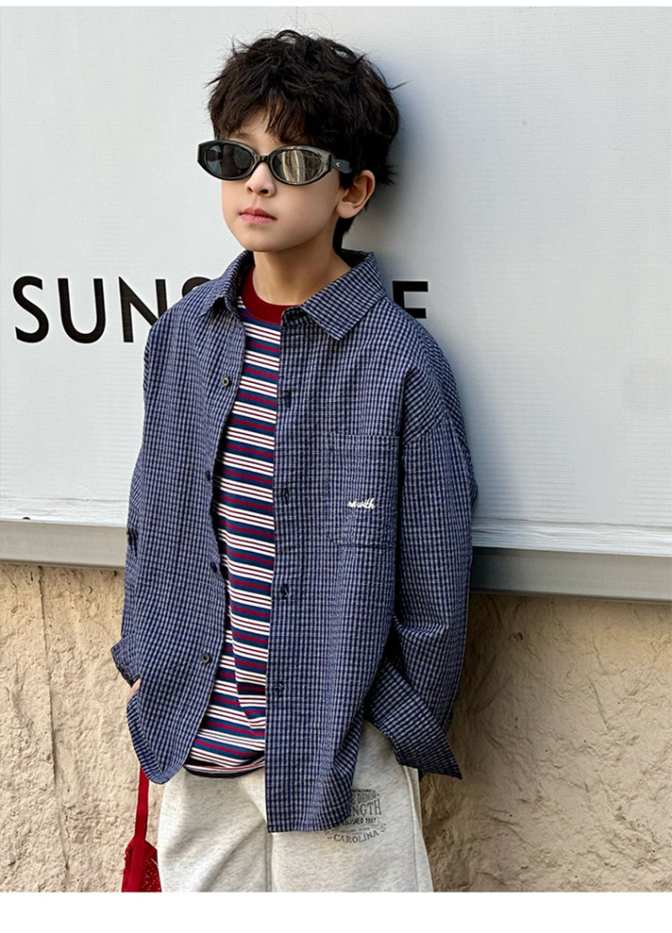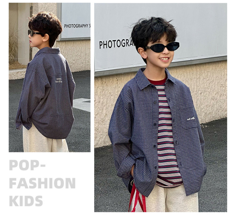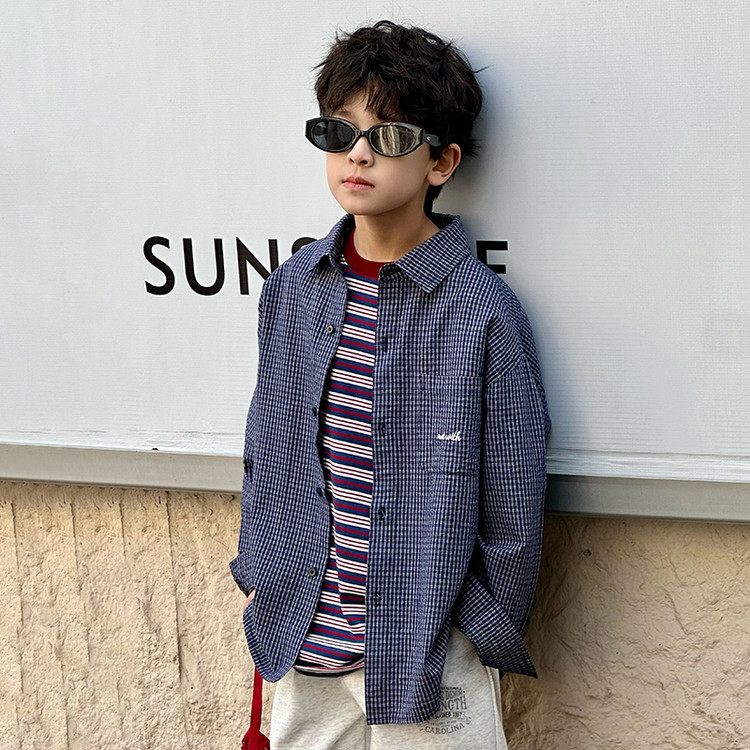 소년의 긴팔 셔츠 봄과 가을 2025 새로운 스타일 중대형 어린이 캐주얼 격자 무늬 셔츠 소년의 길거리 튀김 봄 탑