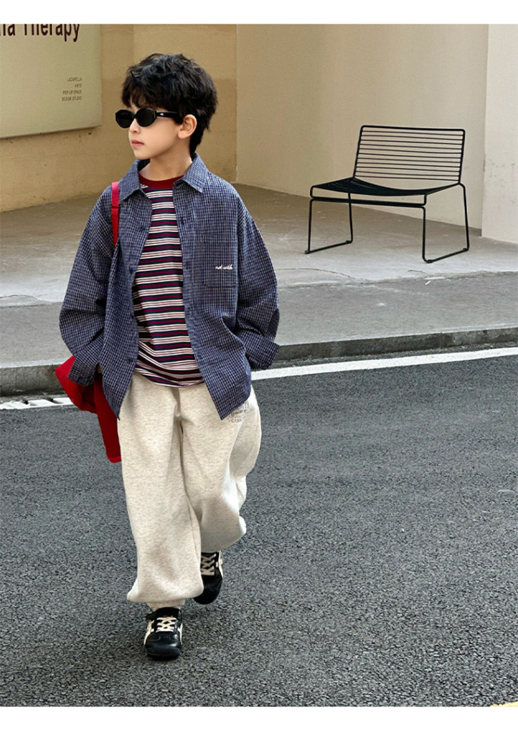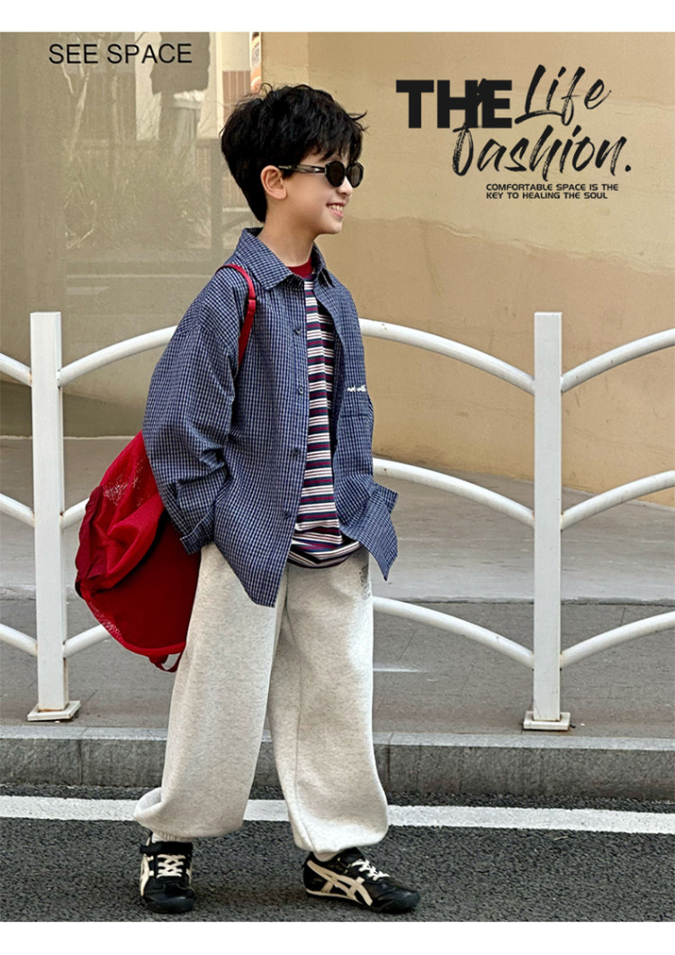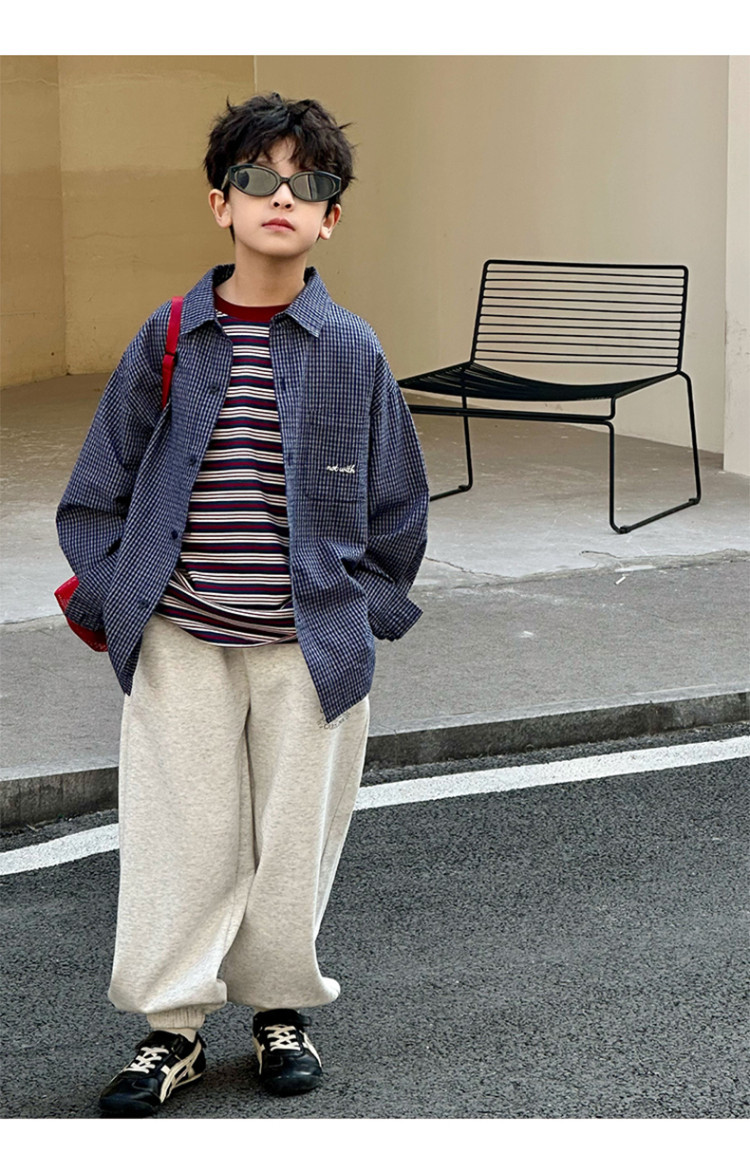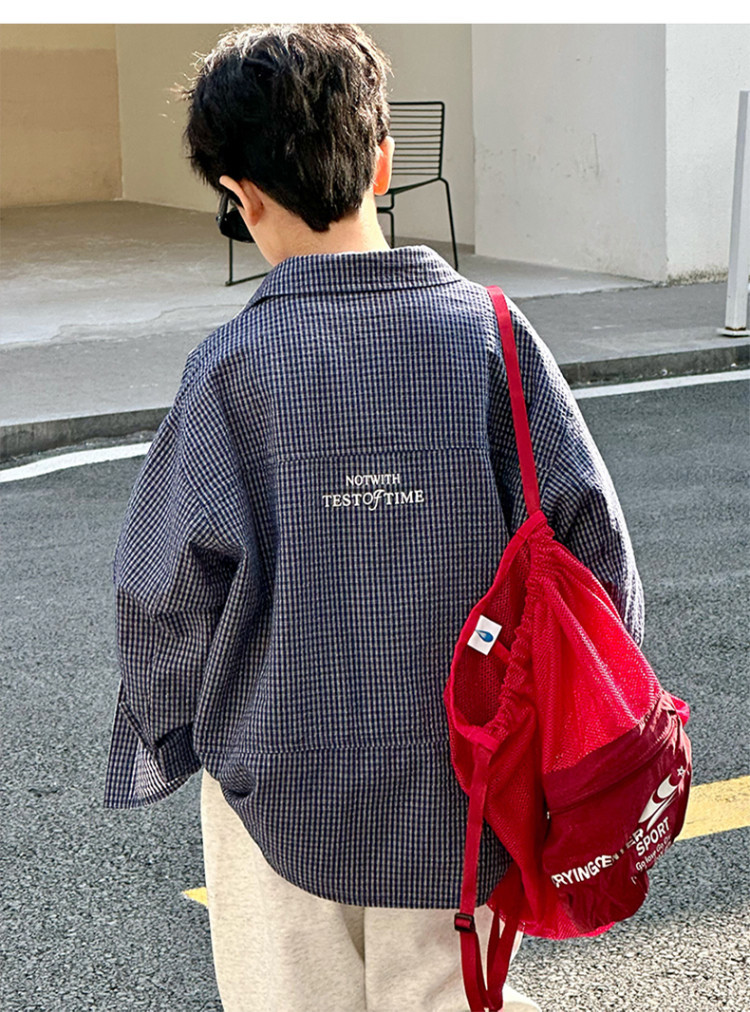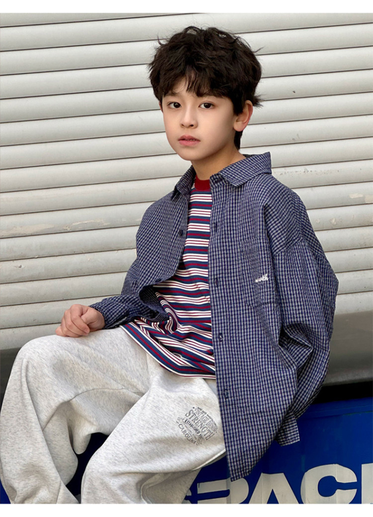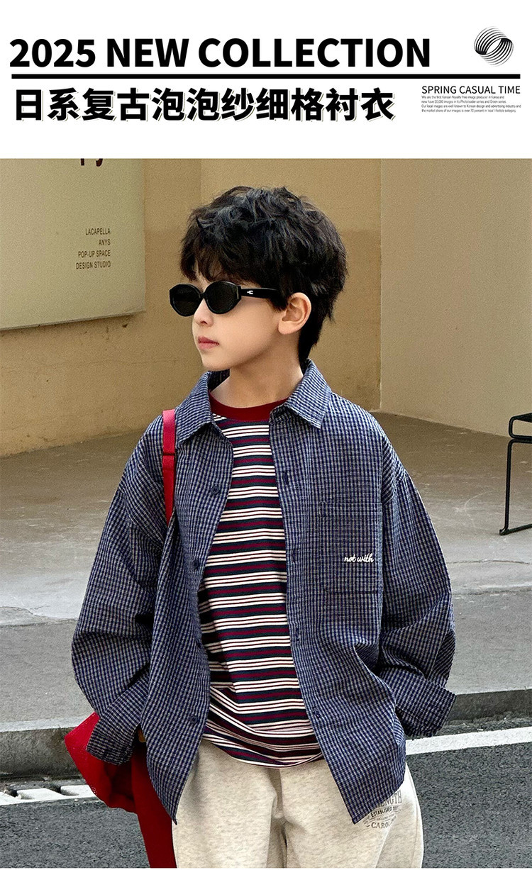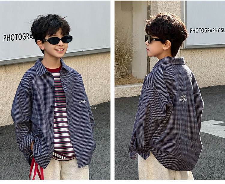 소년의 긴팔 셔츠 봄과 가을 2025 새로운 스타일 중대형 어린이 캐주얼 격자 무늬 셔츠 소년의 길거리 튀김 봄 탑스토어 가기