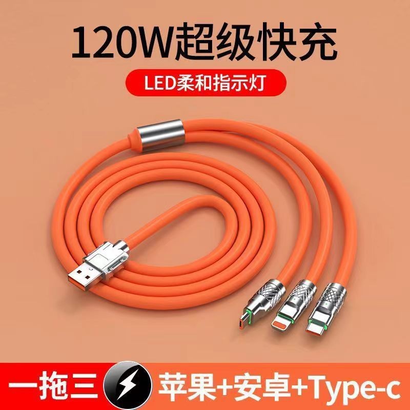 3 대 1 고속 충전 데이터 라인 pd 고속 충전 라인 120w 충전 라인 괴짜 소프트 실리콘 1 대 3 데이터 라인스토어 가기
