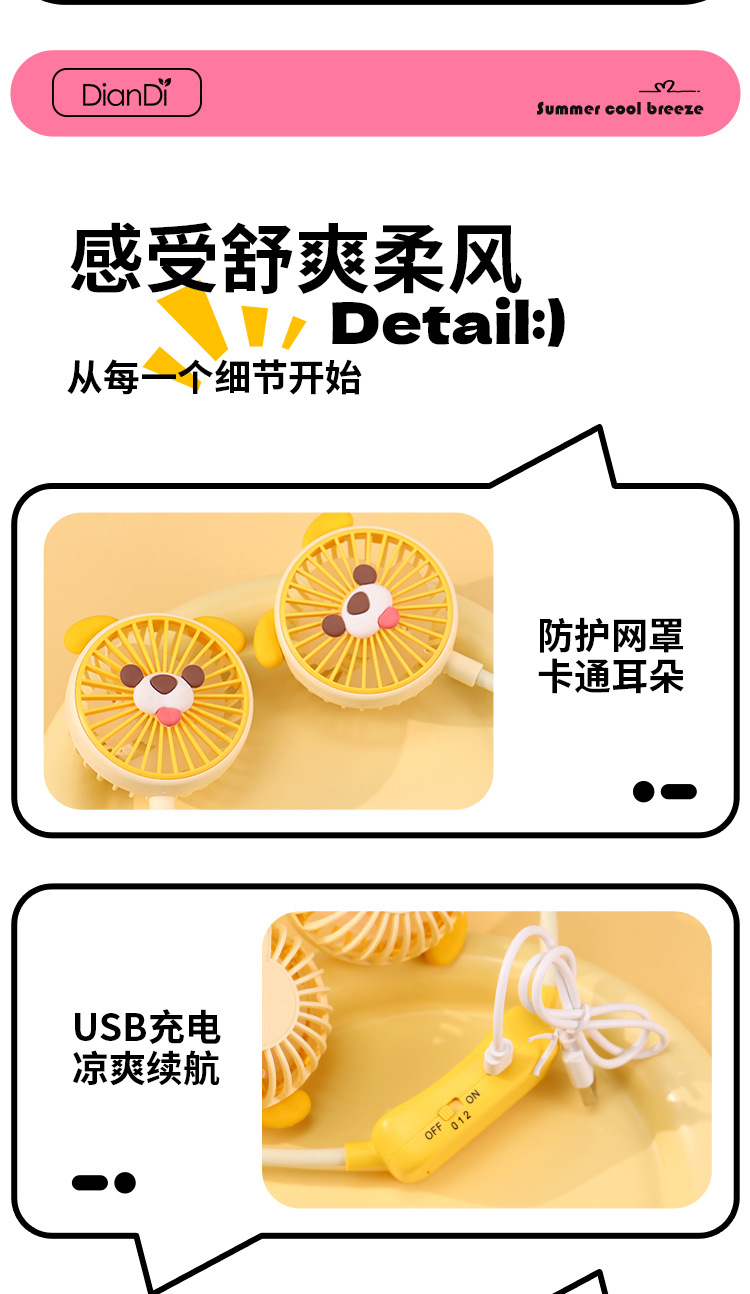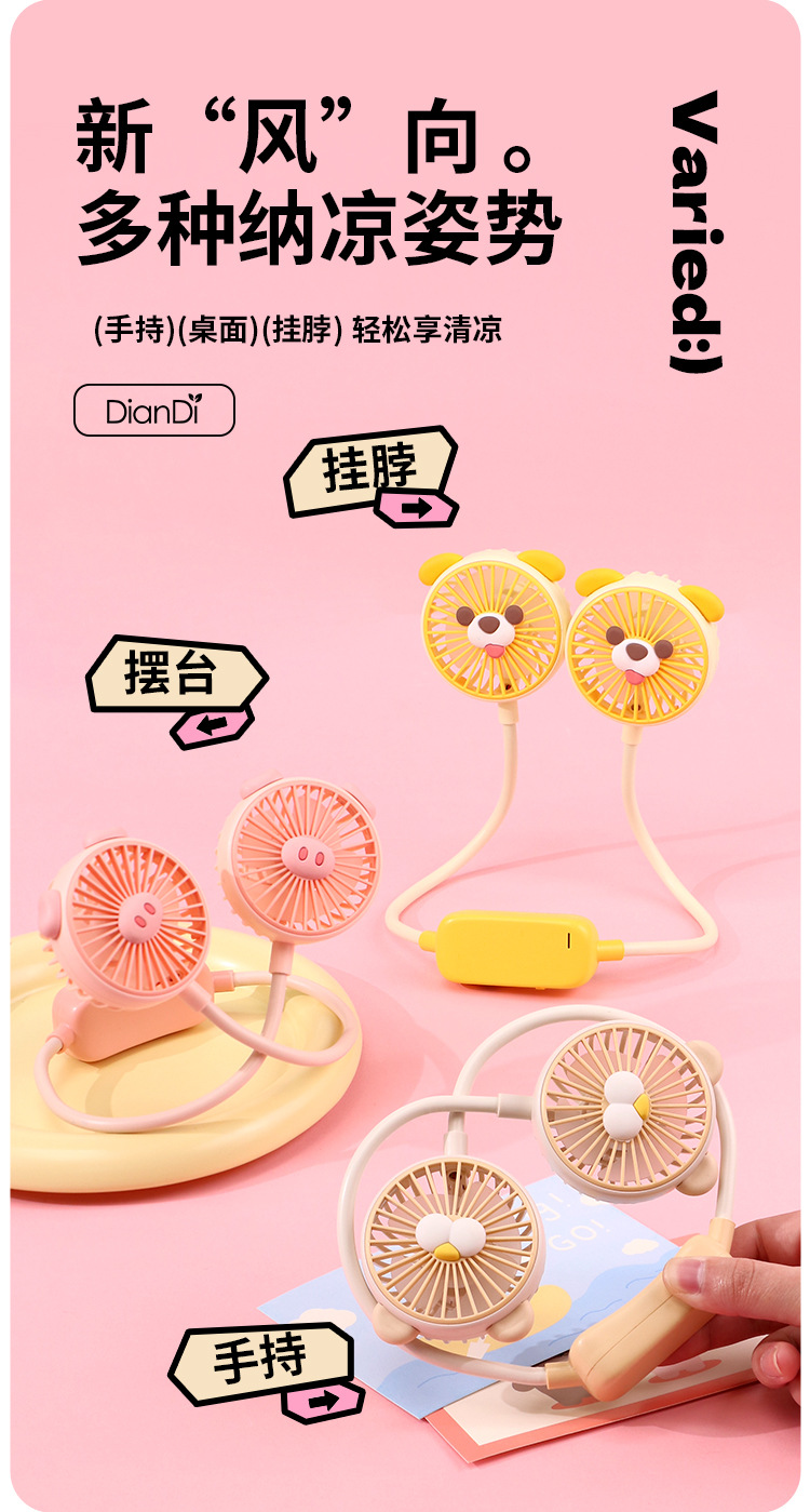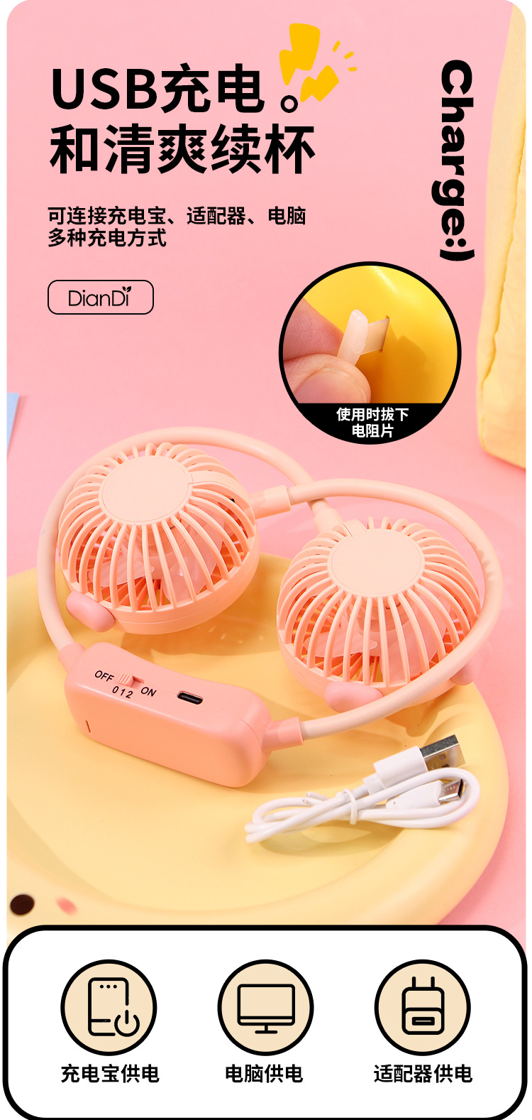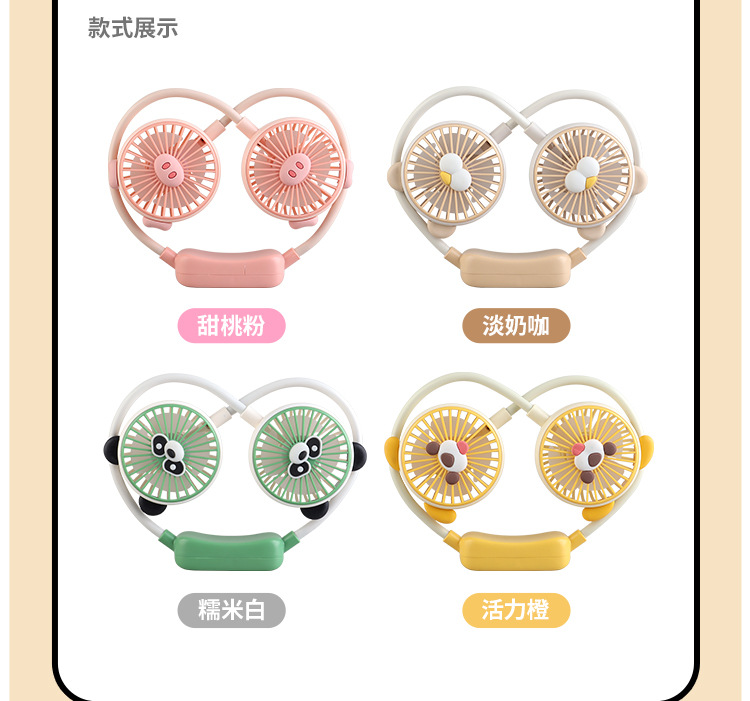 2025 새로운 만화 게으른 목 교수형 작은 팬 학생 휴대용 데스크탑 귀여운 팬 usb 충전 휴대용스토어 가기