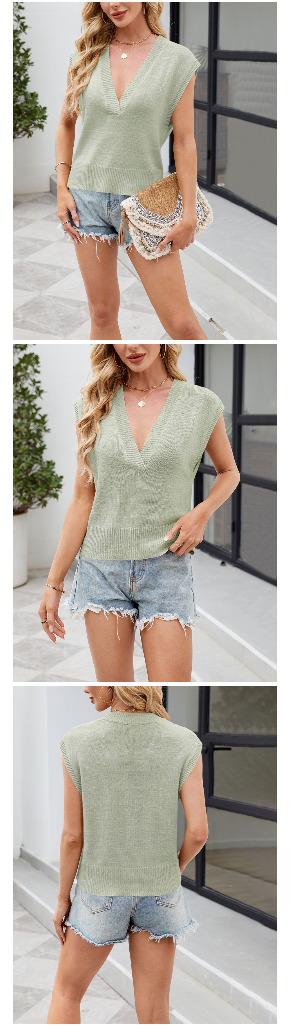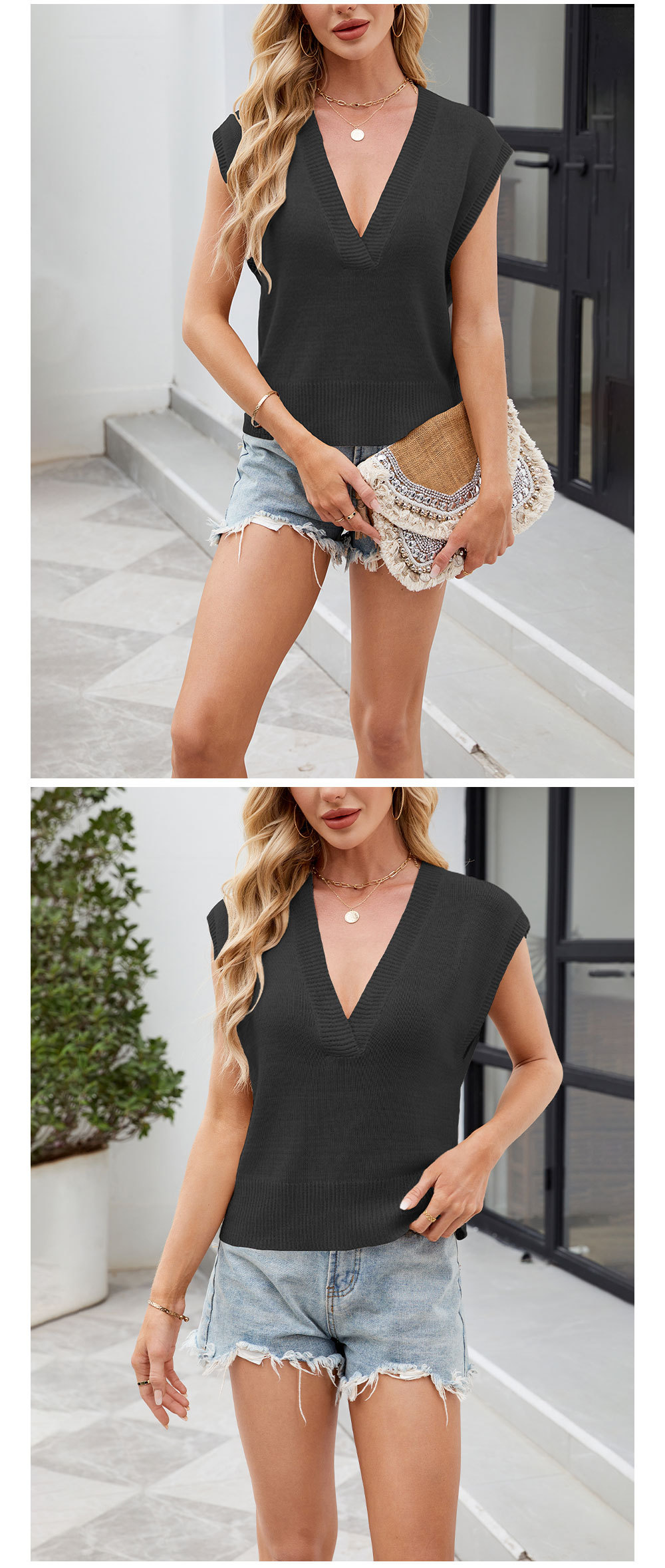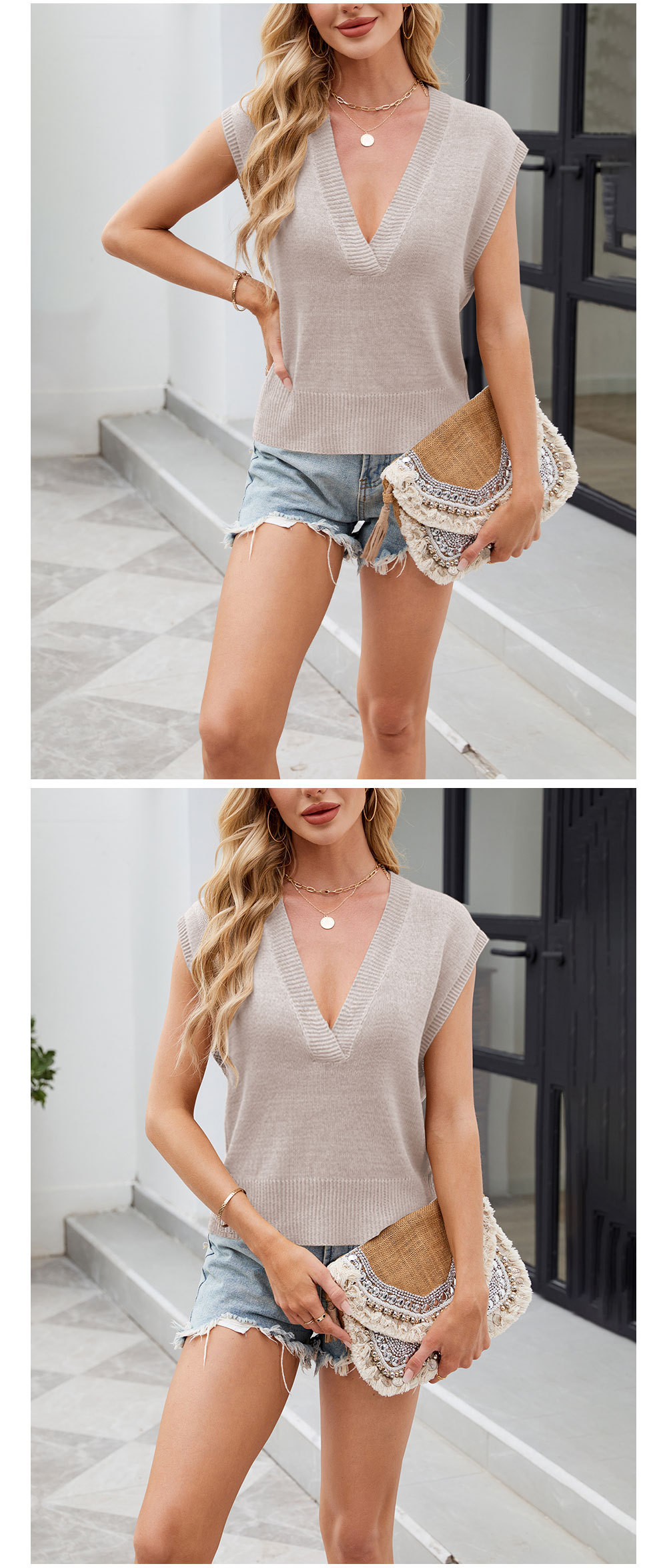 2025 새로운 여름 아마존 국경 핫 판매 유럽과 미국 여성 패션 캐주얼 V 넥 니트 솔리드 컬러 조끼스토어 가기