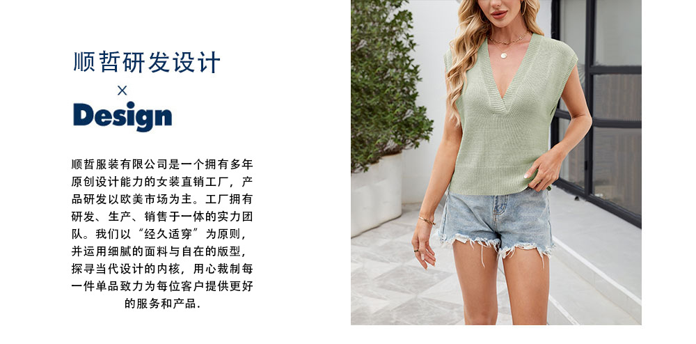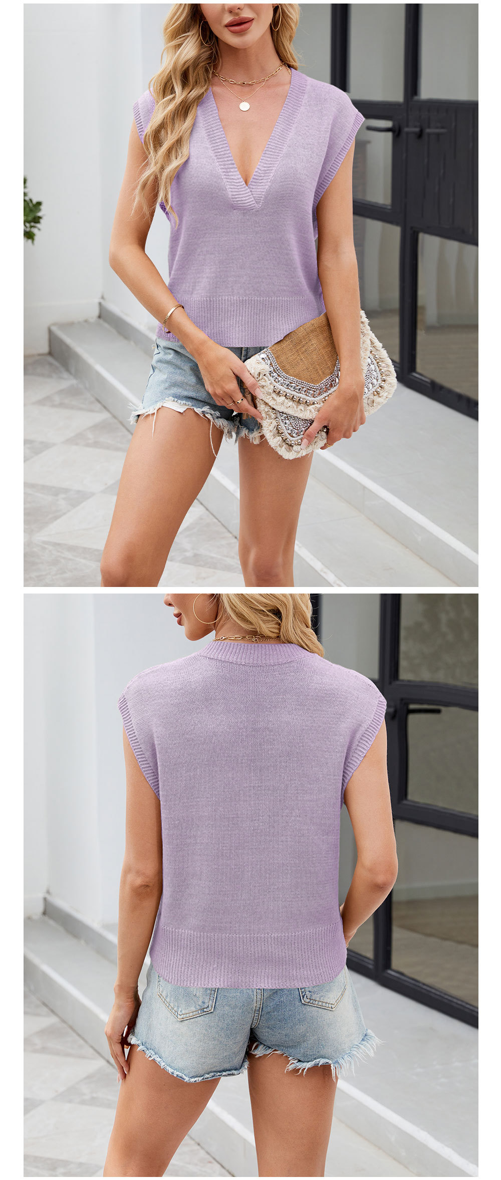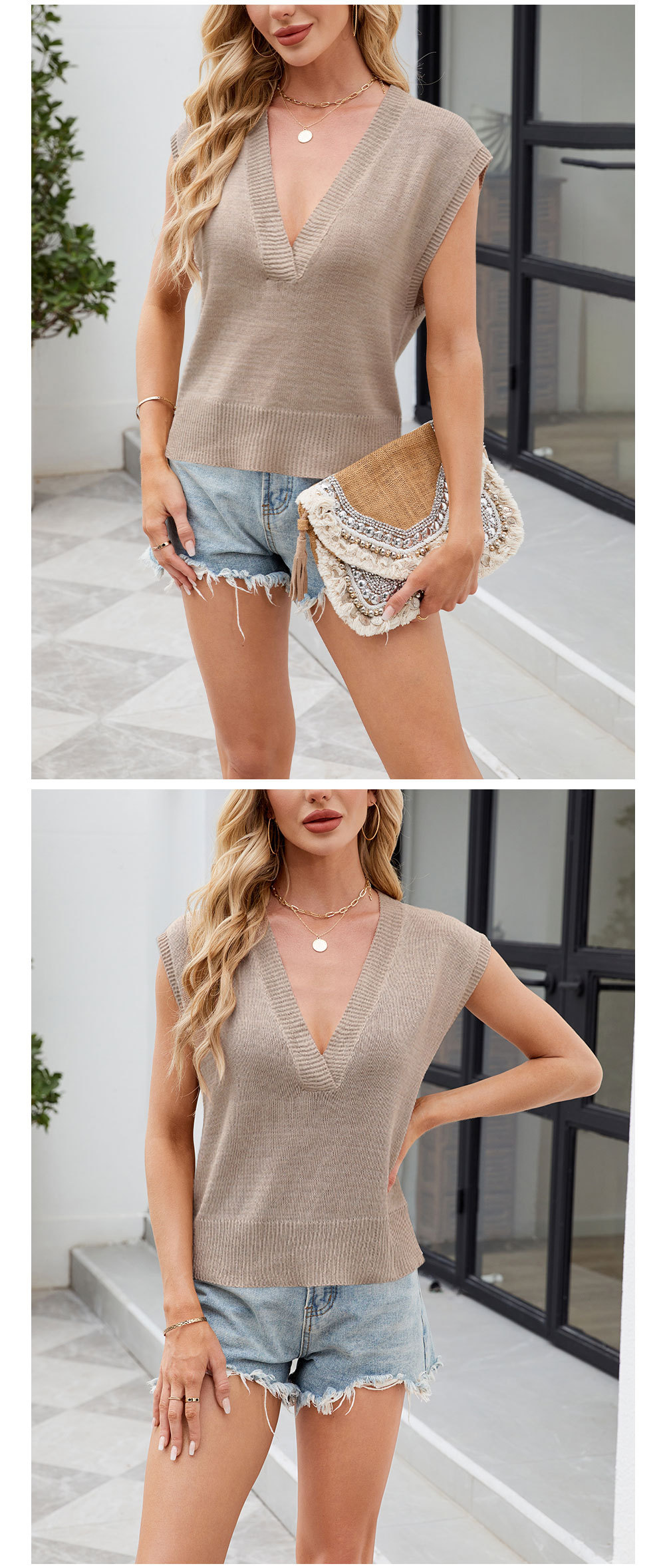 2025 새로운 여름 아마존 국경 핫 판매 유럽과 미국 여성 패션 캐주얼 V 넥 니트 솔리드 컬러 조끼스토어 가기