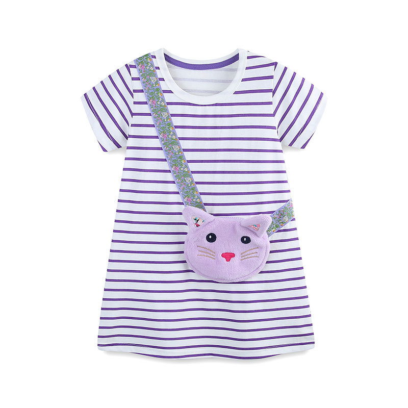 26 여름 신상 아동 원피스 유럽풍 만화 고양이 가방 여자아이 공주 드레스 패션 스트라이프 아동복스토어 가기