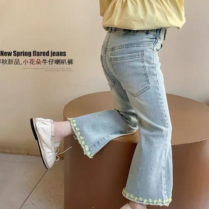소녀 바지 봄과 가을 2025 새로운 서양 스타일 유행 소녀의 봄 원피스 슬림 핏 어린이 봄 꽃 청바지스토어 가기
