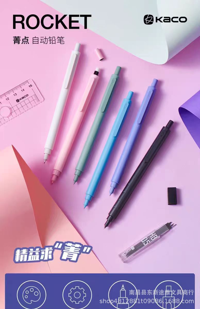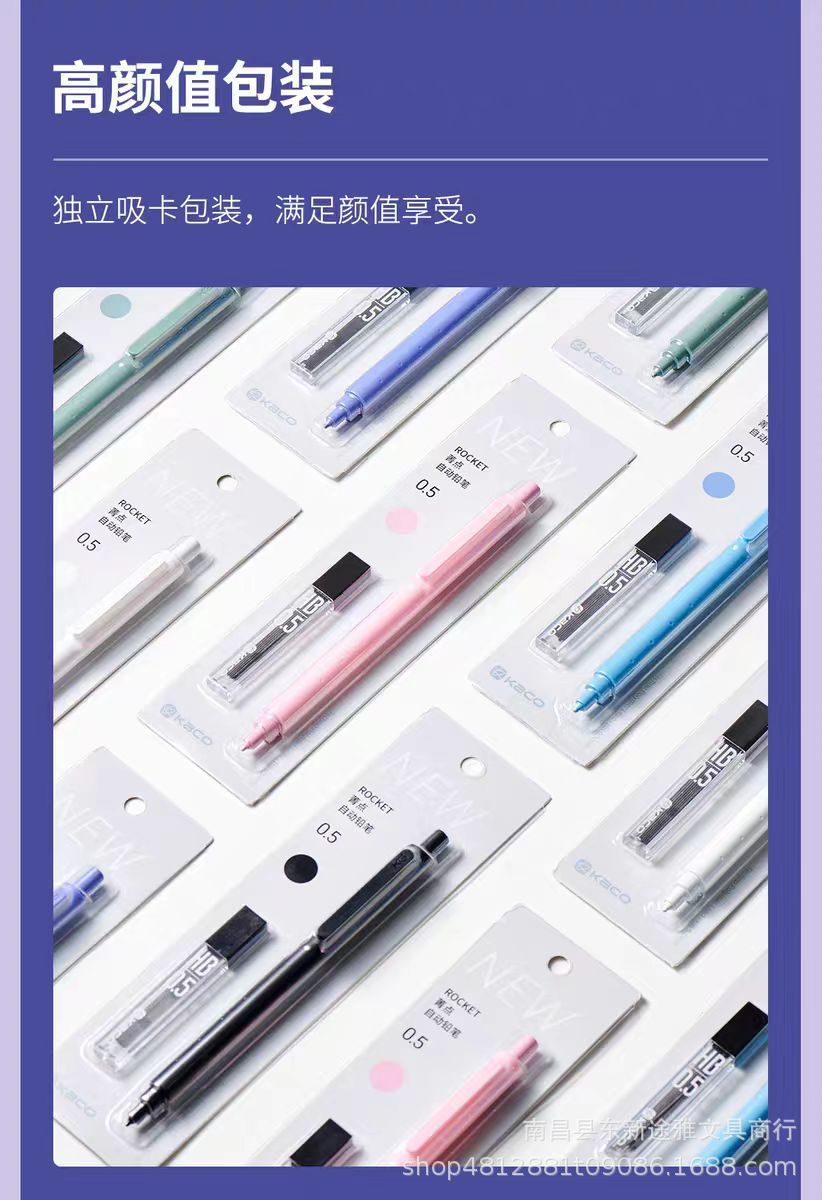 KACO 시아닌 포인트 자동 연필 세트 0.5 작은 신선한 귀여운 소녀 심장 HB 리드 흡입 카드 팩스토어 가기