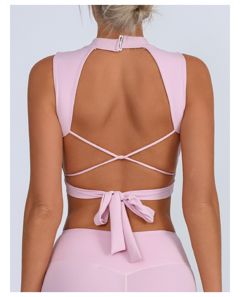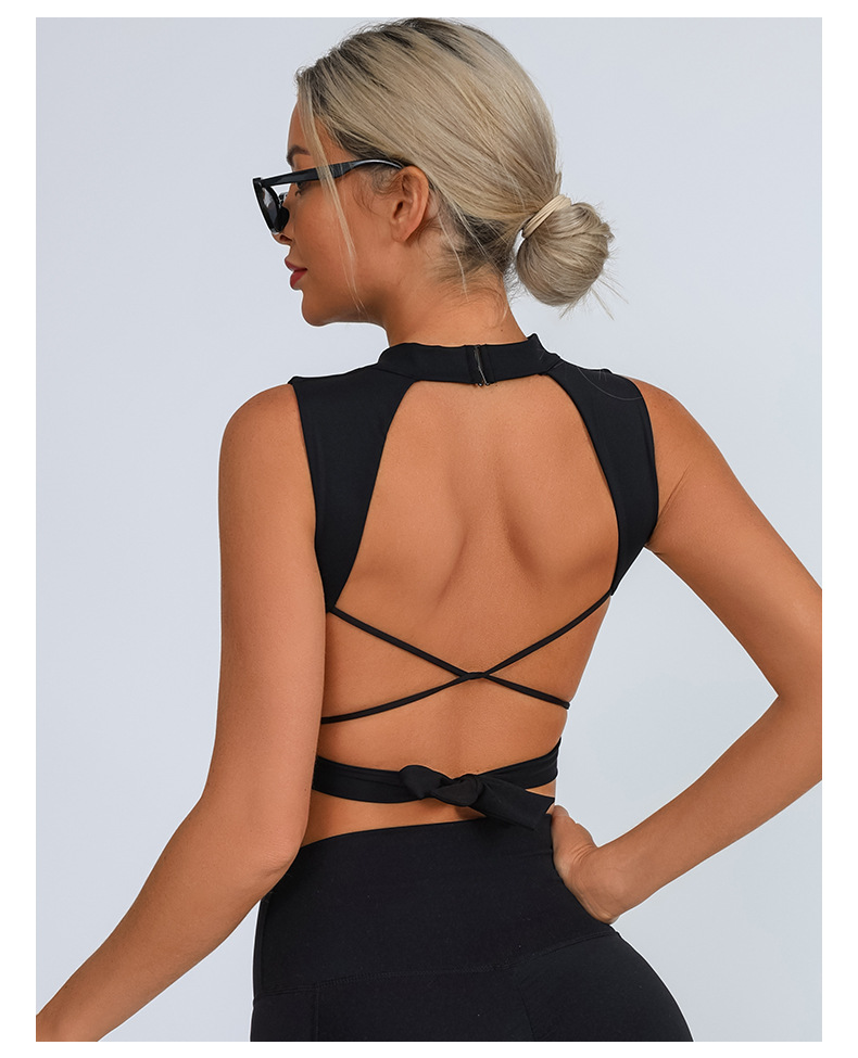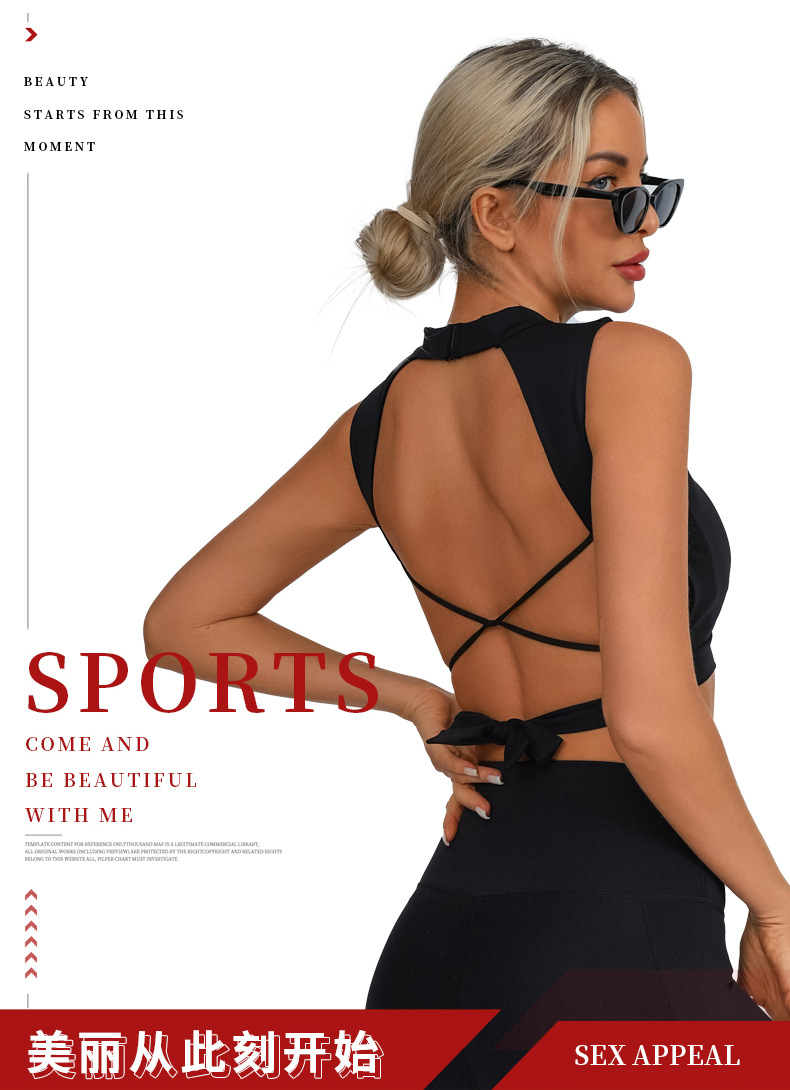 대외 무역 국경 간 유럽과 미국의 스포츠 피트니스 조끼 여성용 누드 속건성 아름다운 등 가슴 패드 요가 트레이닝 레이스 업 탑