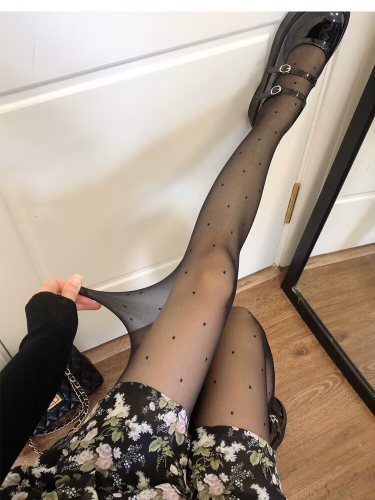플러스 사이즈 사랑 폴카 닷 화이트 실크 스타킹 여성의 봄과 여름 JK 스위트 보우 로리타 팬티 스타킹 폴카 닷 블랙 실크 스타킹스토어 가기
