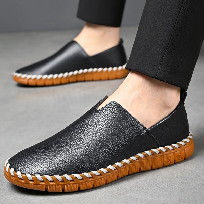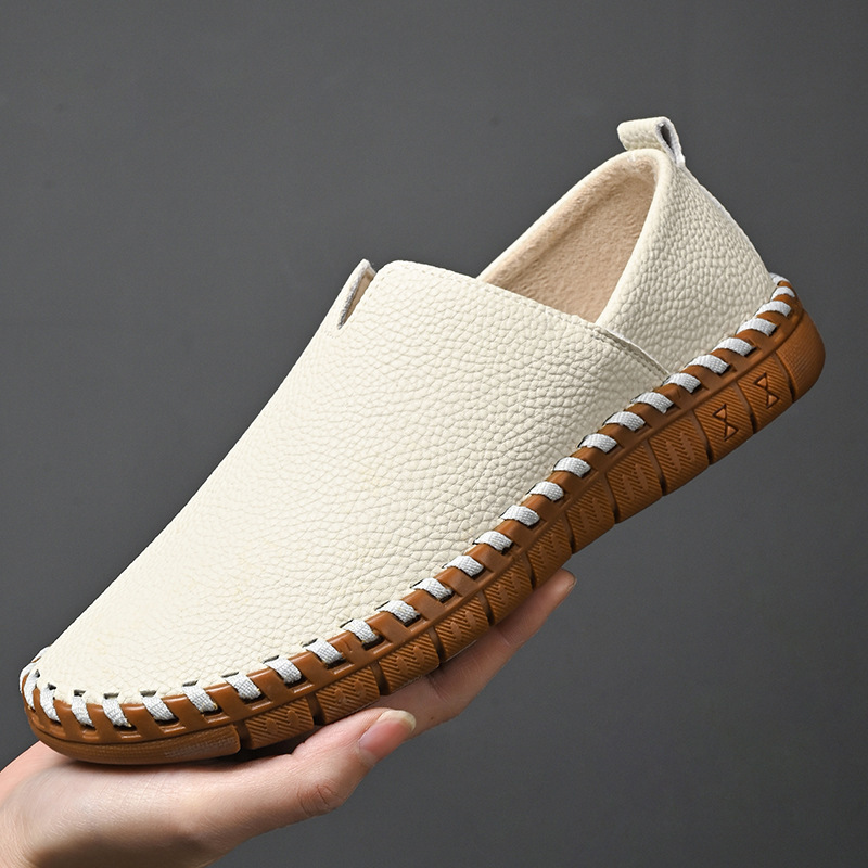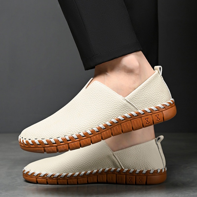 2024 남성 가죽 신발 정품 가죽 새 스타일 슬립 온 운전 남성 신발 소프트 단독 미끄럼 방지 비니 캐주얼 신발 슬립 온