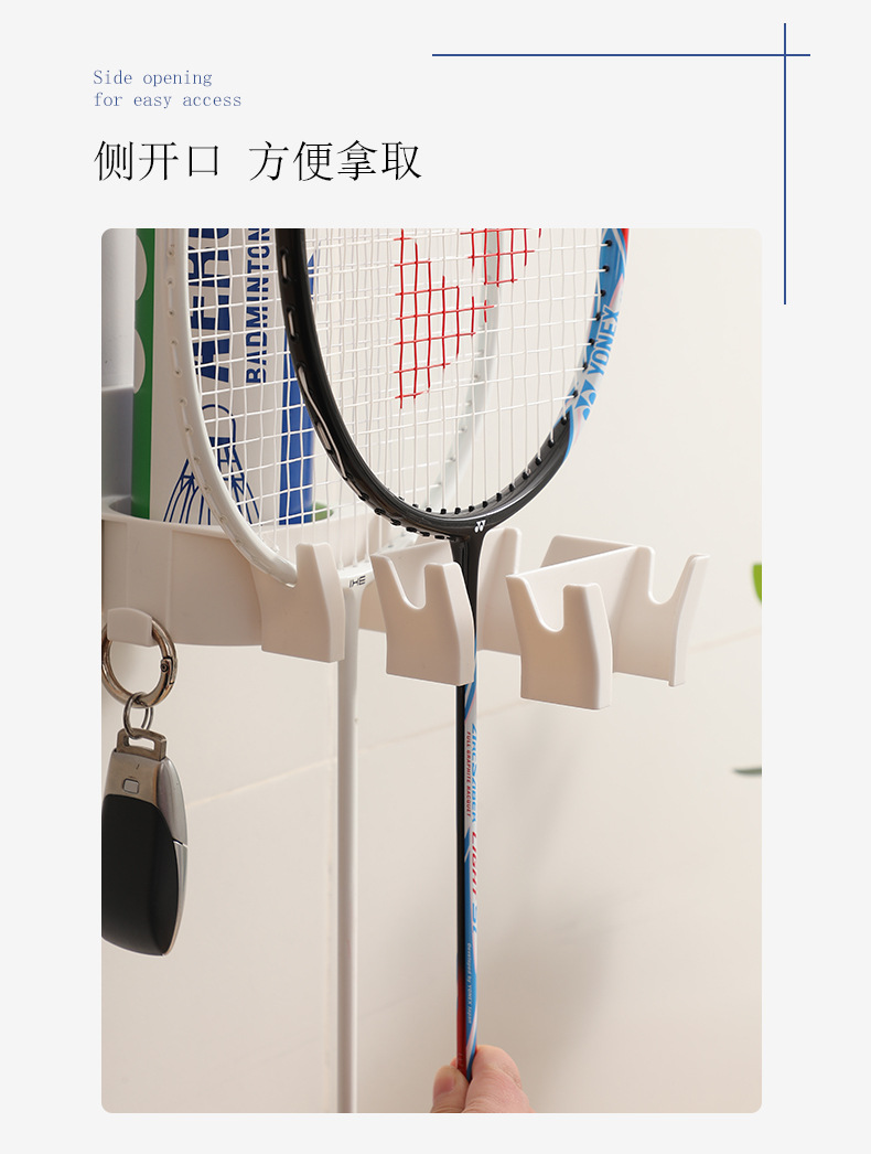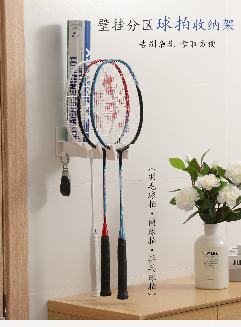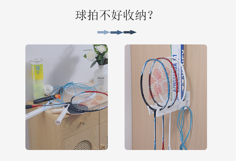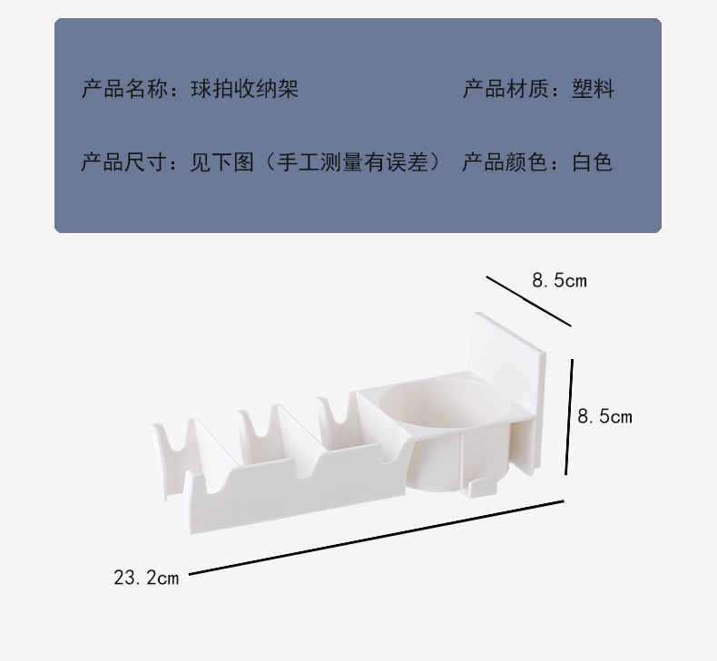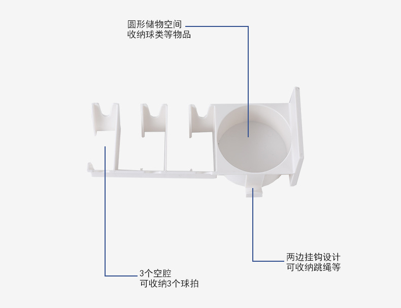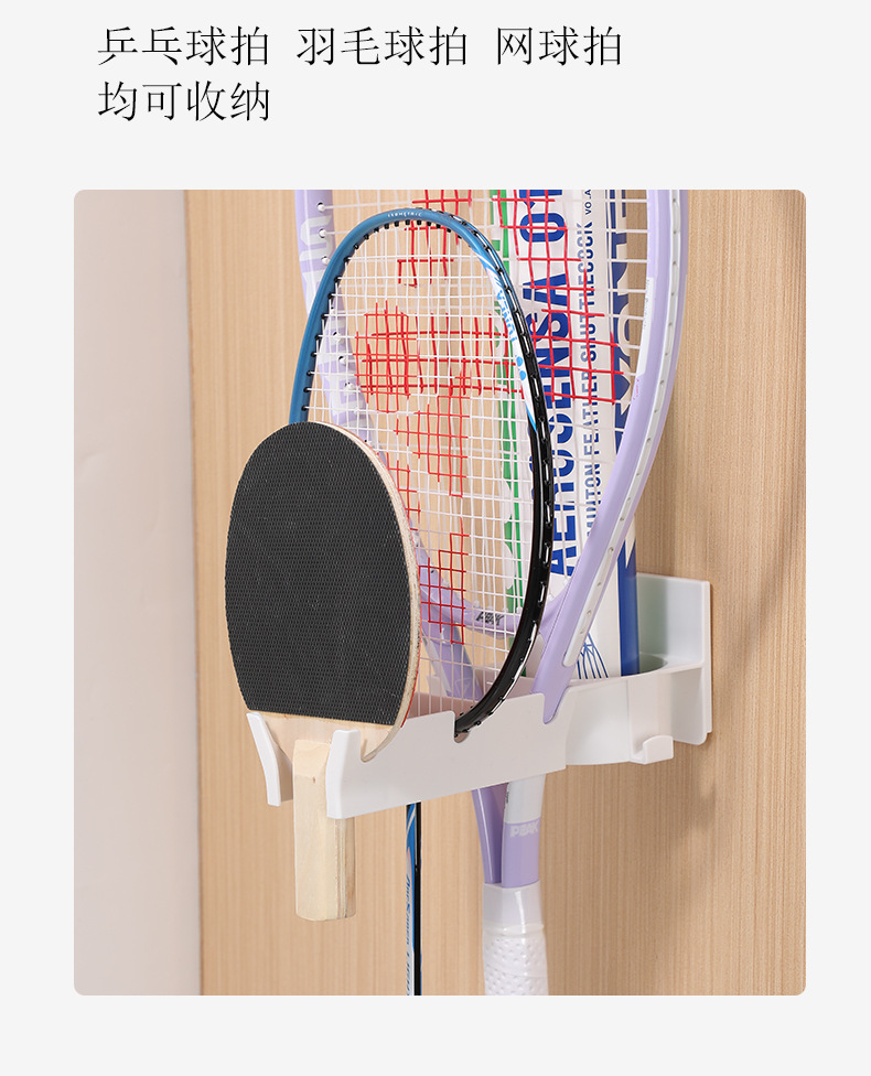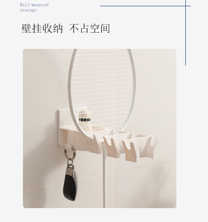 • 商品名称:三卡位无痕壁挂分区球拍收纳架--白色