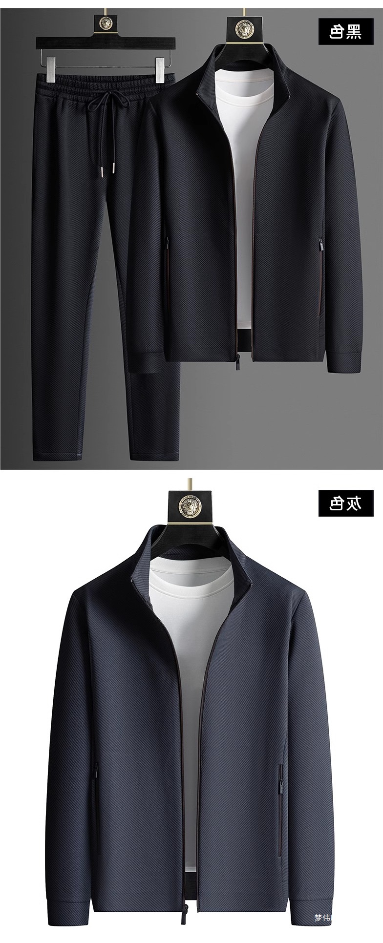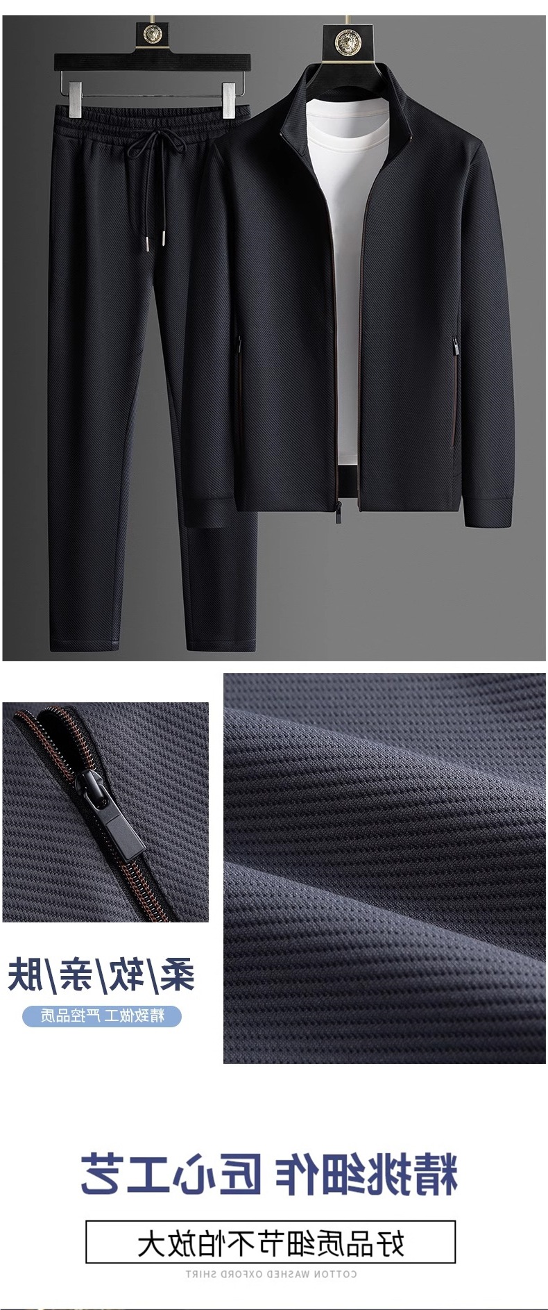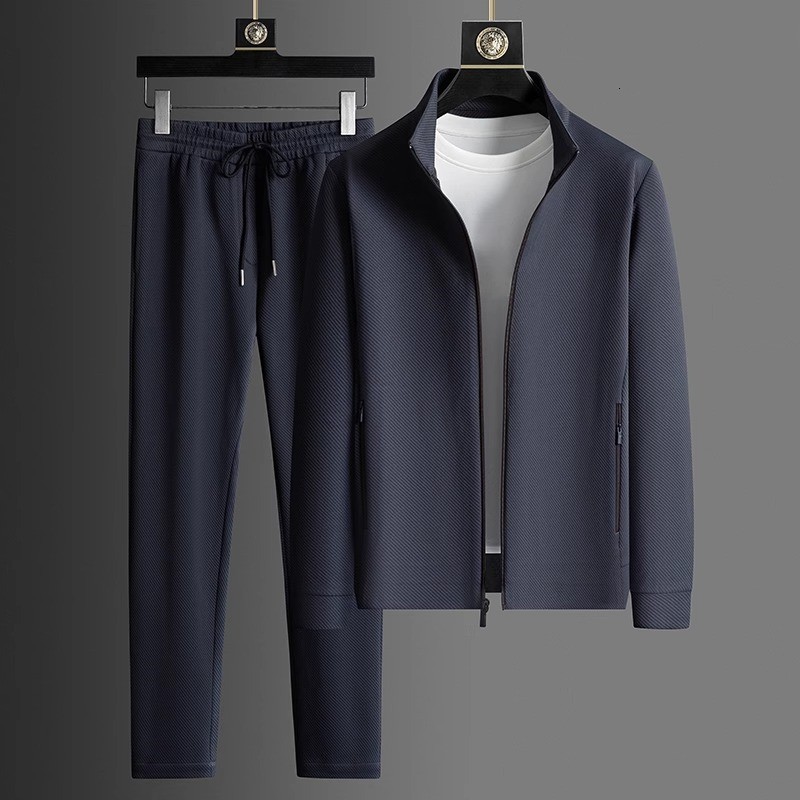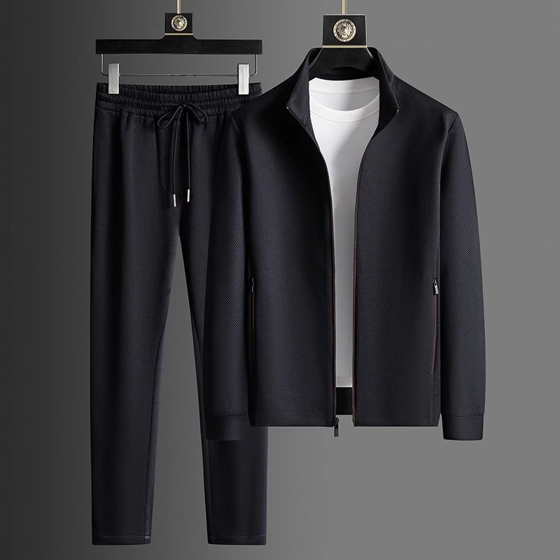 2025 라이트 럭셔리 캐주얼 정장 남성 스포츠웨어 투피스 세트 가을 중년 재킷 바지 블랙 세트 멀웨이스토어 가기
