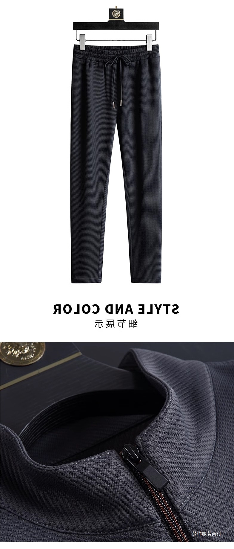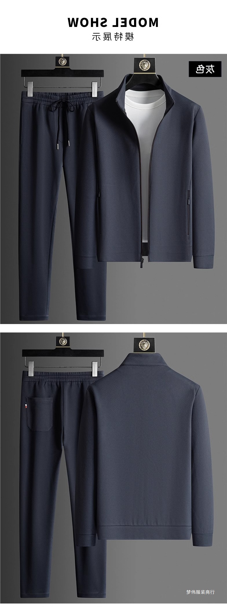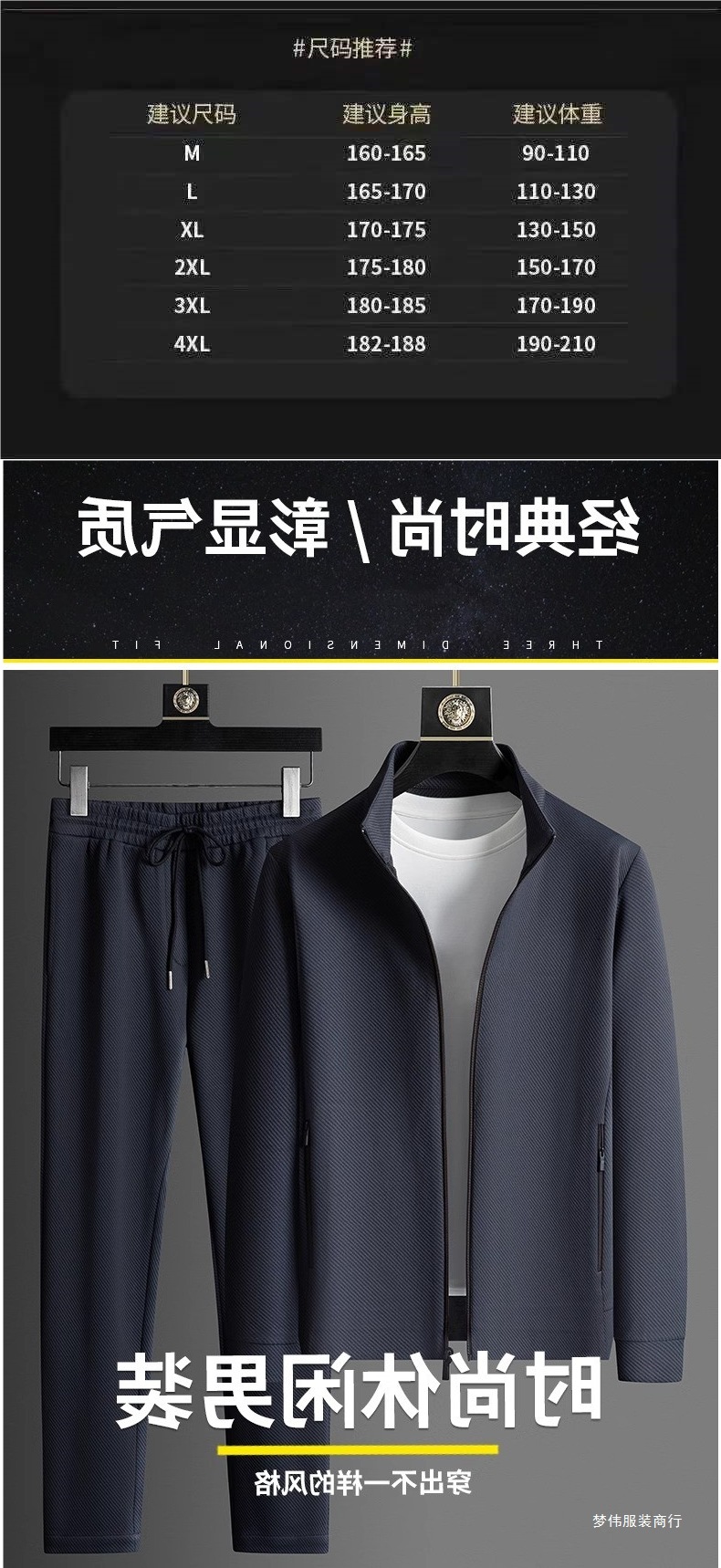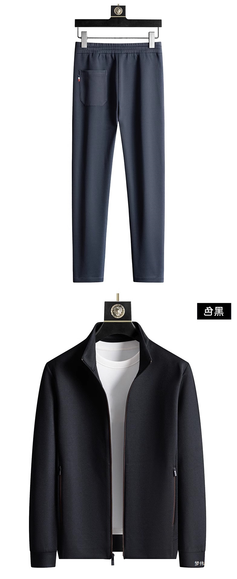 2025 라이트 럭셔리 캐주얼 정장 남성 스포츠웨어 투피스 세트 가을 중년 재킷 바지 블랙 세트 멀웨이스토어 가기