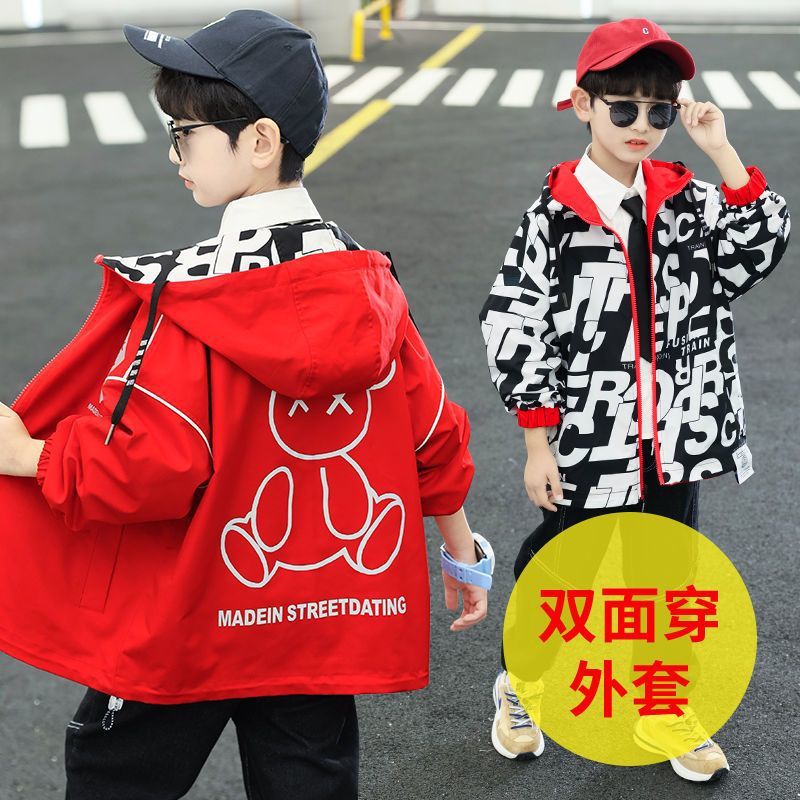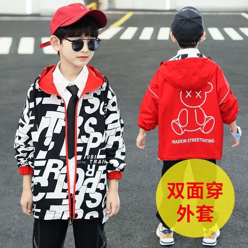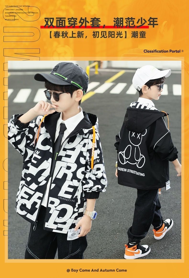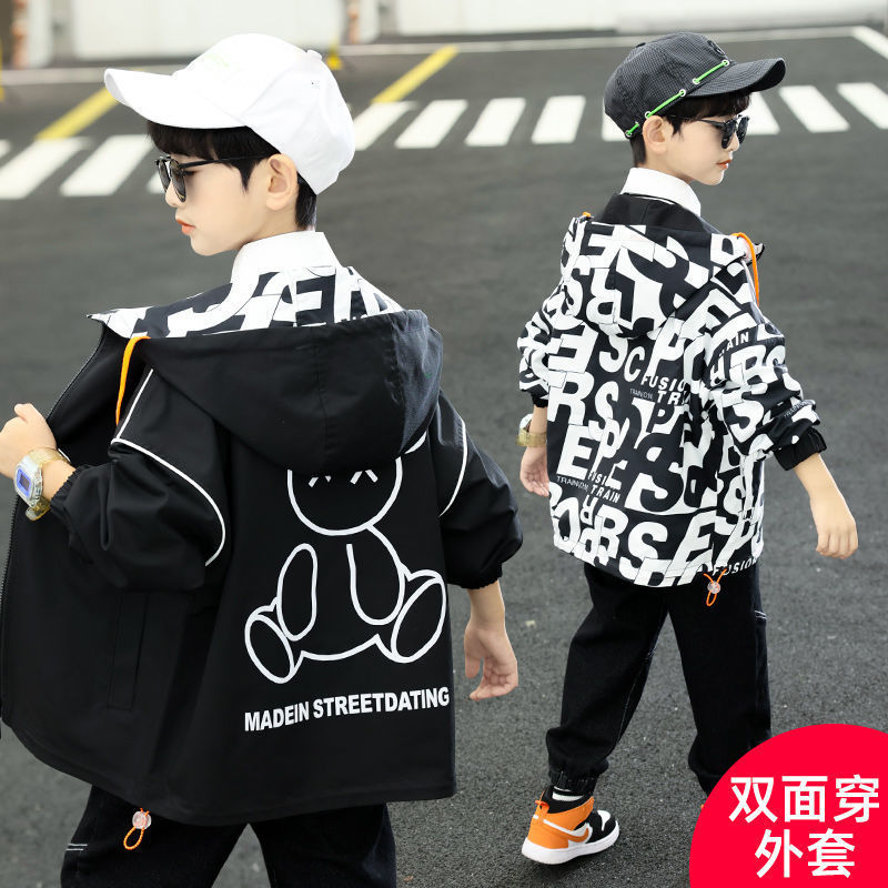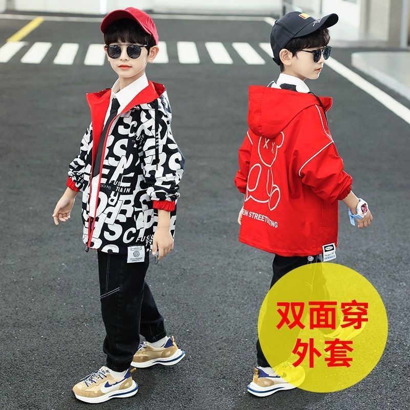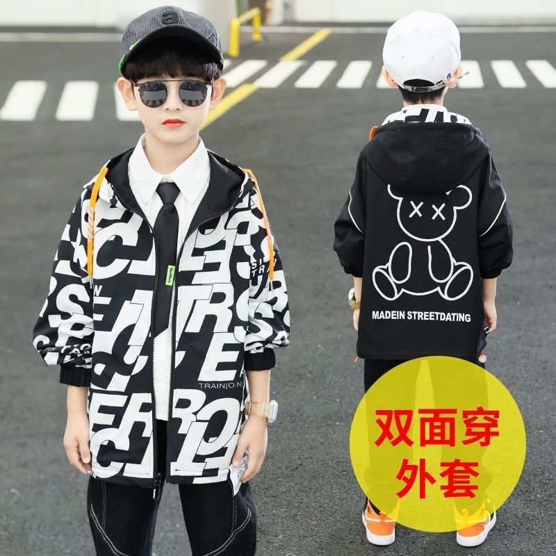 어린이 착용 소년 코트 2024 년 봄과 가을 뉴 보이즈 가을 양면 재킷 빅 보이 탑 웨스턴 스타일스토어 가기