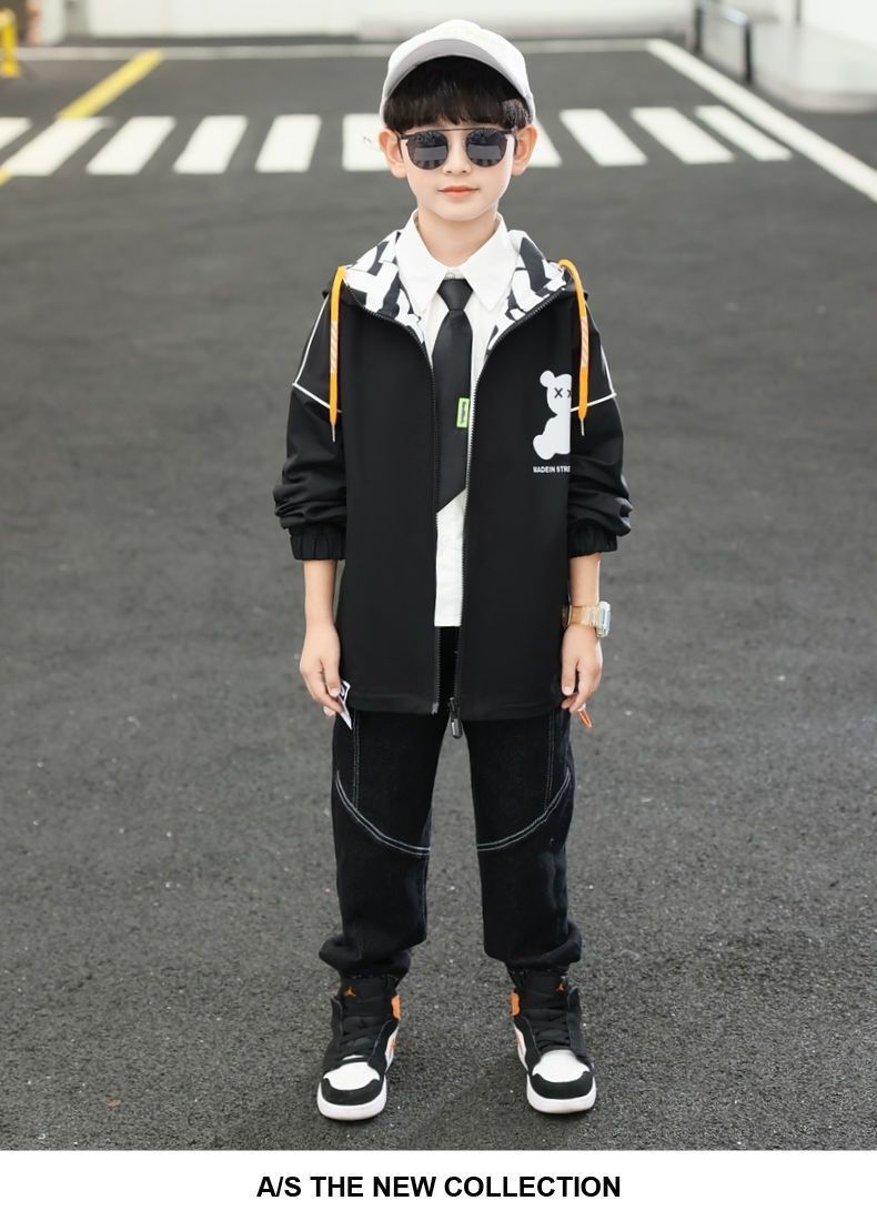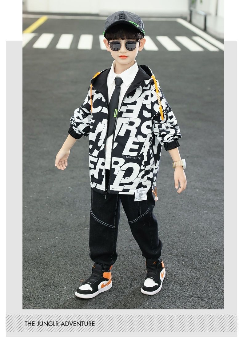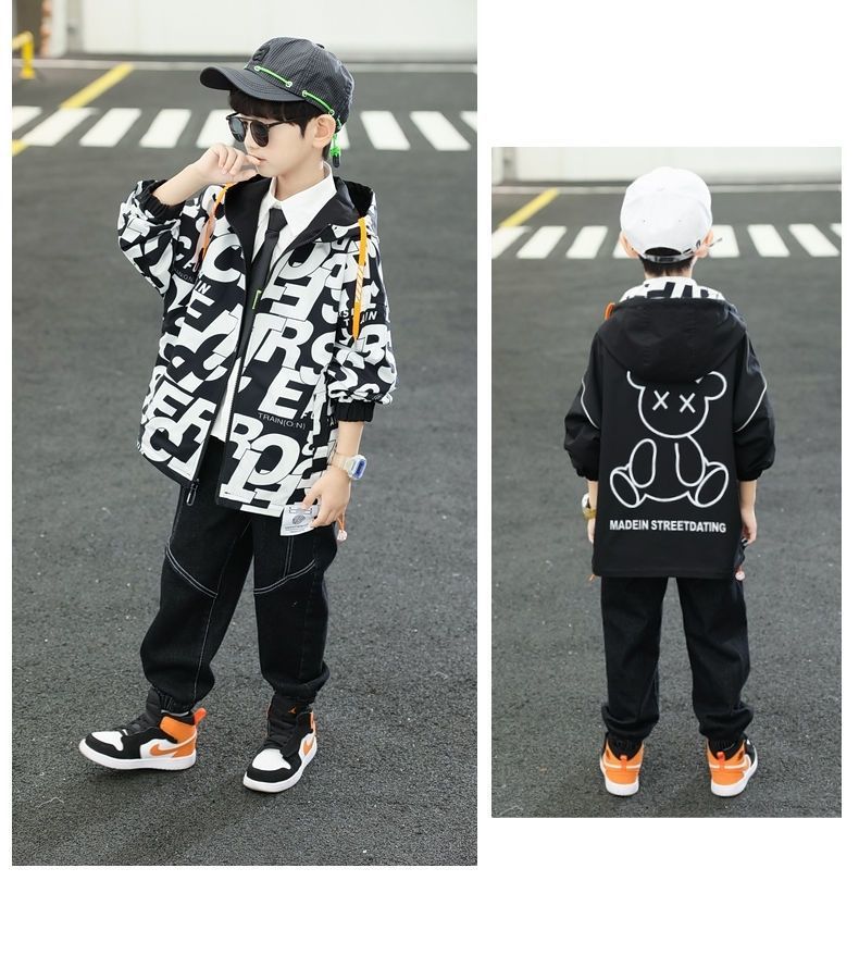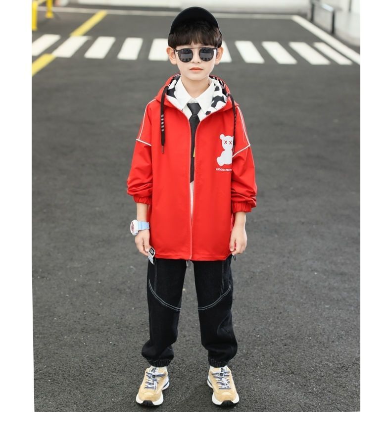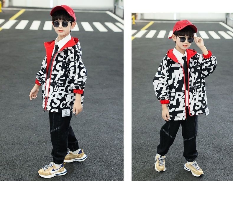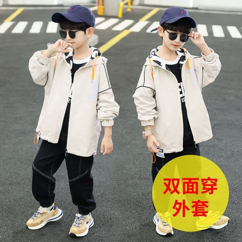 어린이 착용 소년 코트 2024 년 봄과 가을 뉴 보이즈 가을 양면 재킷 빅 보이 탑 웨스턴 스타일스토어 가기