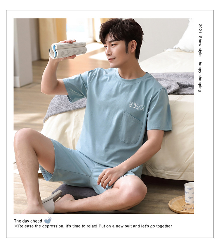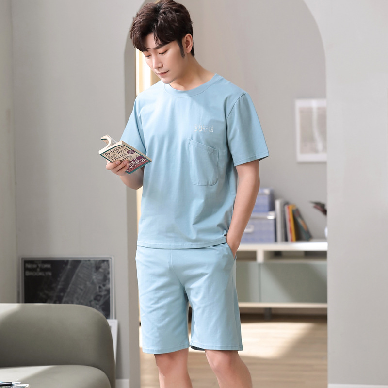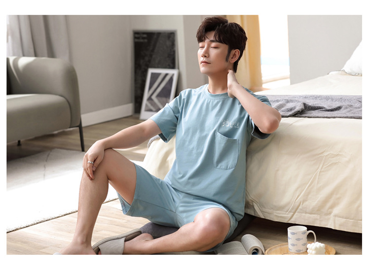 시원한 잠옷 남자 여름 모달 반팔 반바지 플러스 사이즈 통통한 홈 의류 남성 여름 얇은 세트스토어 가기